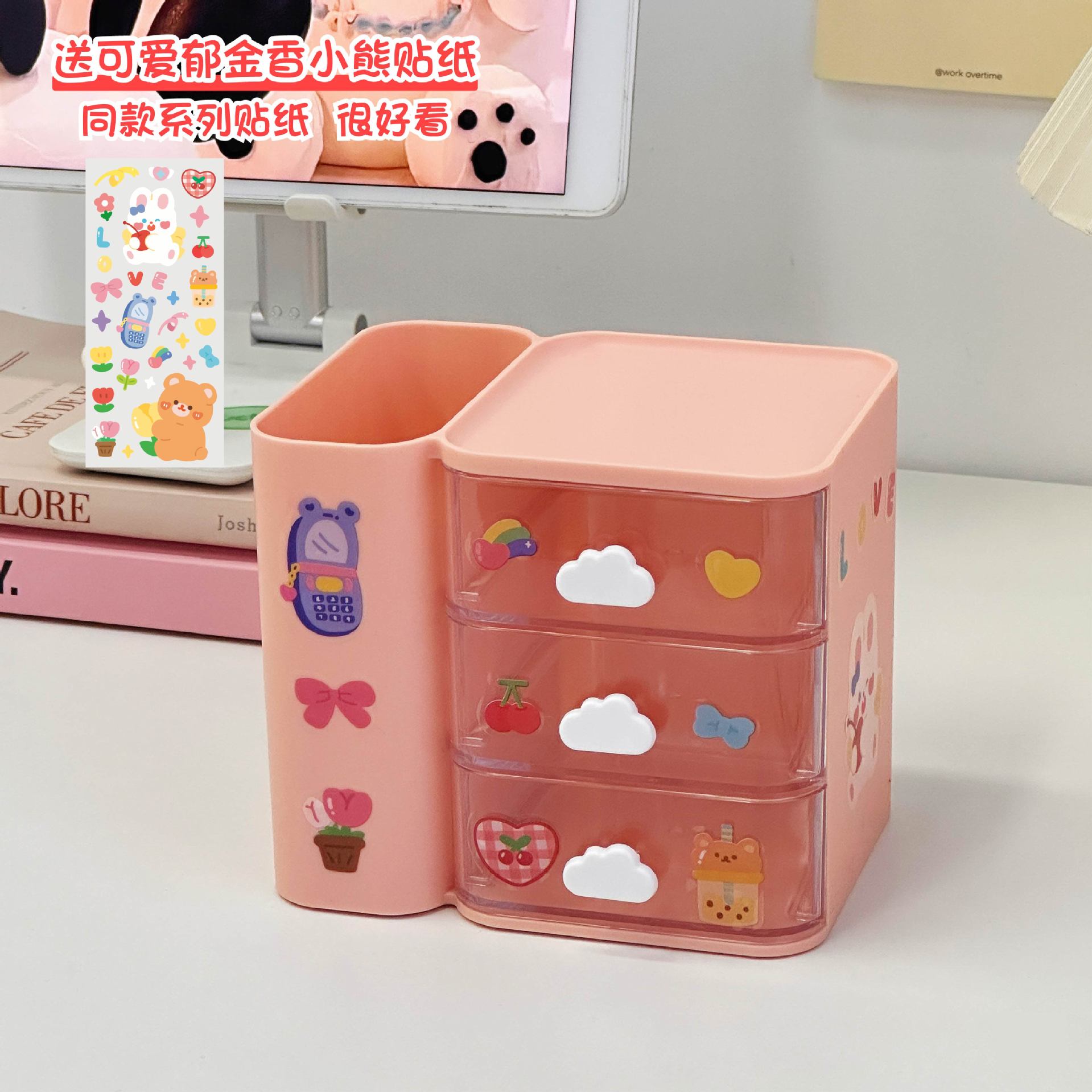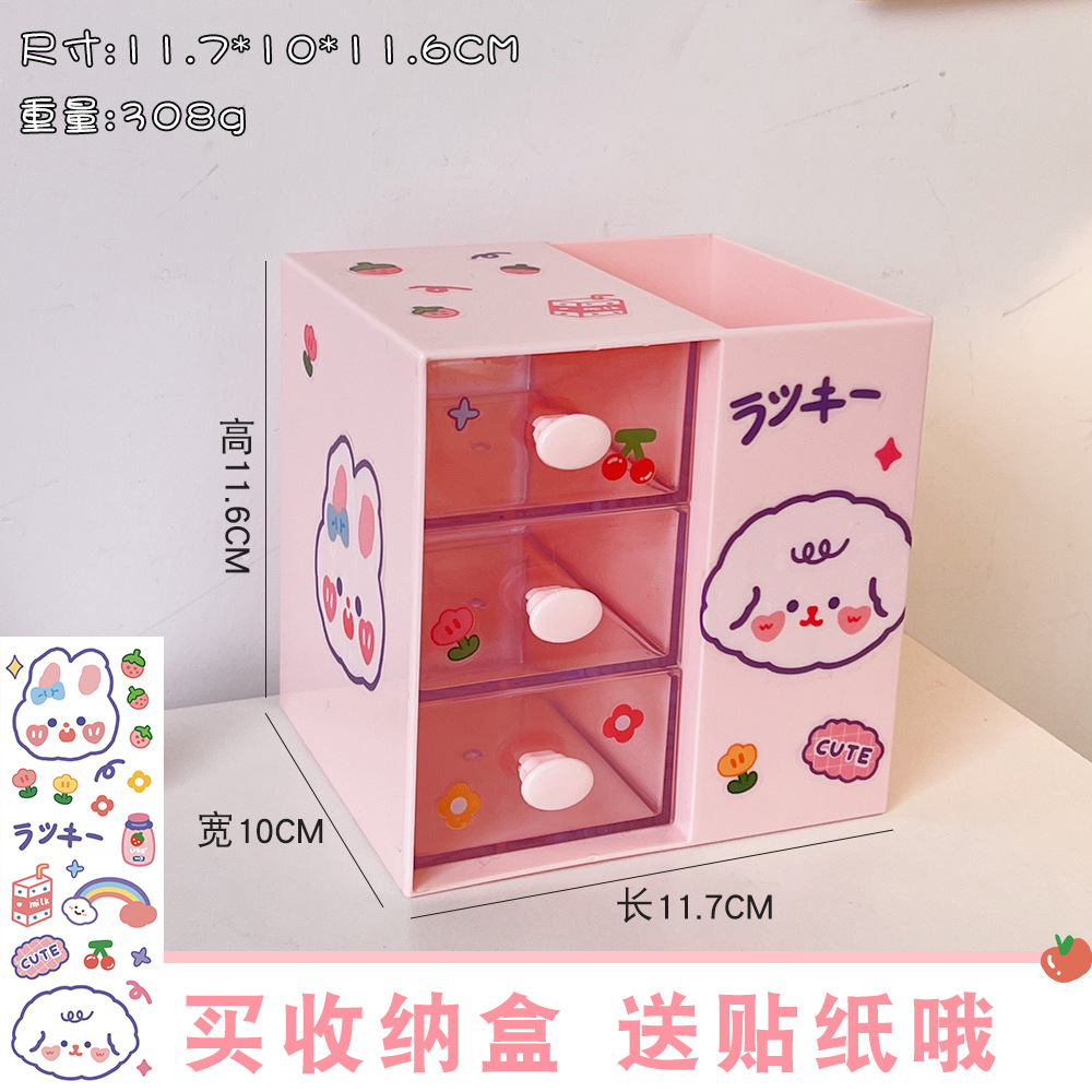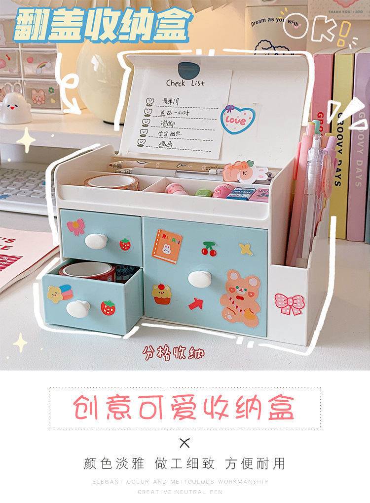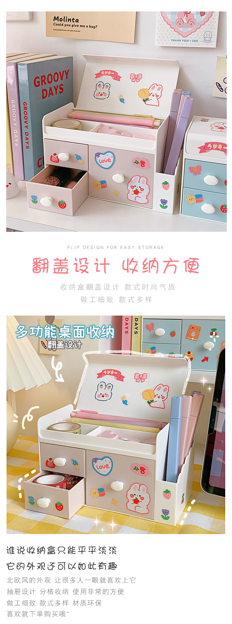 创意可爱桌面收纳盒塑料抽屉式办公室家用化妆盒学生整理储物盒子