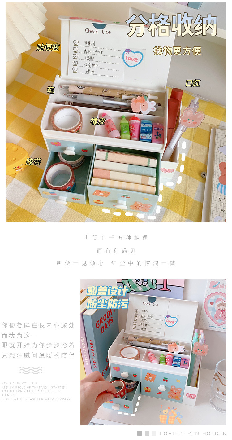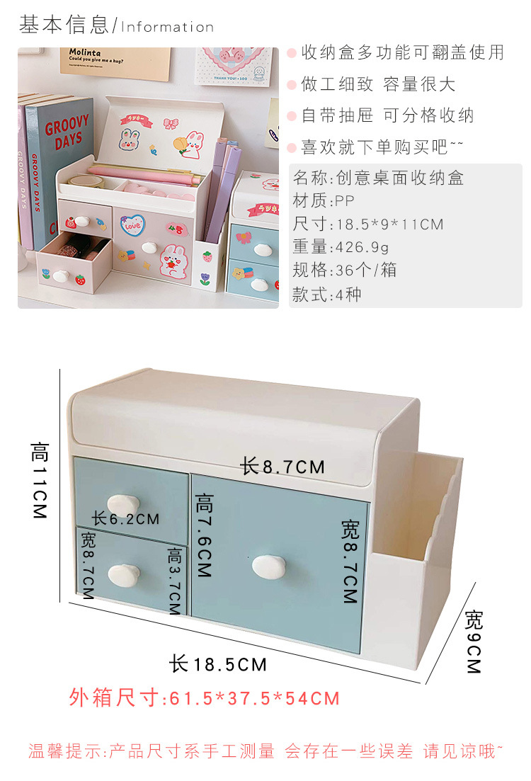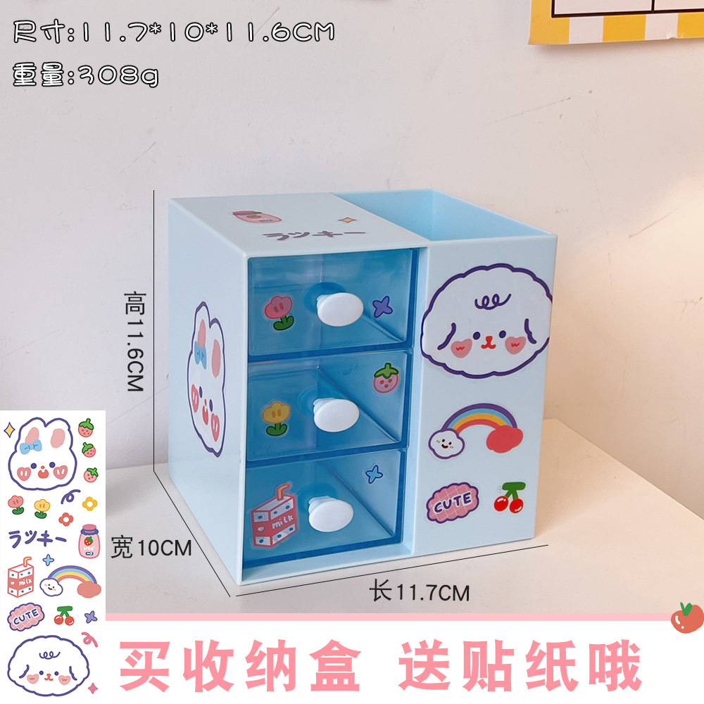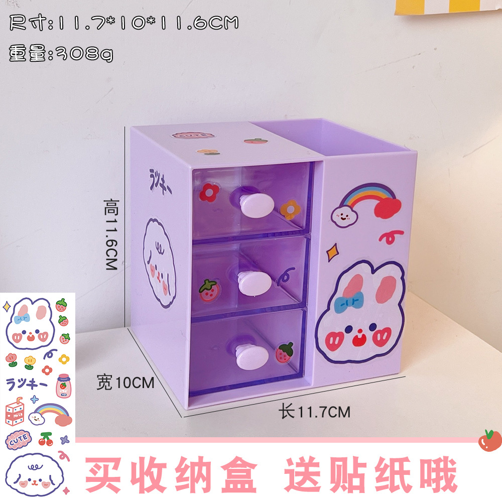 创意可爱桌面收纳盒塑料抽屉式办公室家用化妆盒学生整理储物盒子