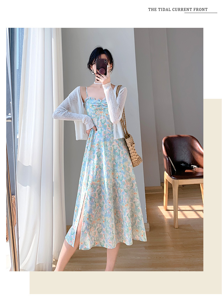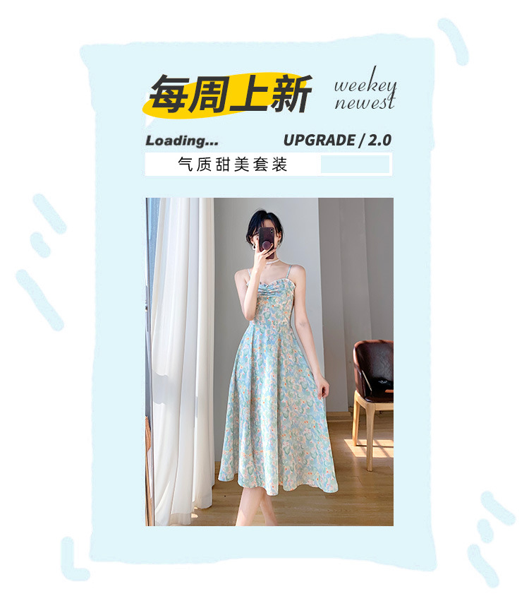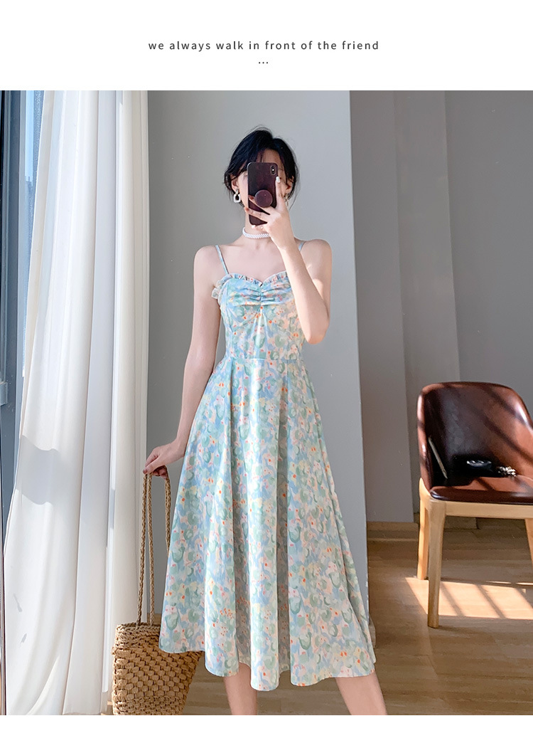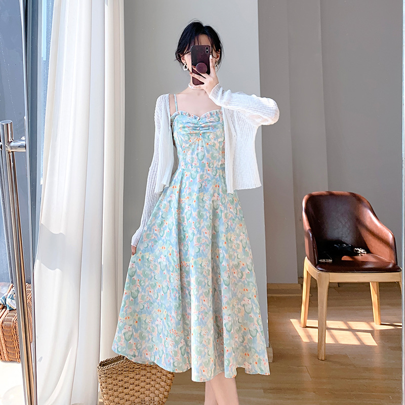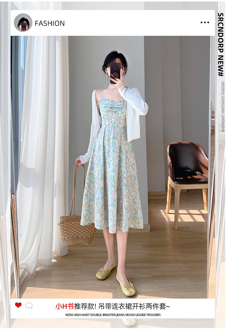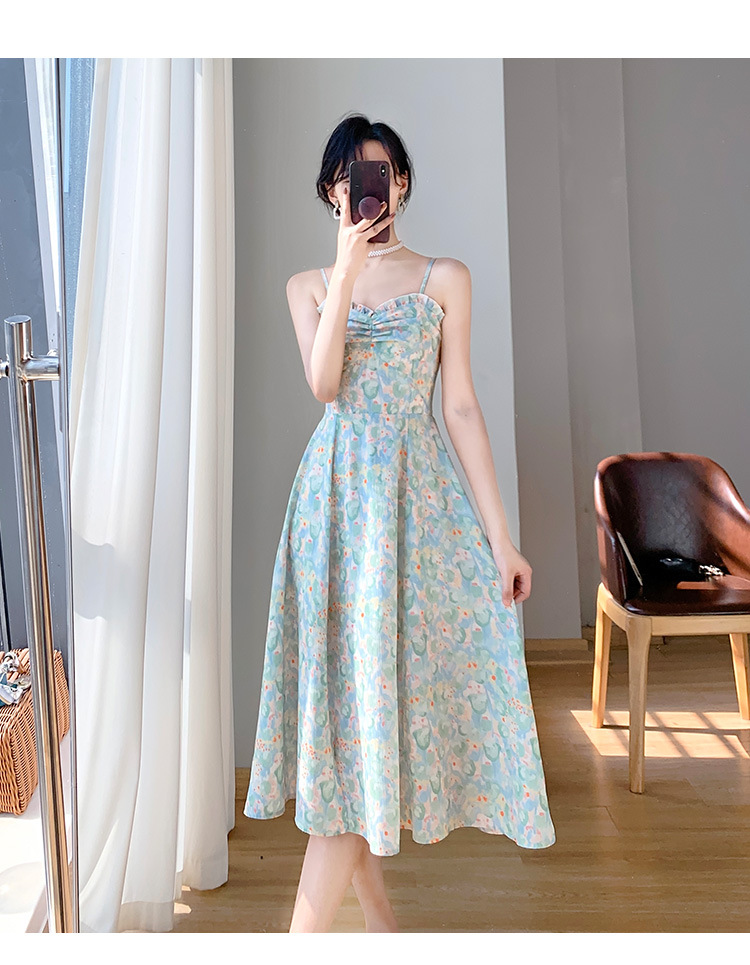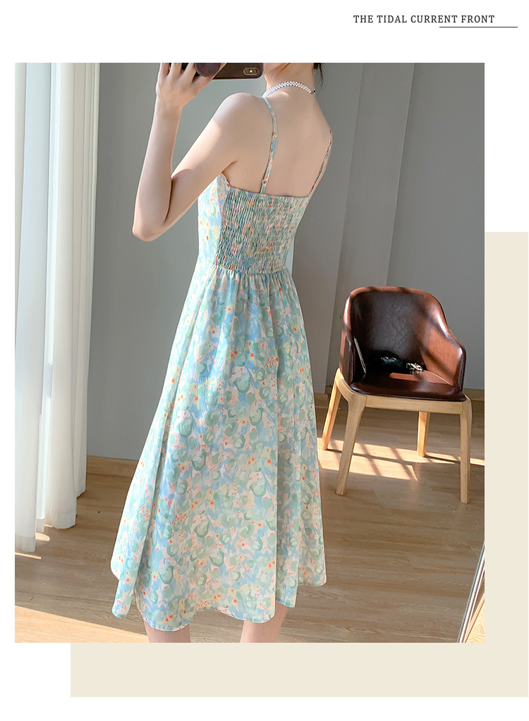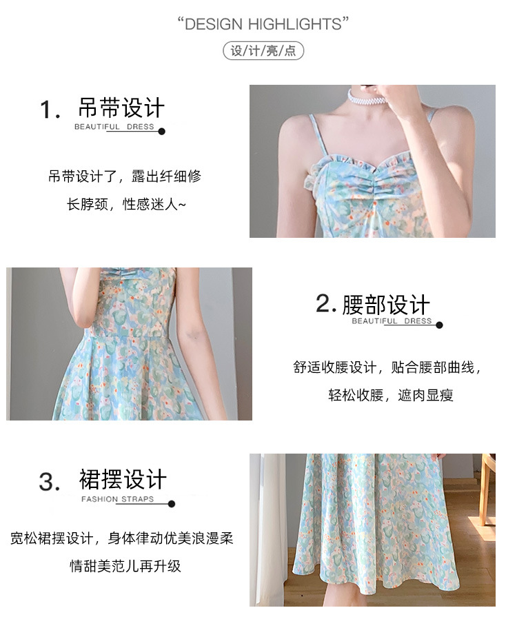 2023夏装新款法式复古温柔风收腰显瘦碎花吊带连衣裙女