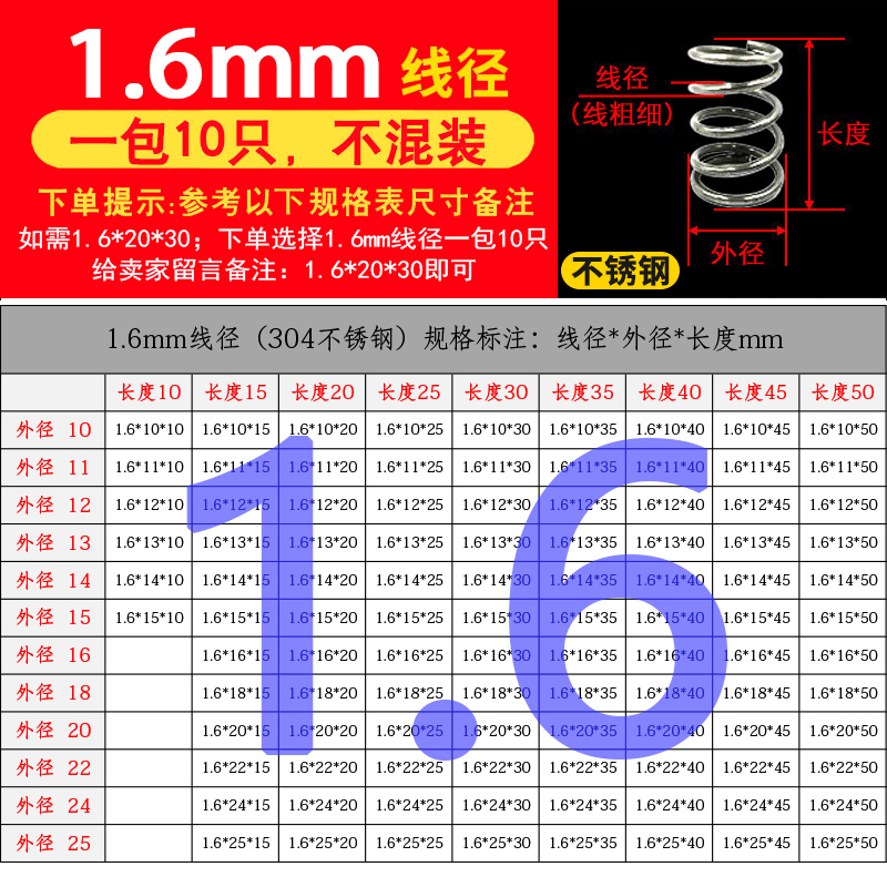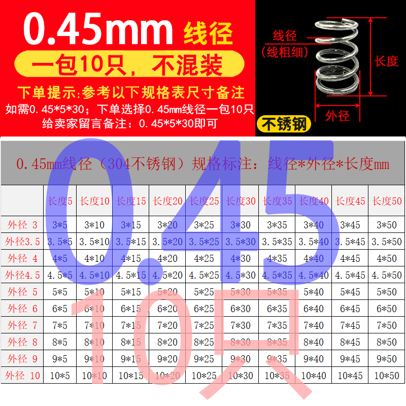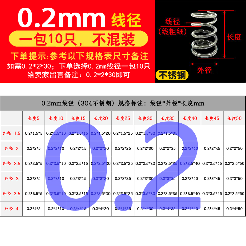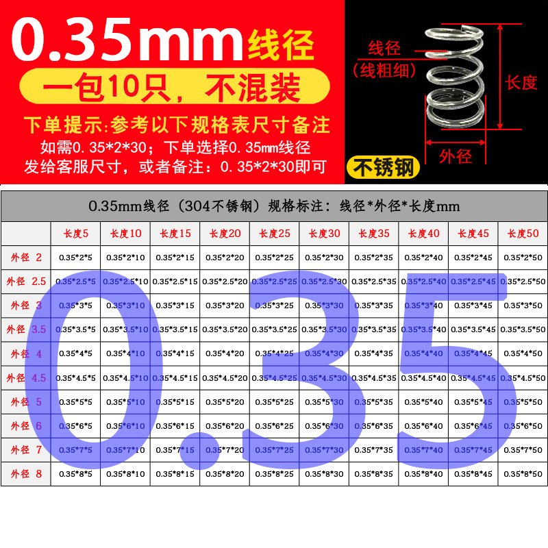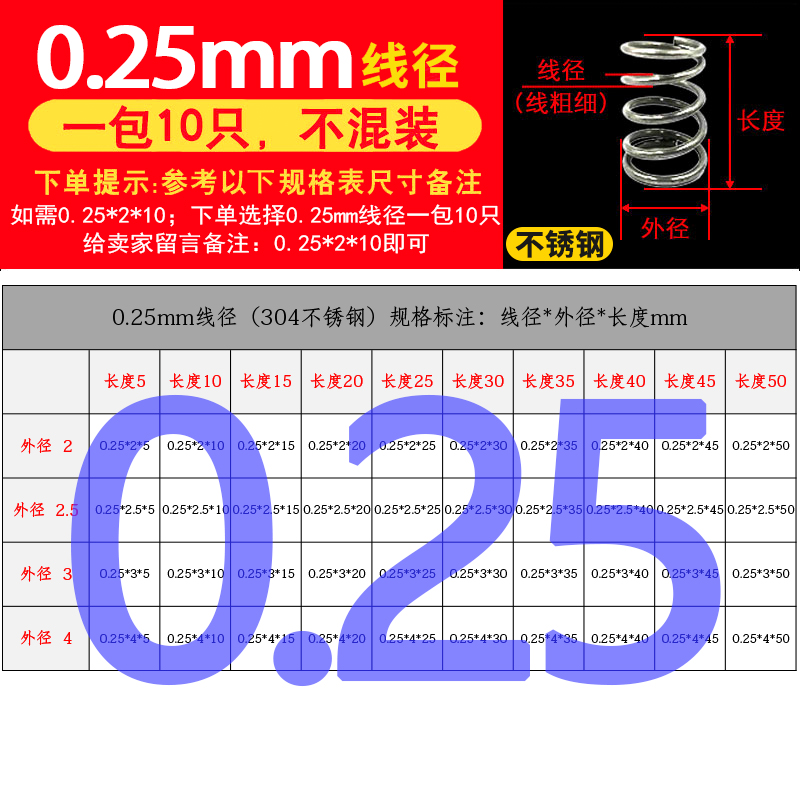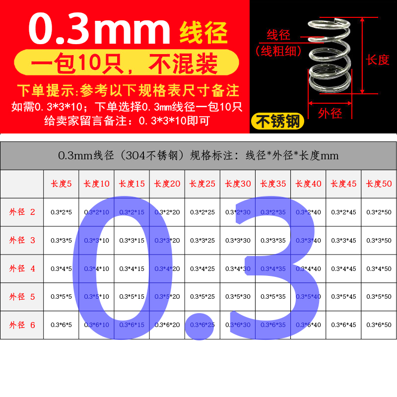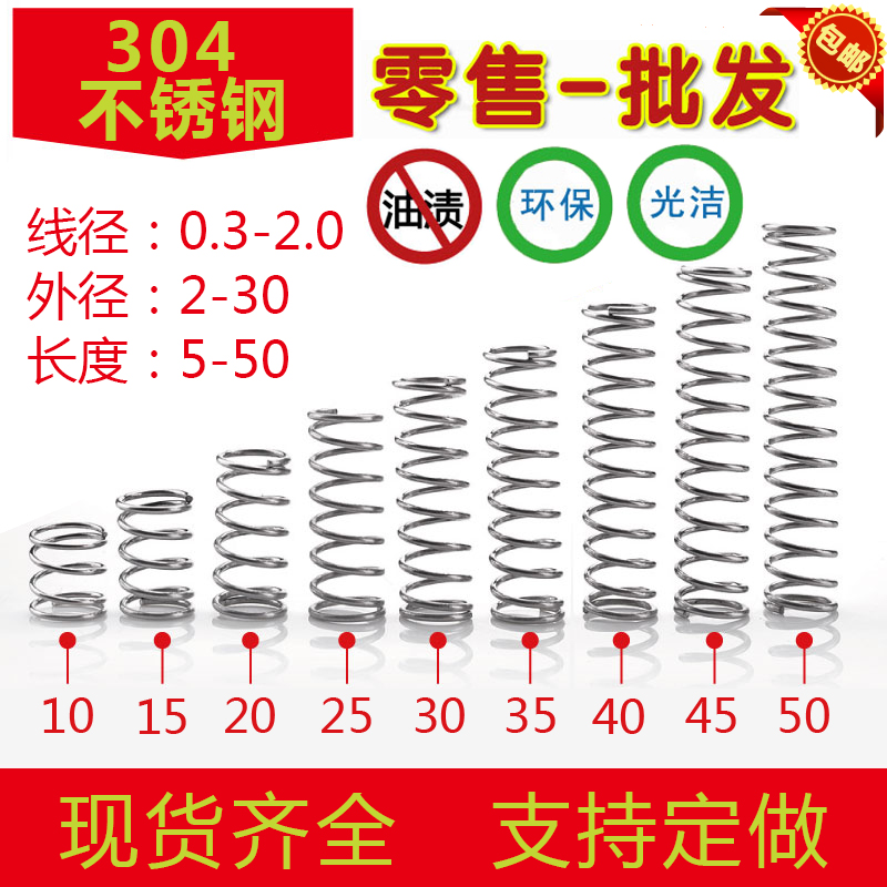 批发304不锈钢弹簧压簧短小大压缩阀门线径0.2-2.0mm外径1.5-30定