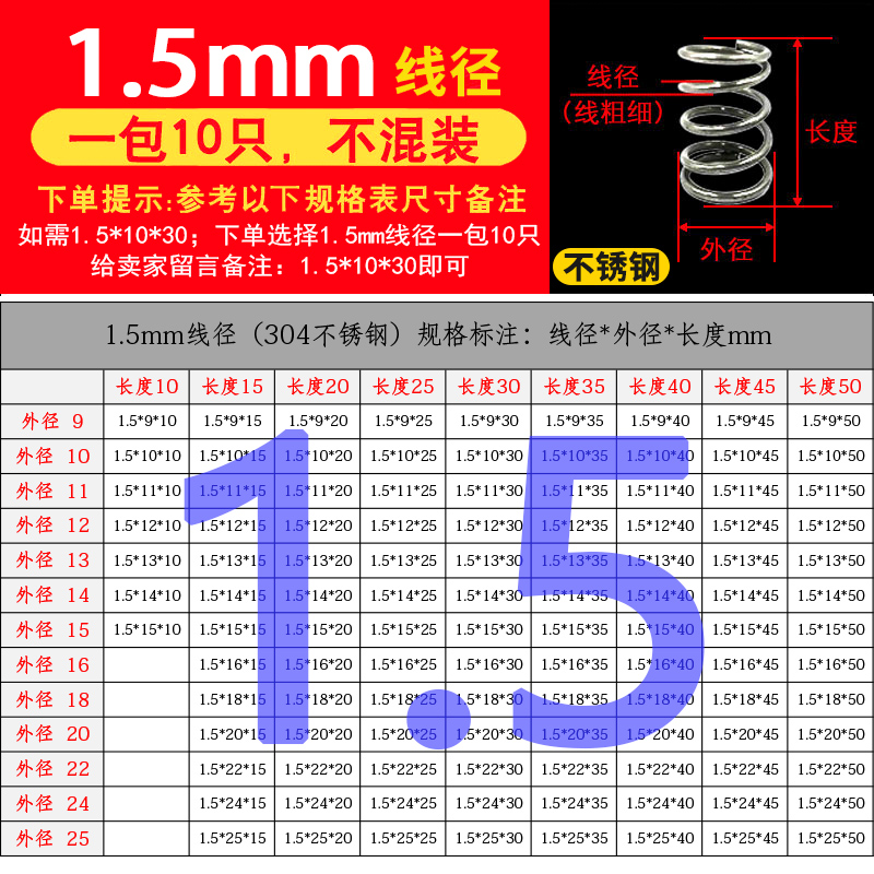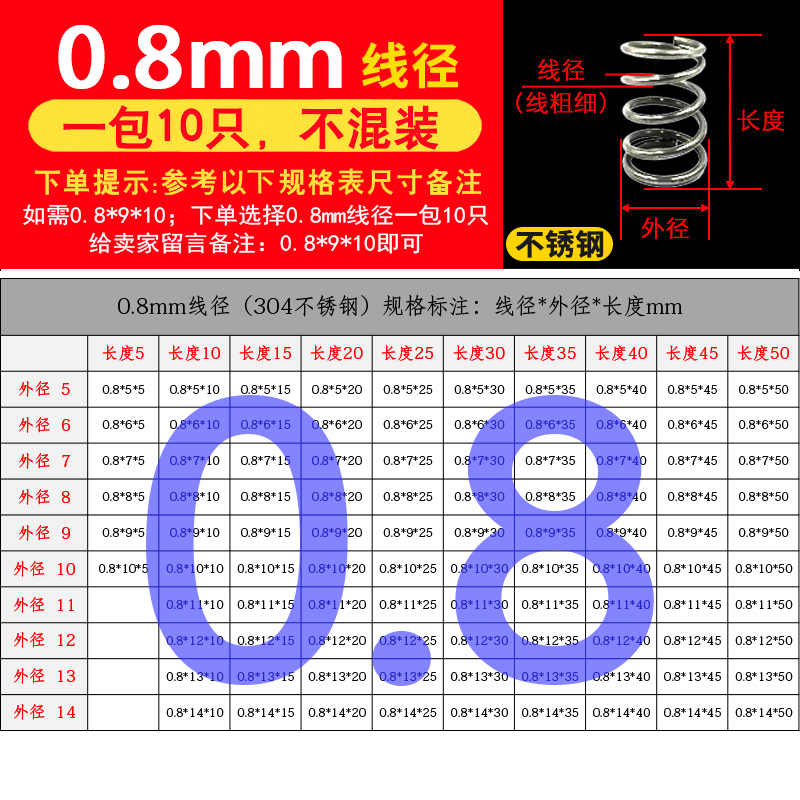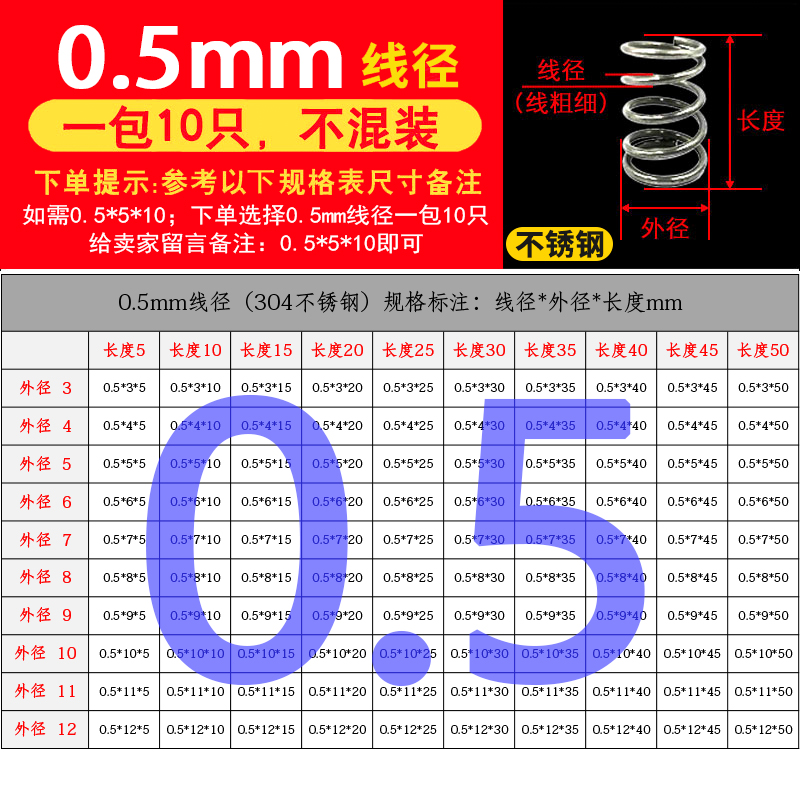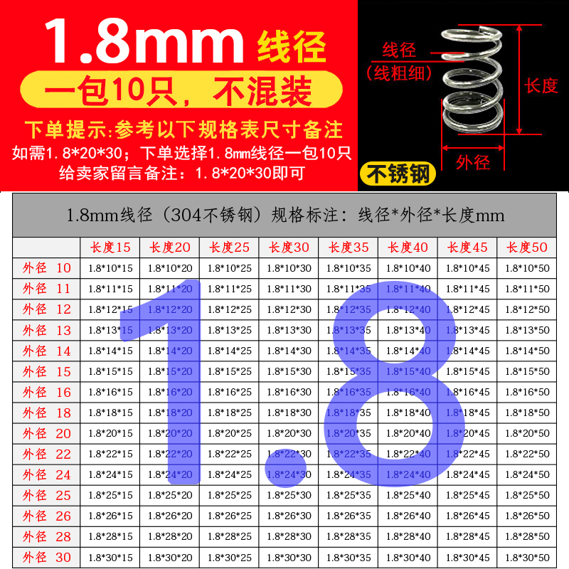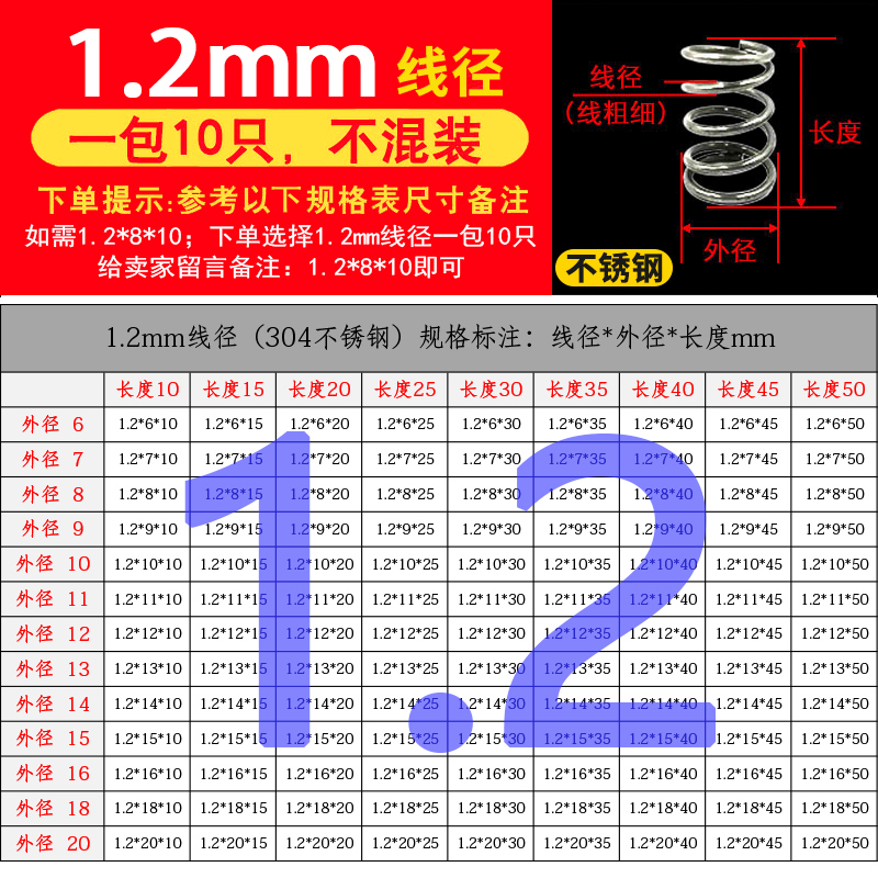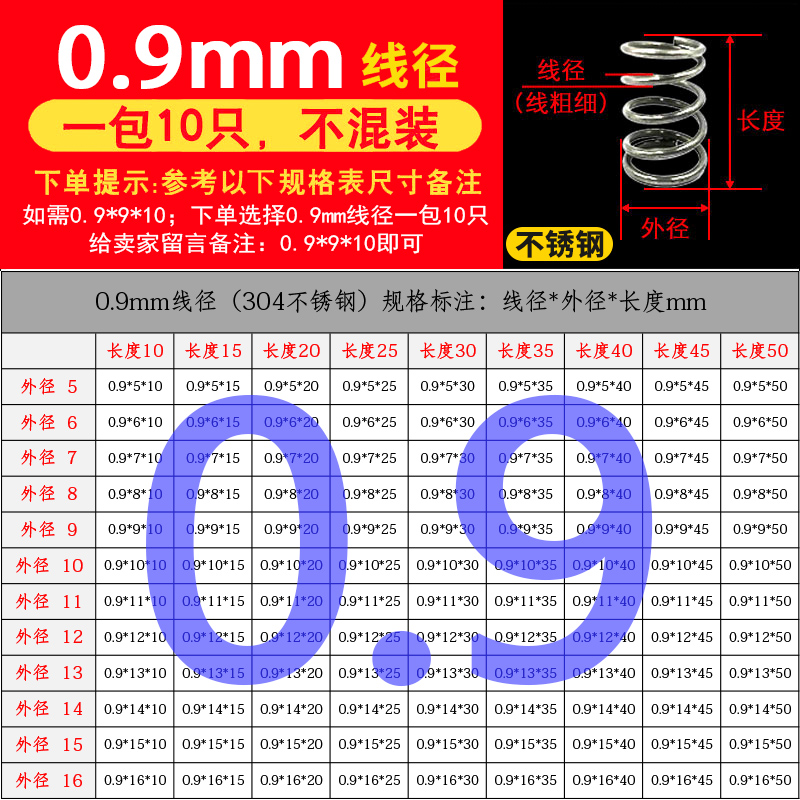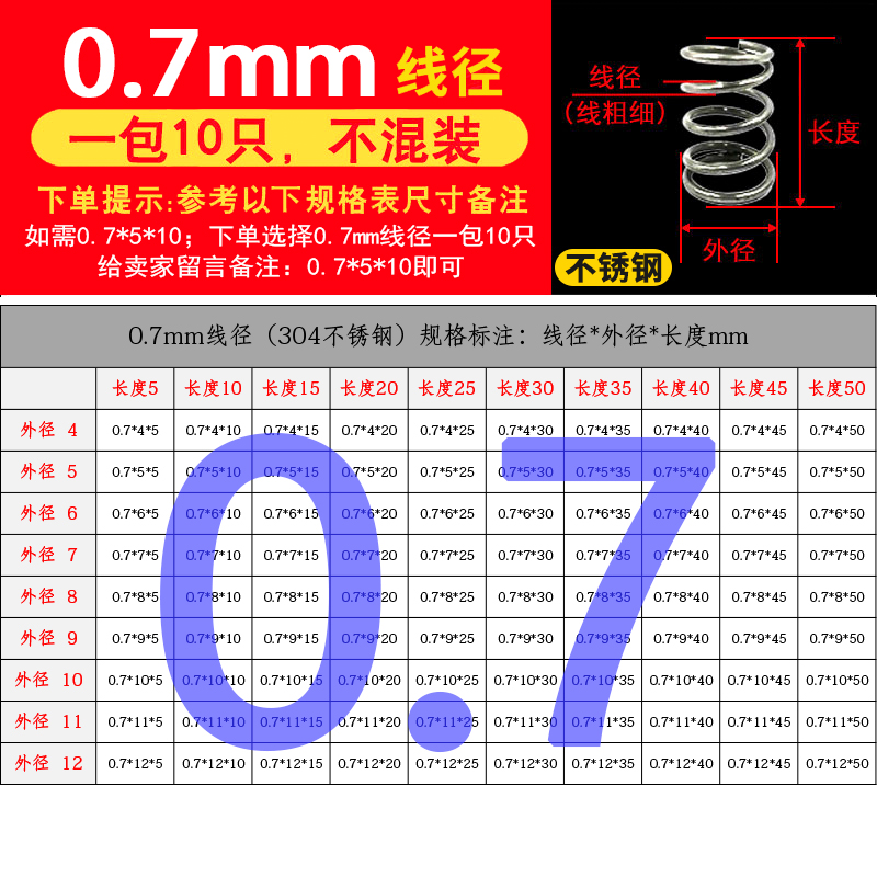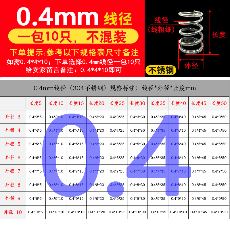 批发304不锈钢弹簧压簧短小大压缩阀门线径0.2-2.0mm外径1.5-30定