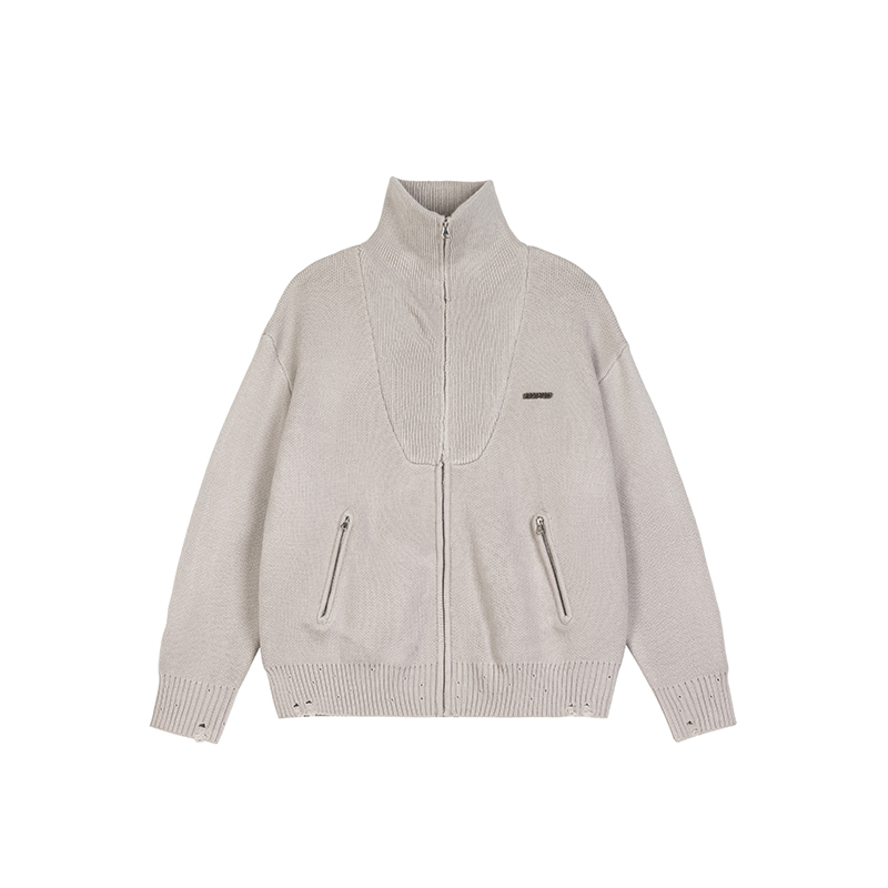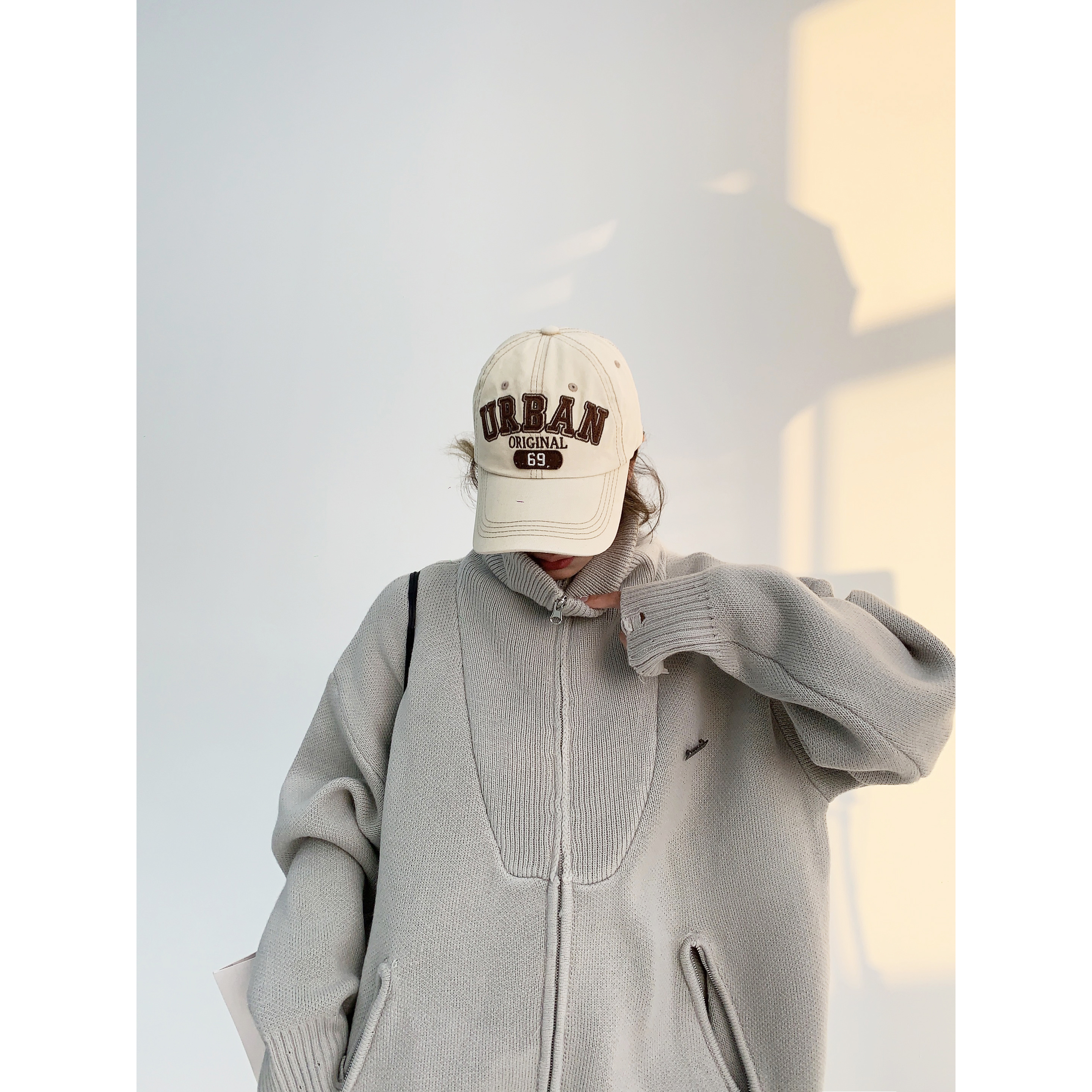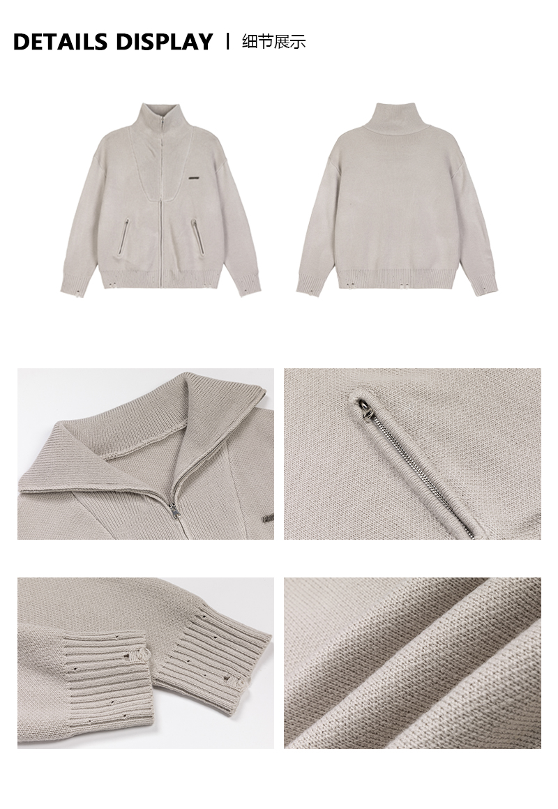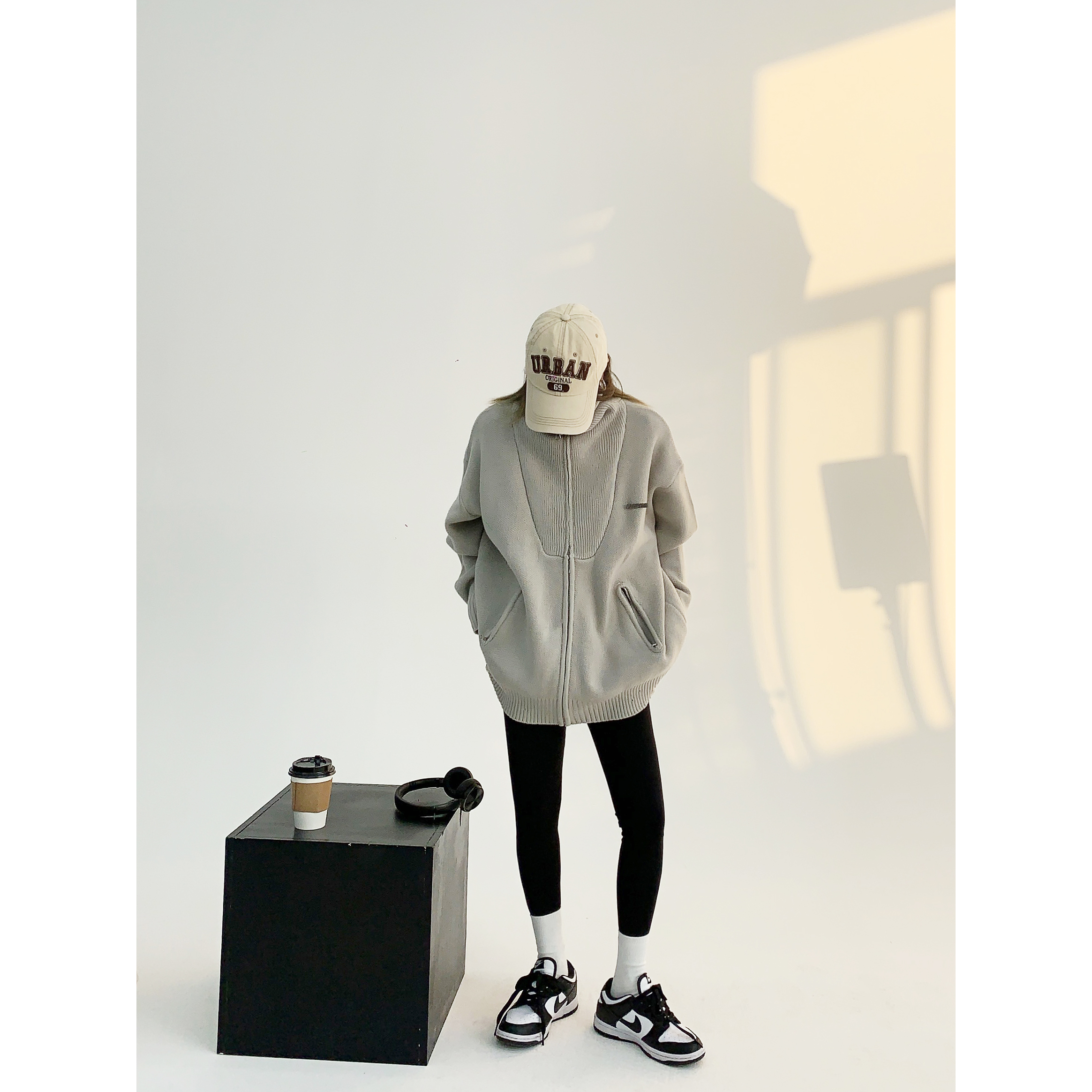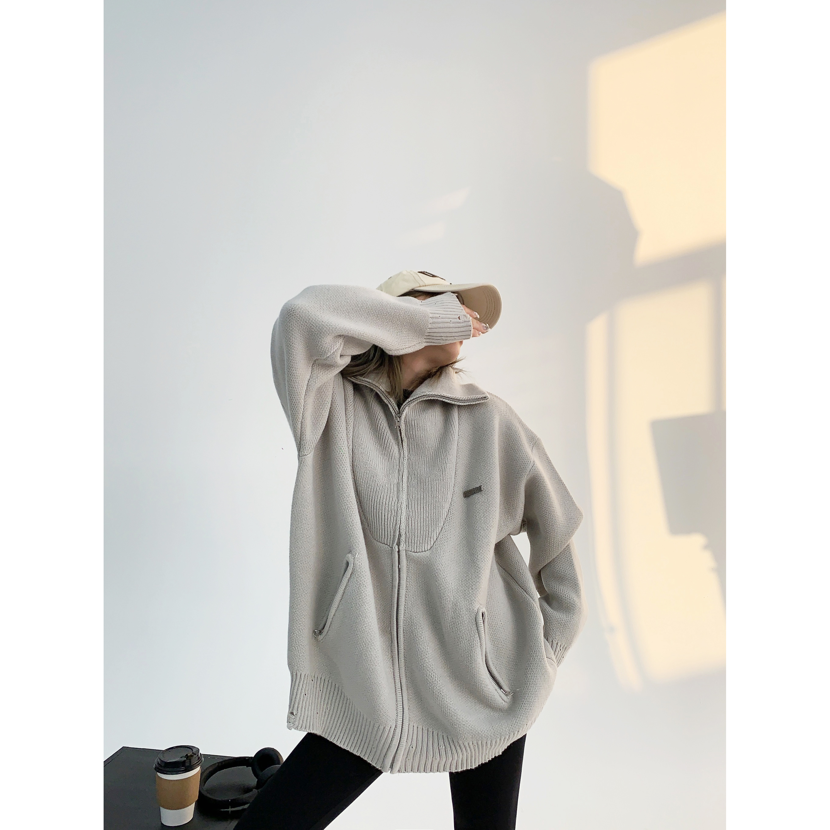 廢柴冬季美式高級感加厚高領毛衣外套寬鬆設計感重磅拉鍊開衫女潮