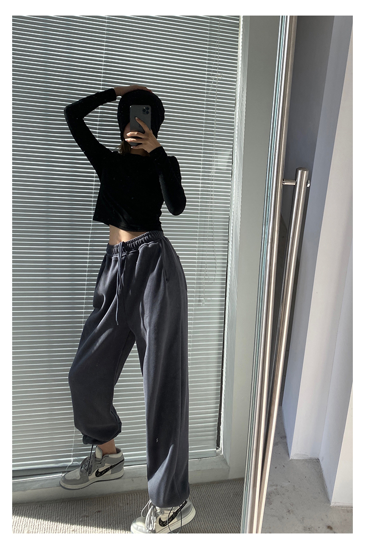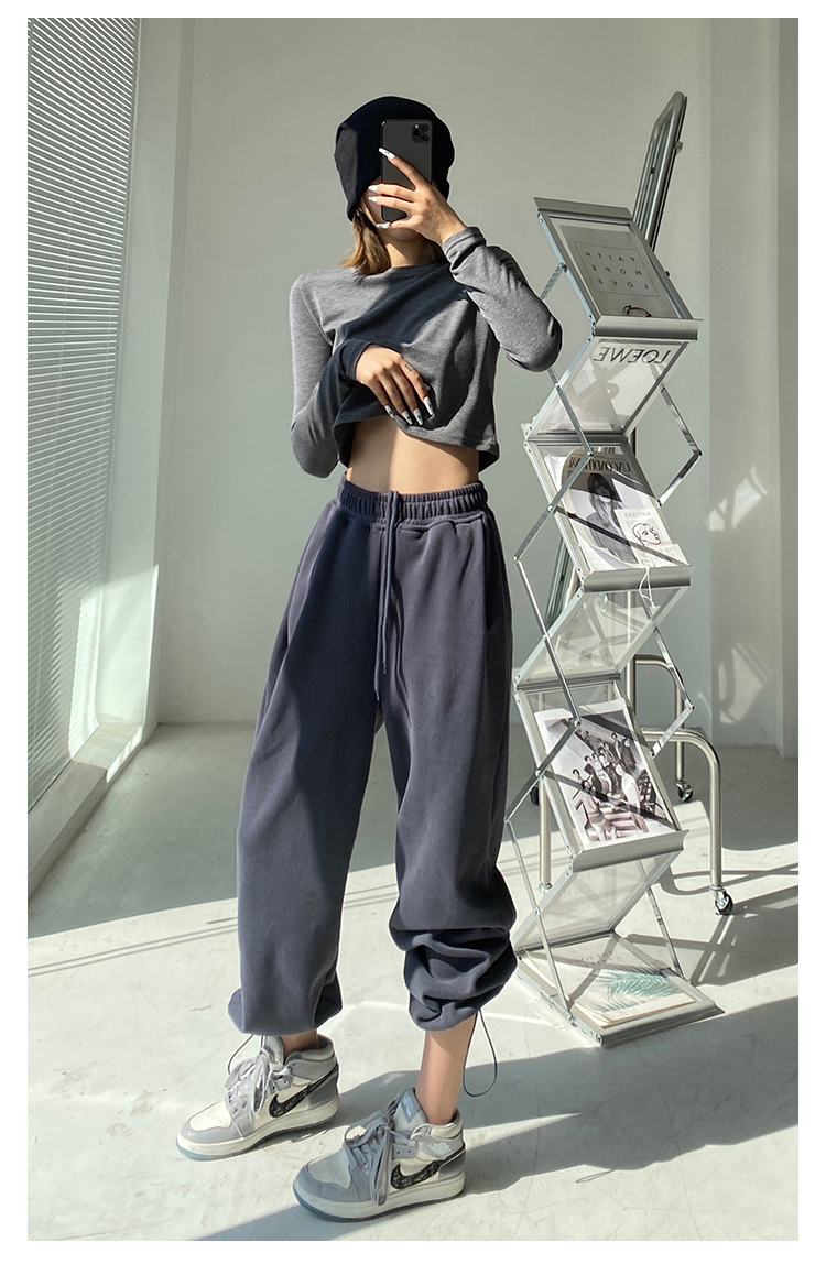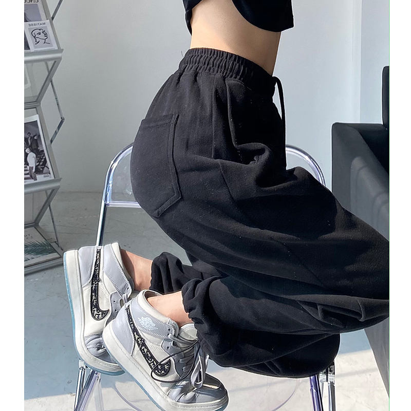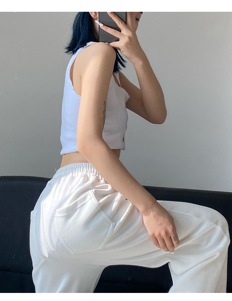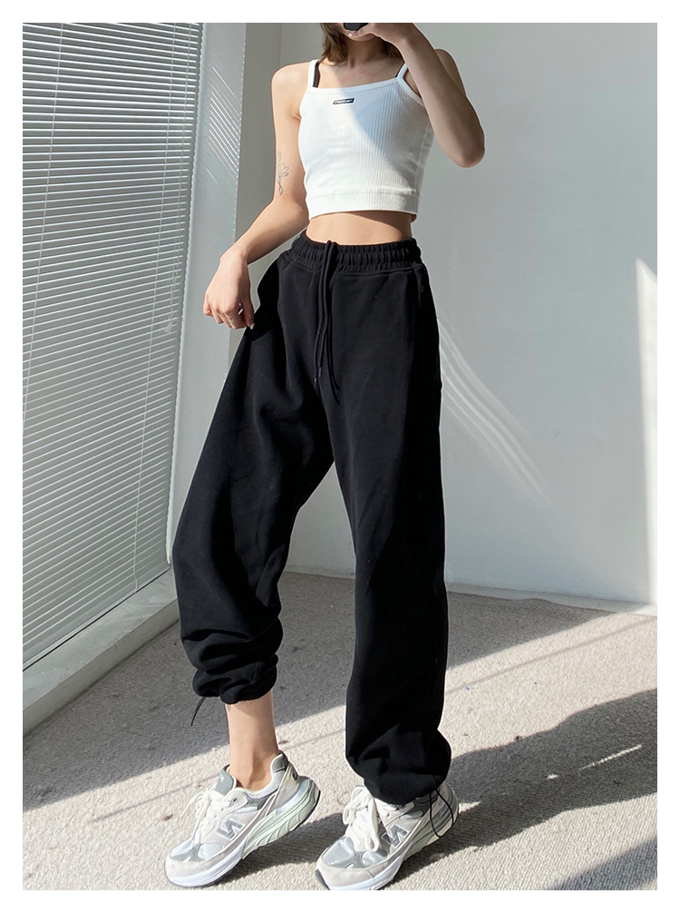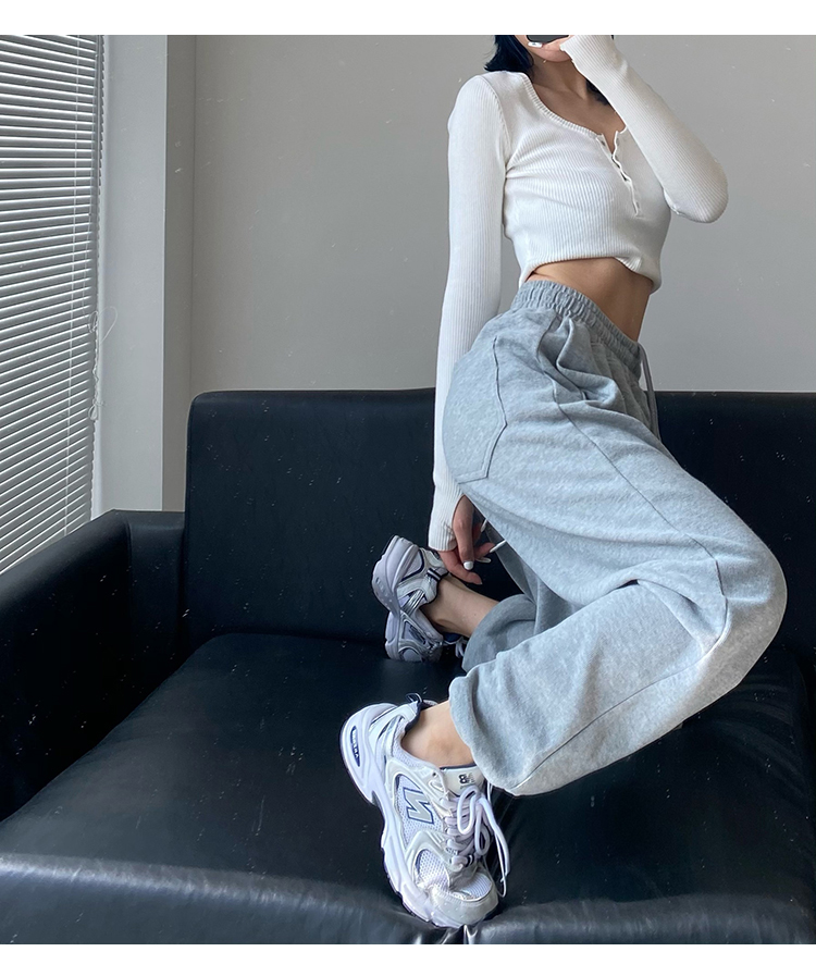 春秋季束腳運動褲女高腰寬鬆顯瘦闊腿直筒休閒美式白色衛褲夏