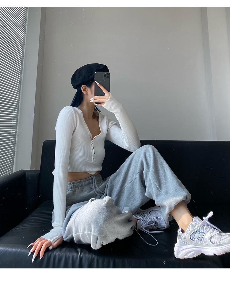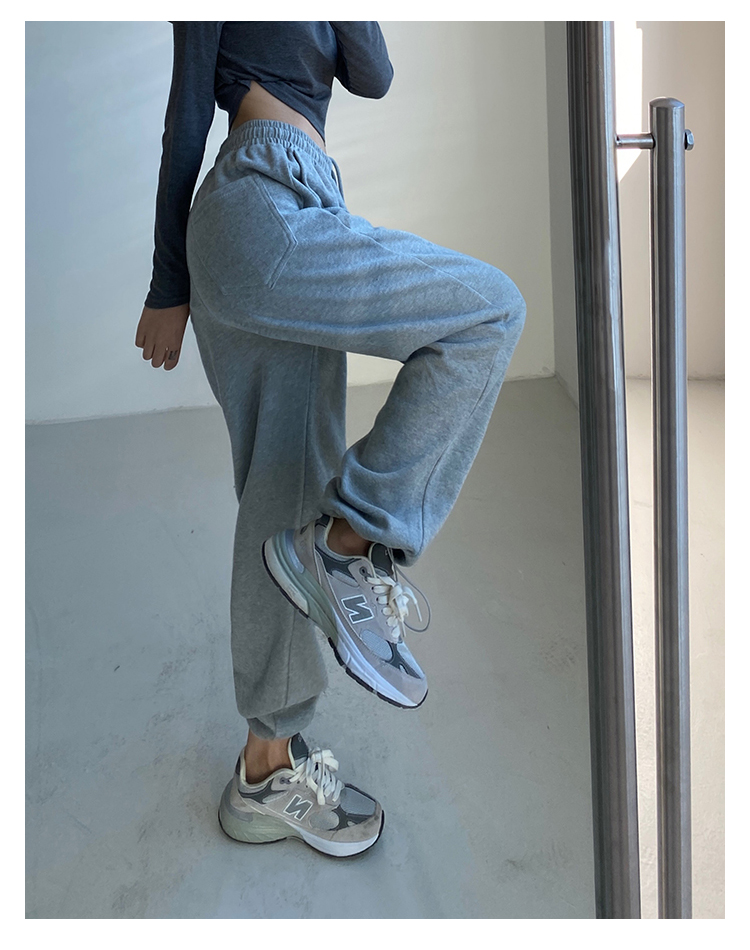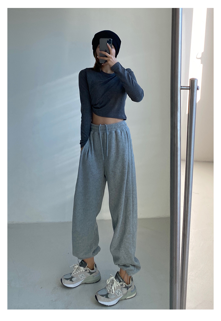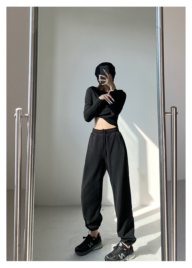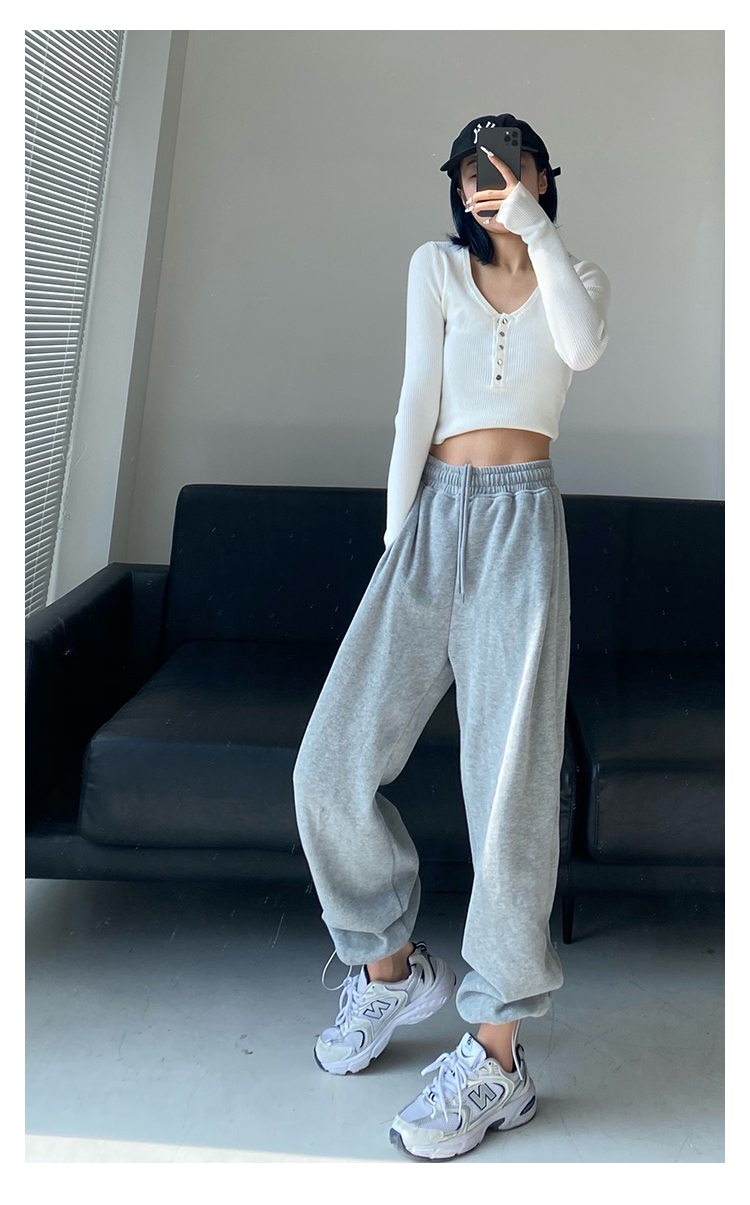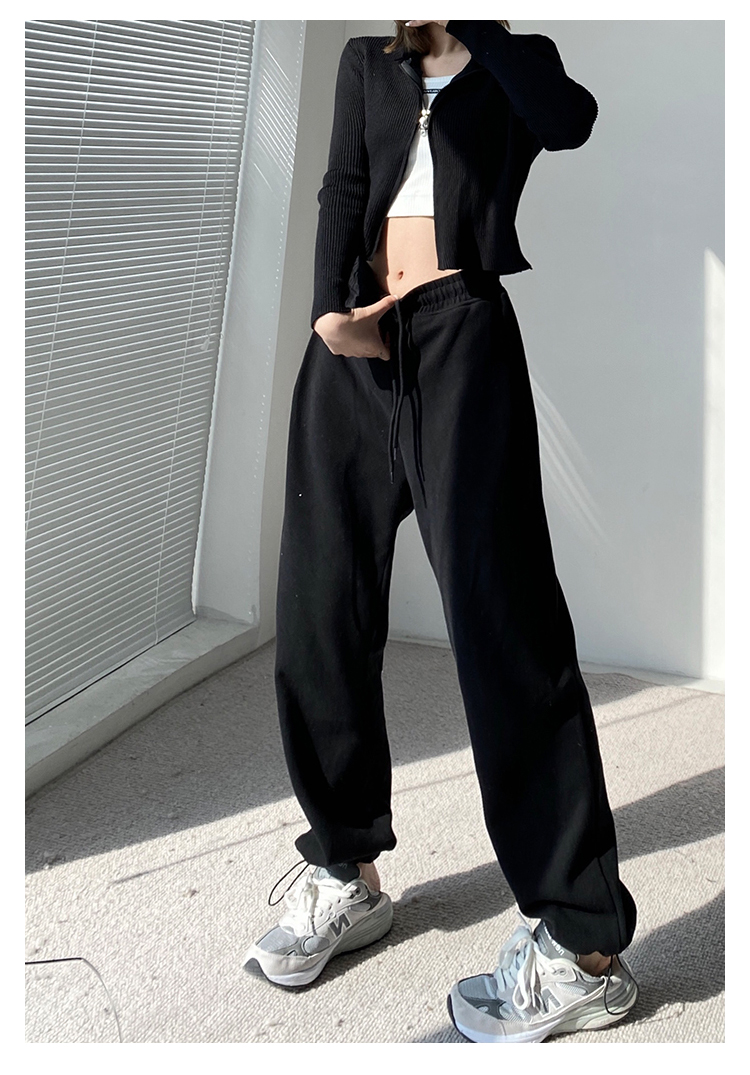 春秋季束腳運動褲女高腰寬鬆顯瘦闊腿直筒休閒美式白色衛褲夏
