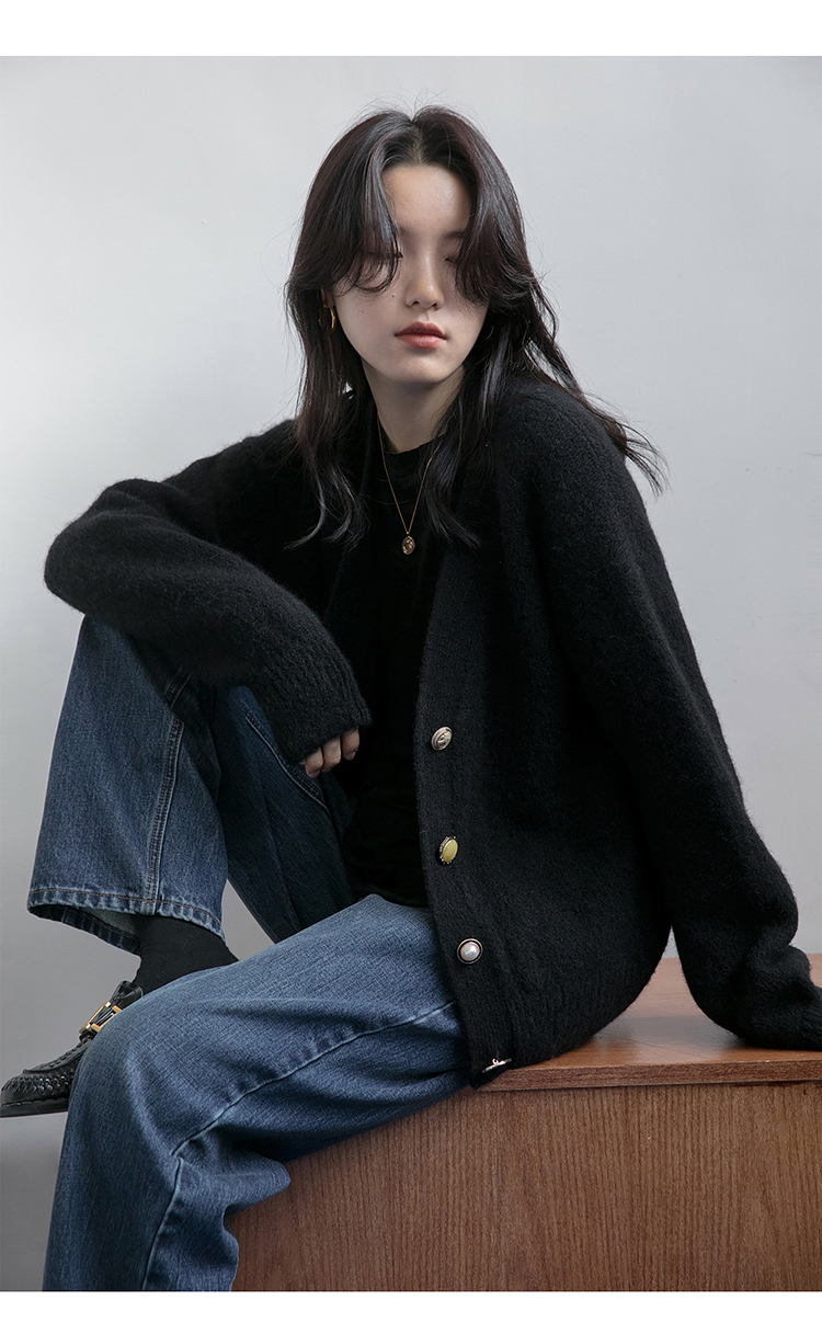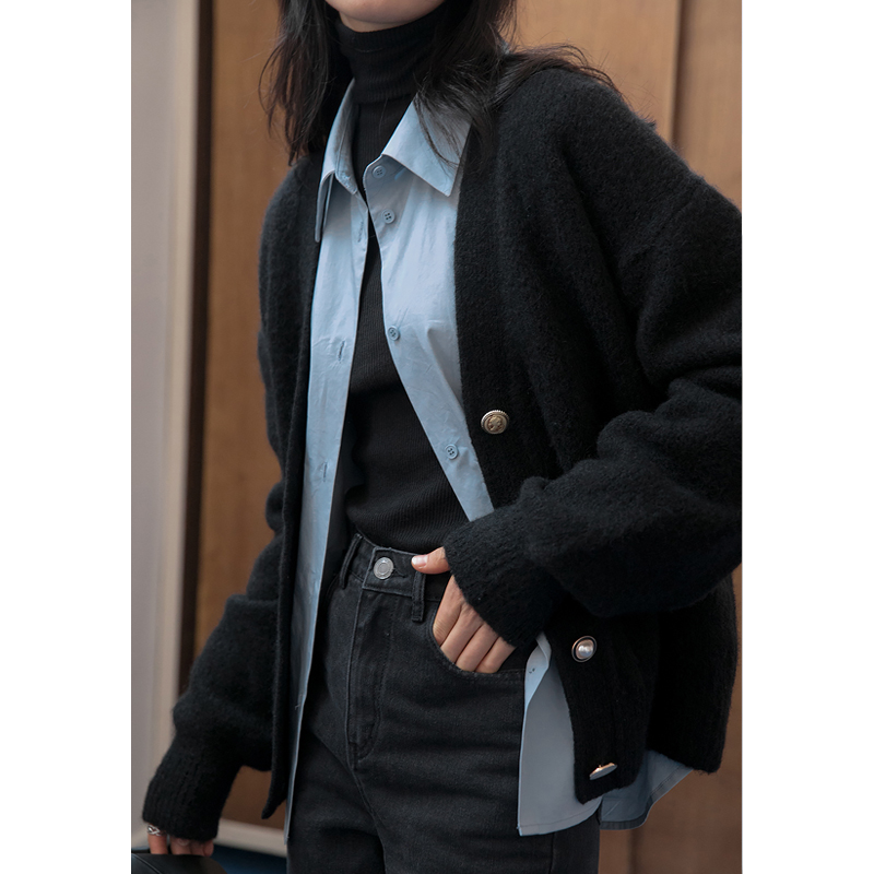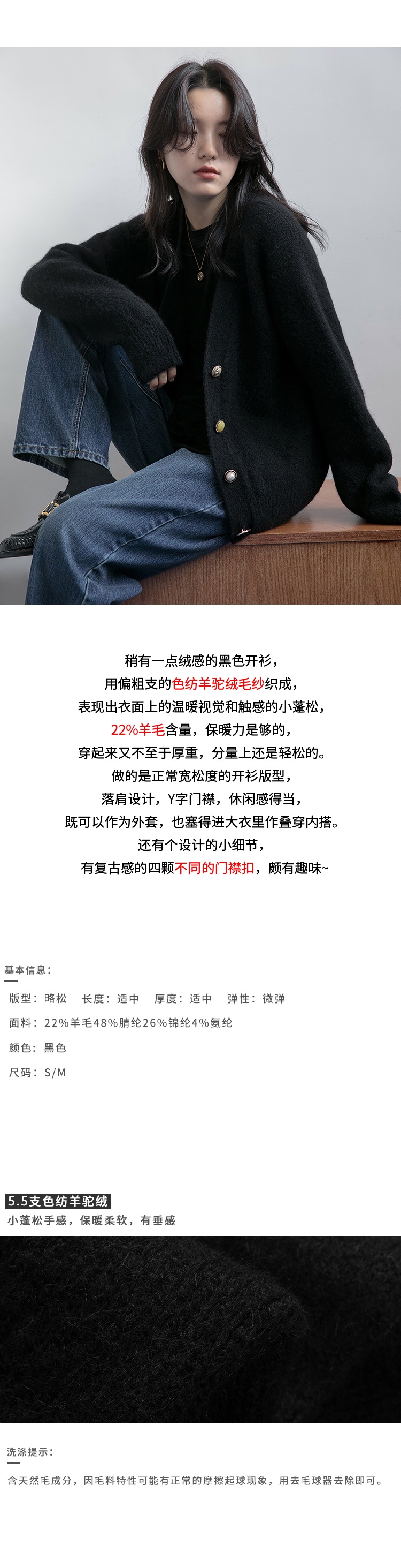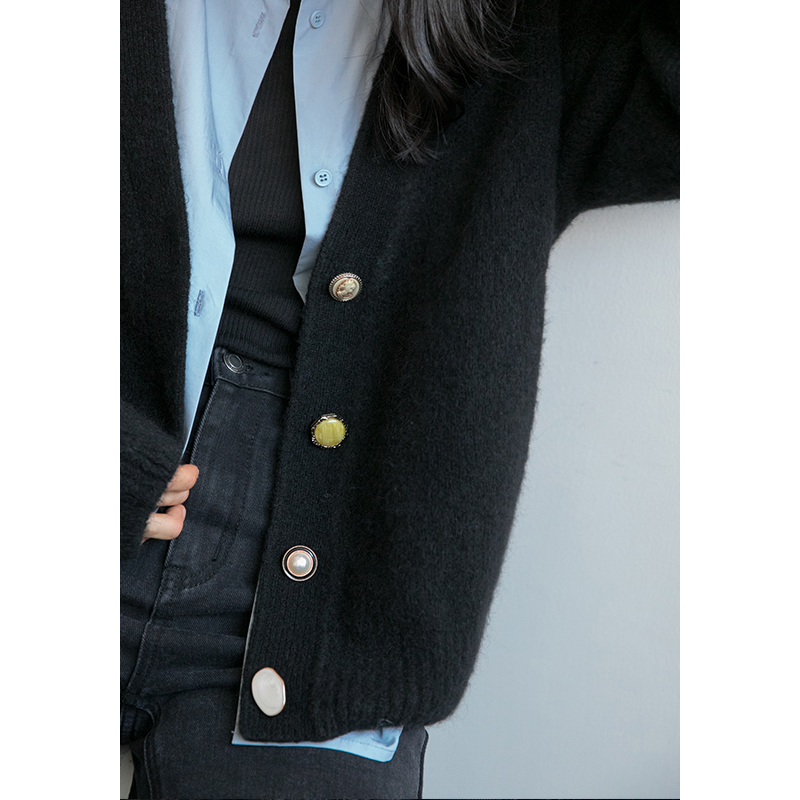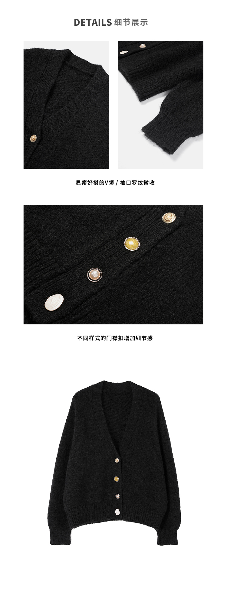 1313不一樣的雕塑感金屬扣黑色羊毛開衫外套2023女春保暖針織毛衣外套