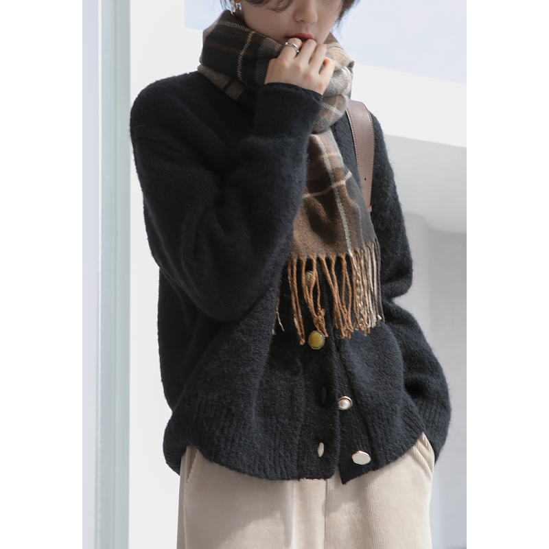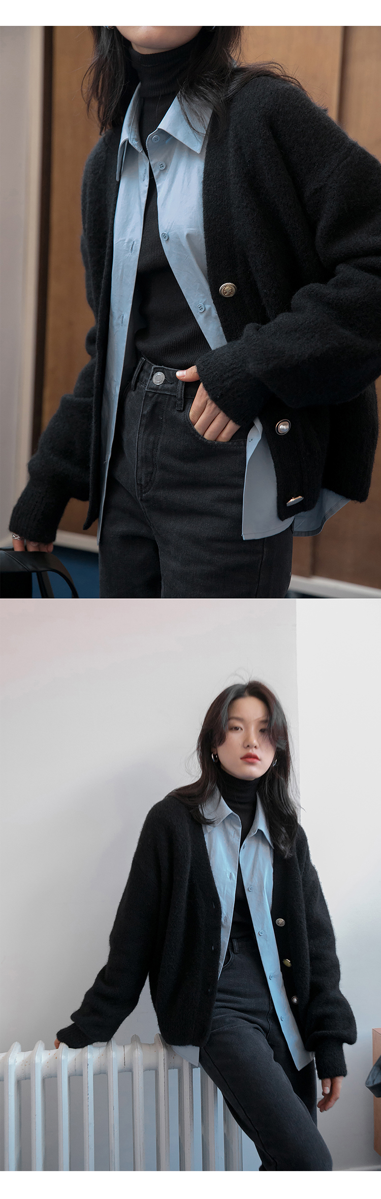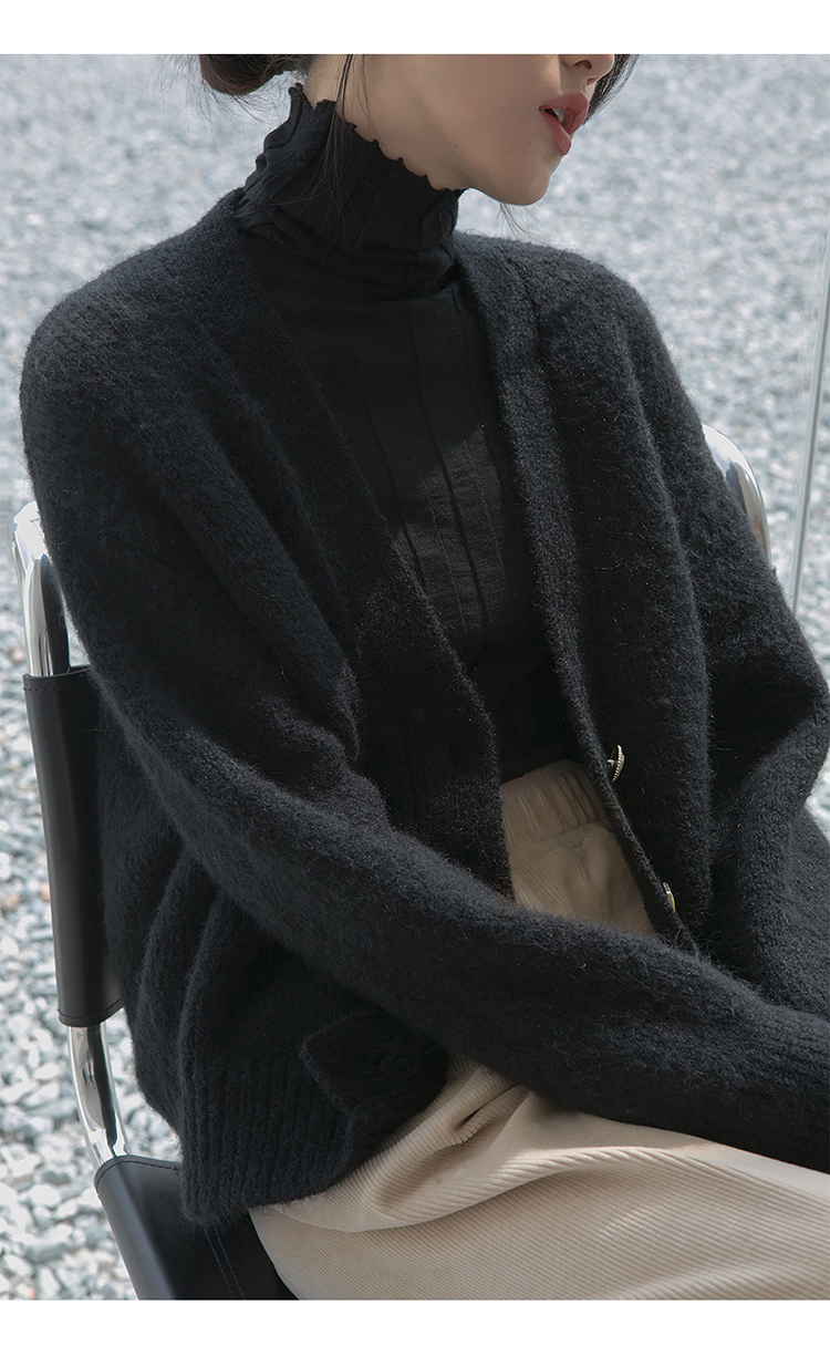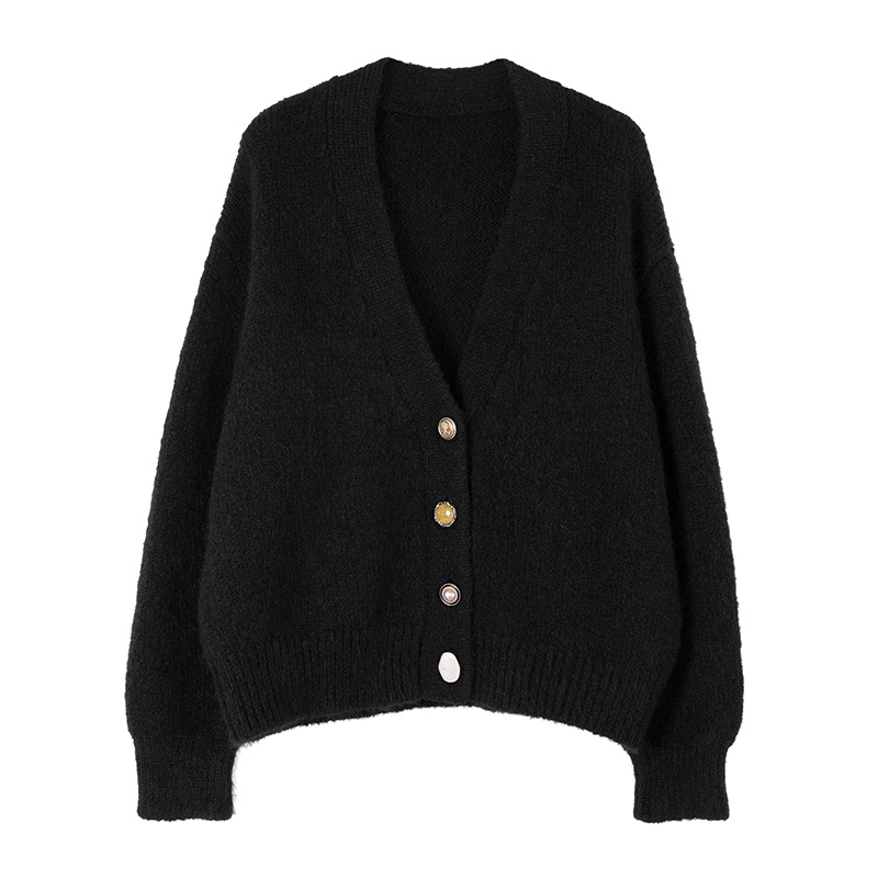 1313不一樣的雕塑感金屬扣黑色羊毛開衫外套2023女春保暖針織毛衣外套