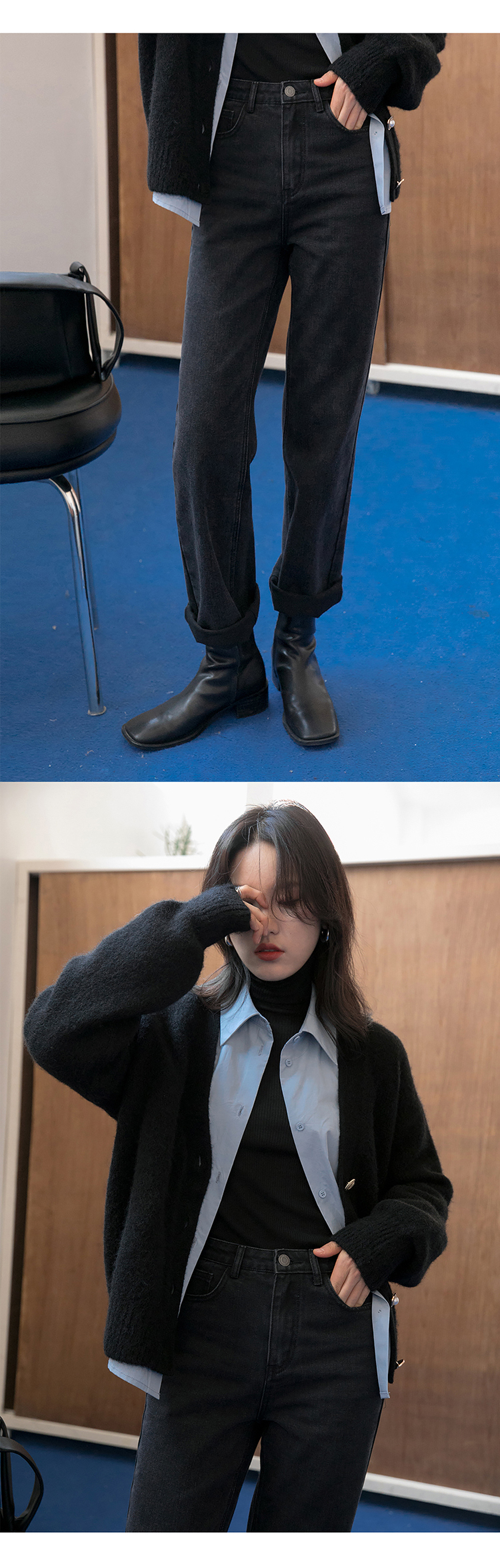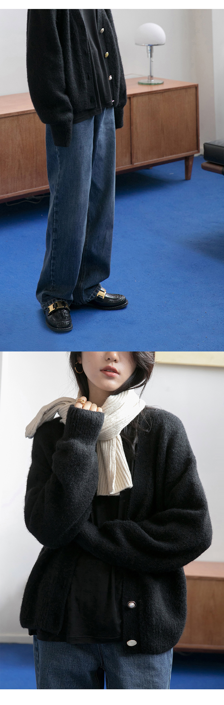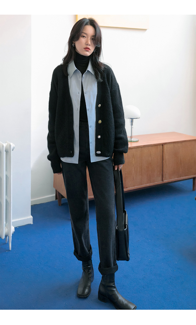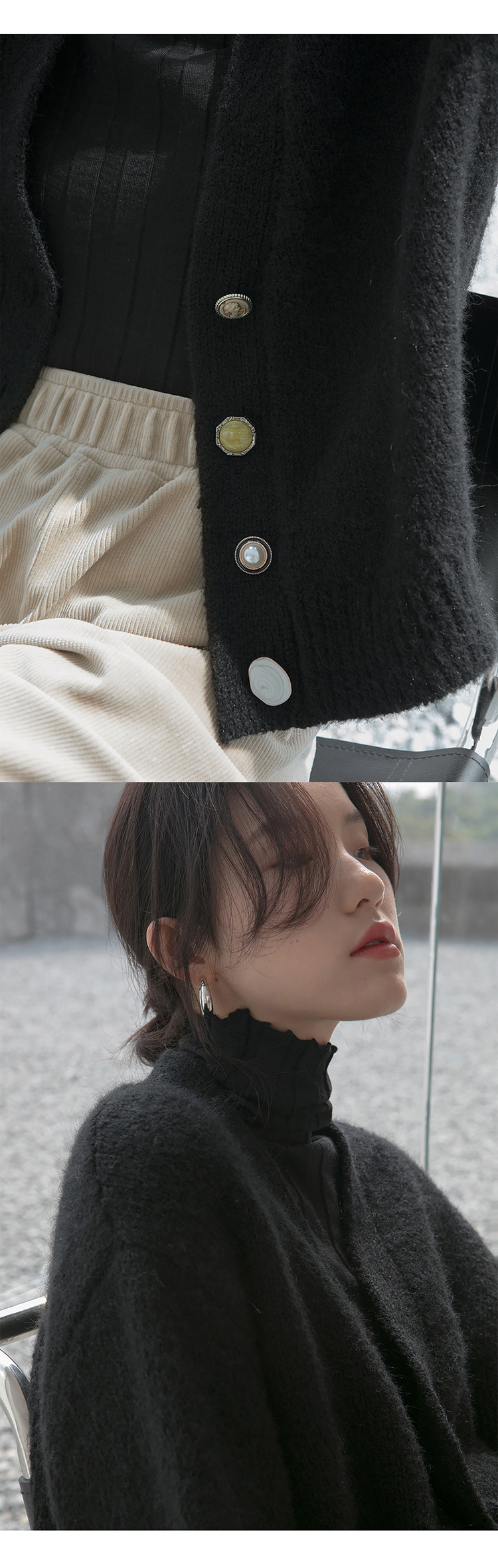 1313不一樣的雕塑感金屬扣黑色羊毛開衫外套2023女春保暖針織毛衣外套