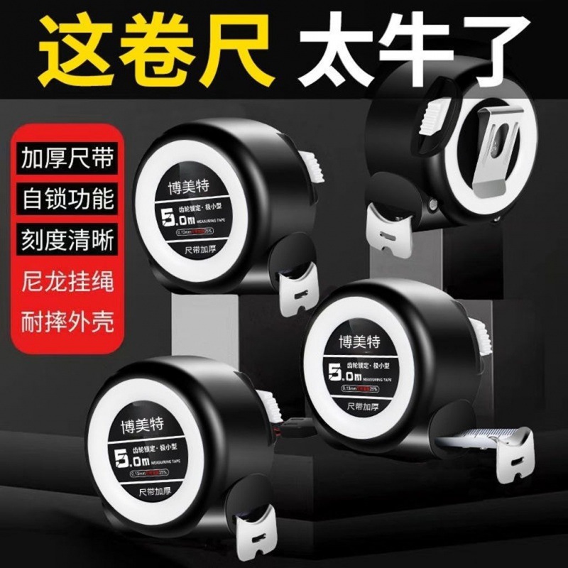 加厚极小款自动锁卷尺5米钢卷尺3米7米5防摔10米盒尺批发家用防锈