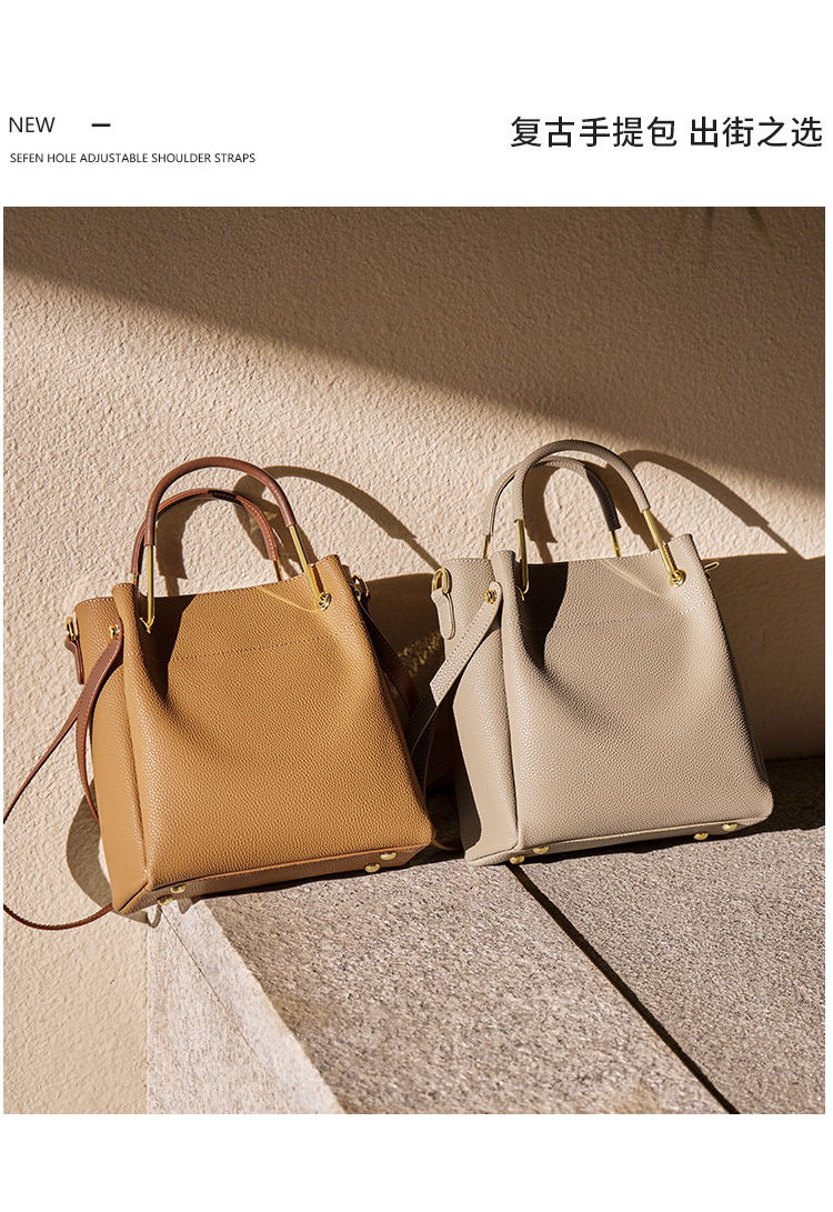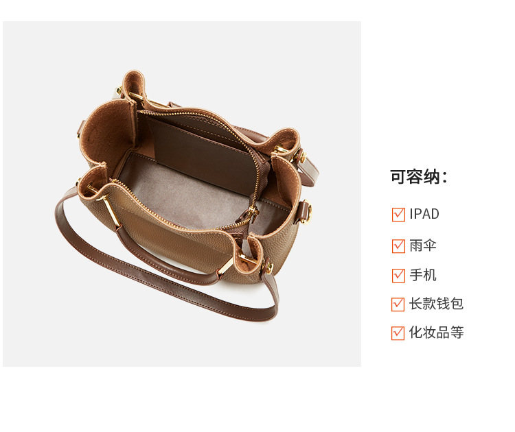 纳兰杜包包女2024新款秋冬水桶包女士斜挎包通勤手提包真皮女包潮