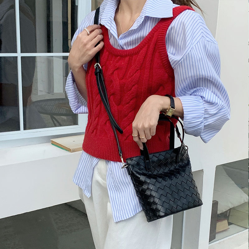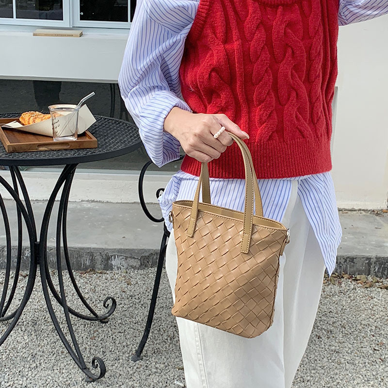 时尚菱格斜挎水桶包包女2024新款韩版潮流通勤休闲百搭单肩托特包
