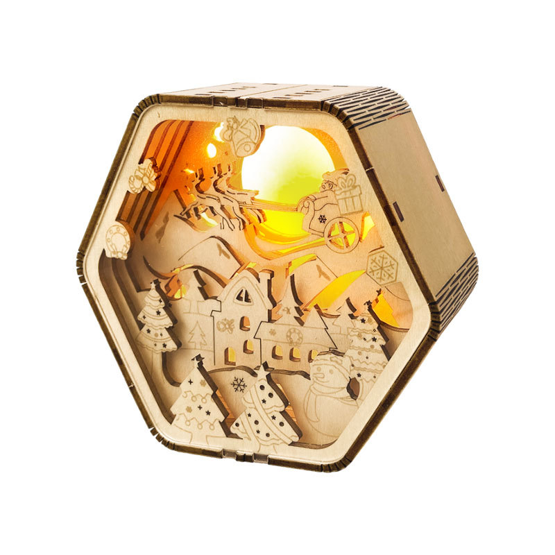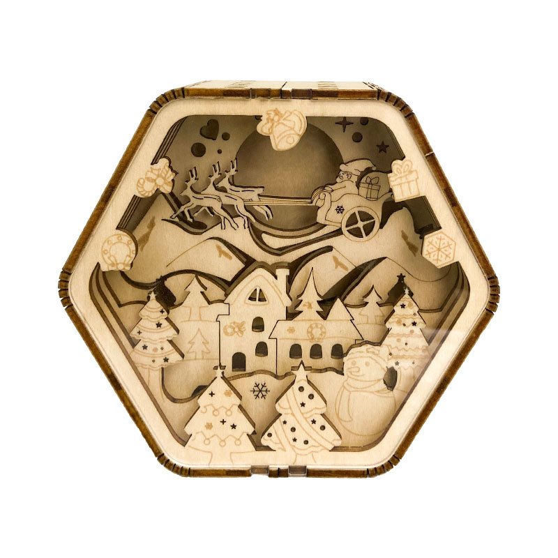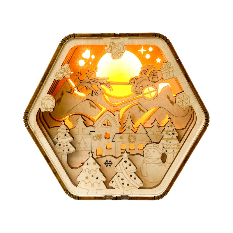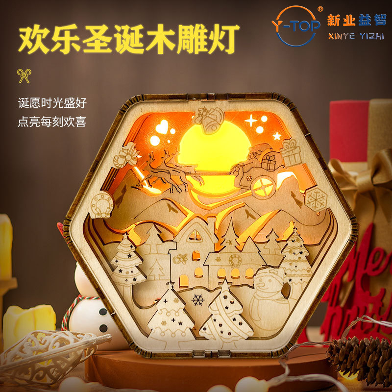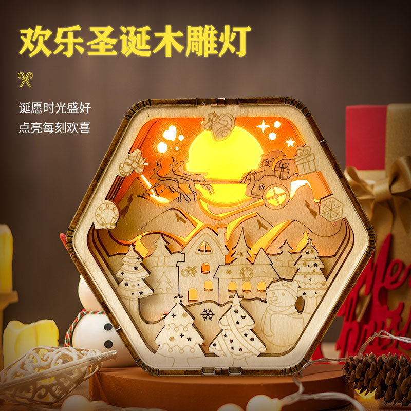 欢乐圣诞木雕灯手工拼装3d模型圣诞节装饰摆件创意小夜灯圣诞礼物