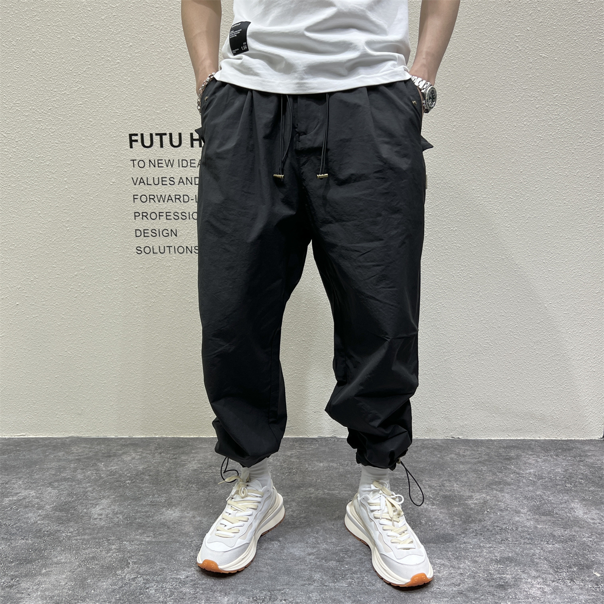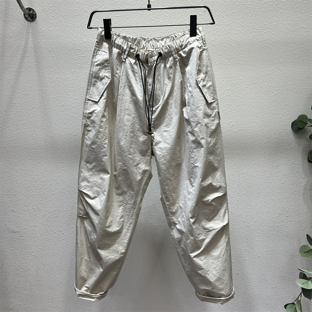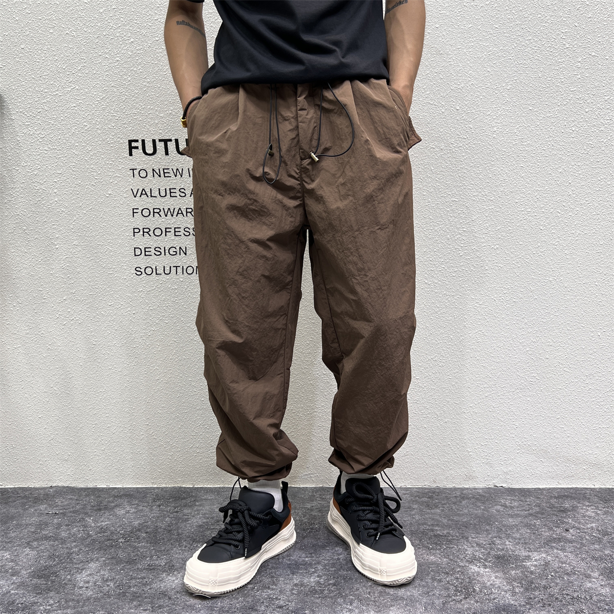 日系戶外機能露營風休閒褲男秋冬季寬鬆闊腿抽帶立體剪裁哈倫長褲