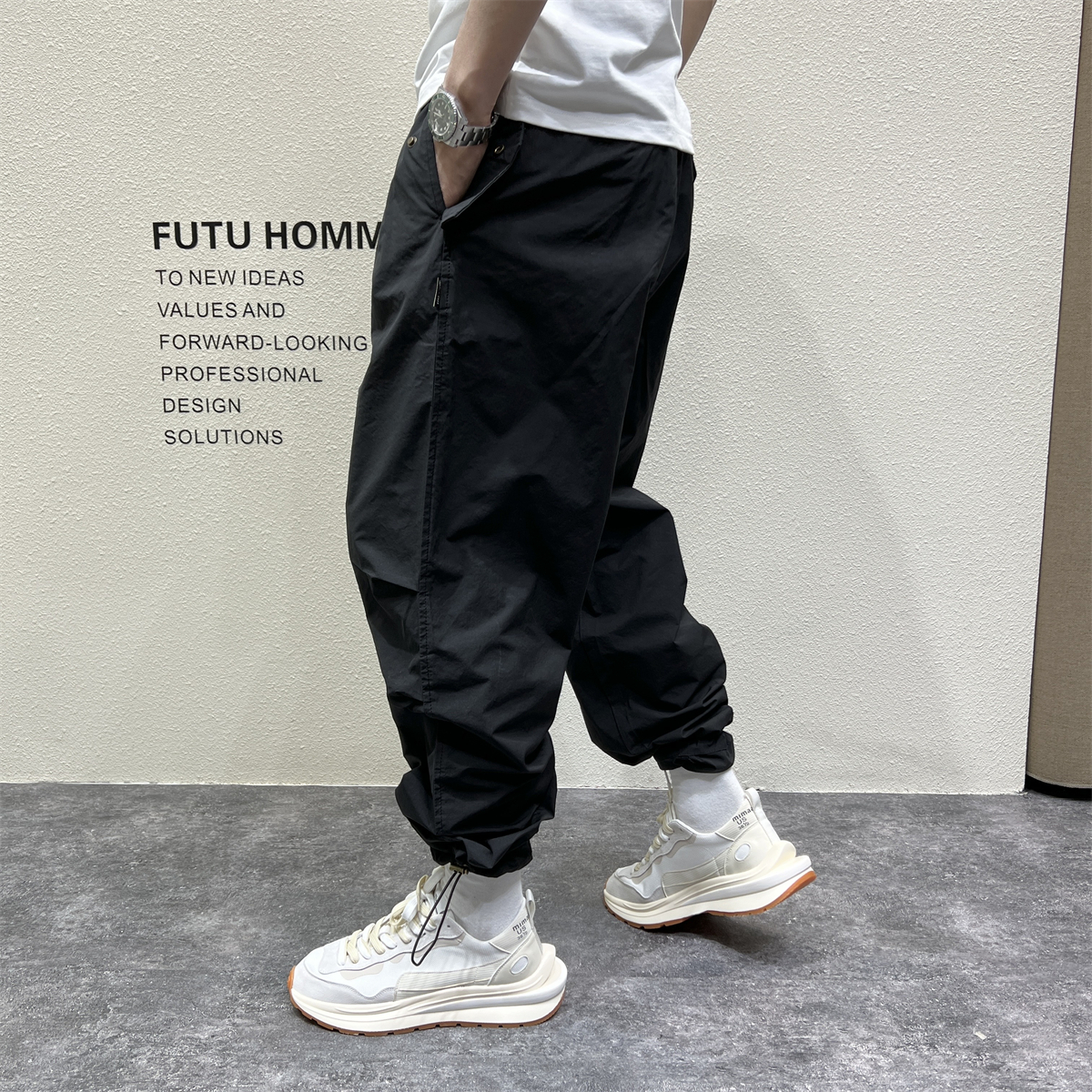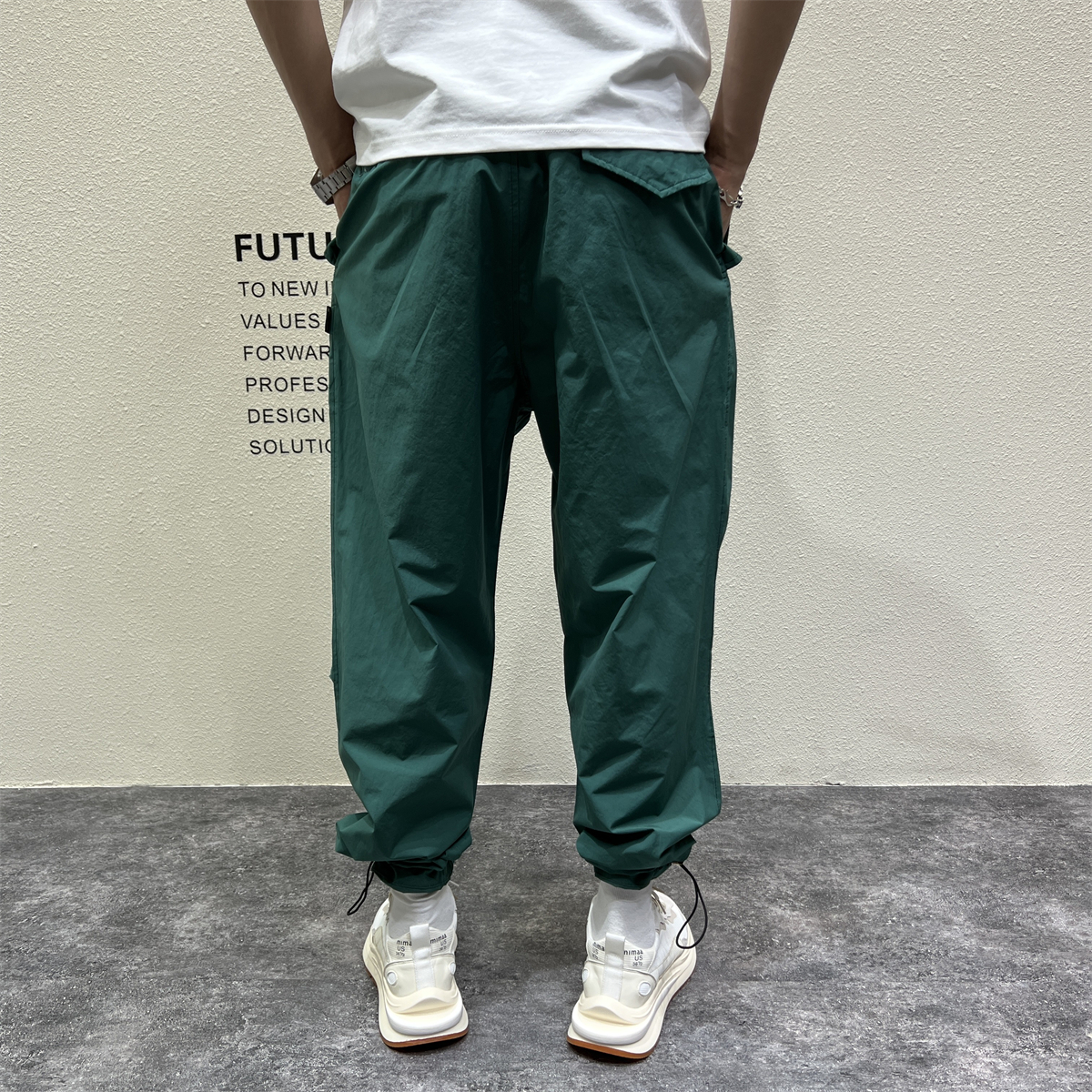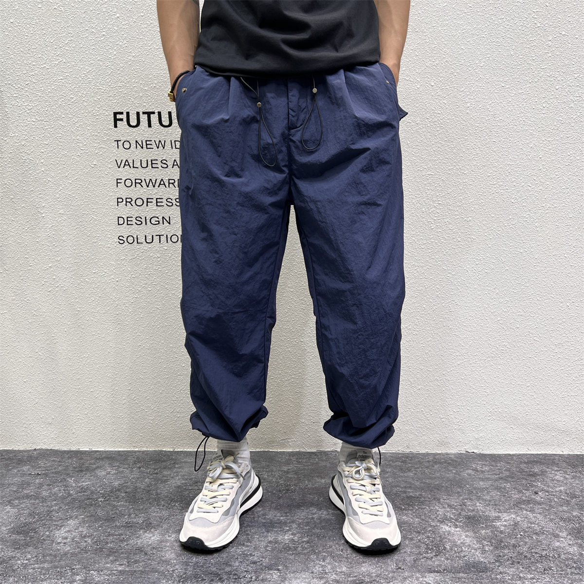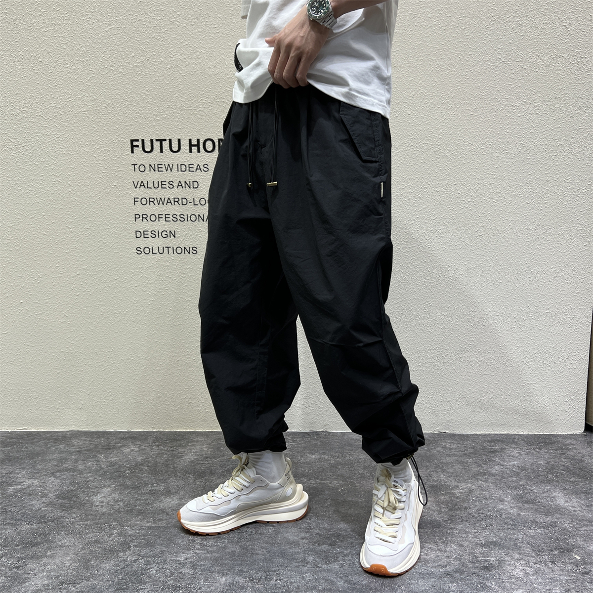 日系戶外機能露營風休閒褲男秋冬季寬鬆闊腿抽帶立體剪裁哈倫長褲