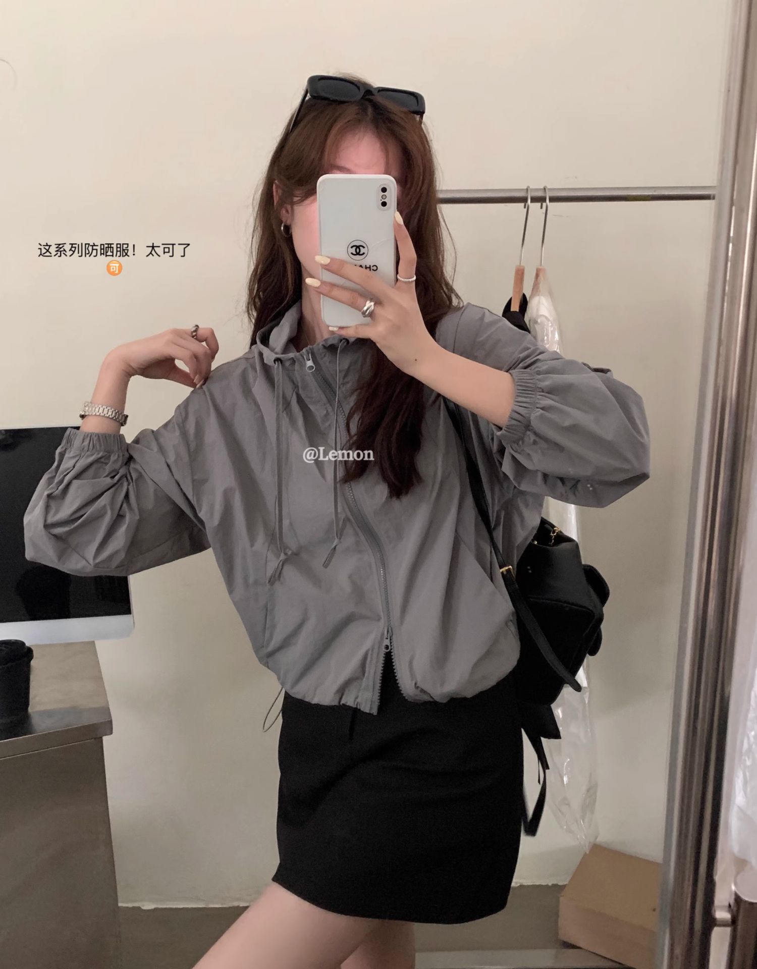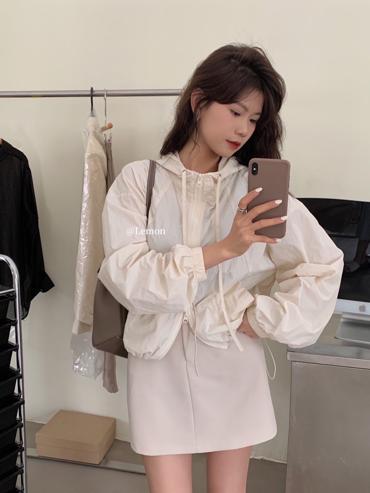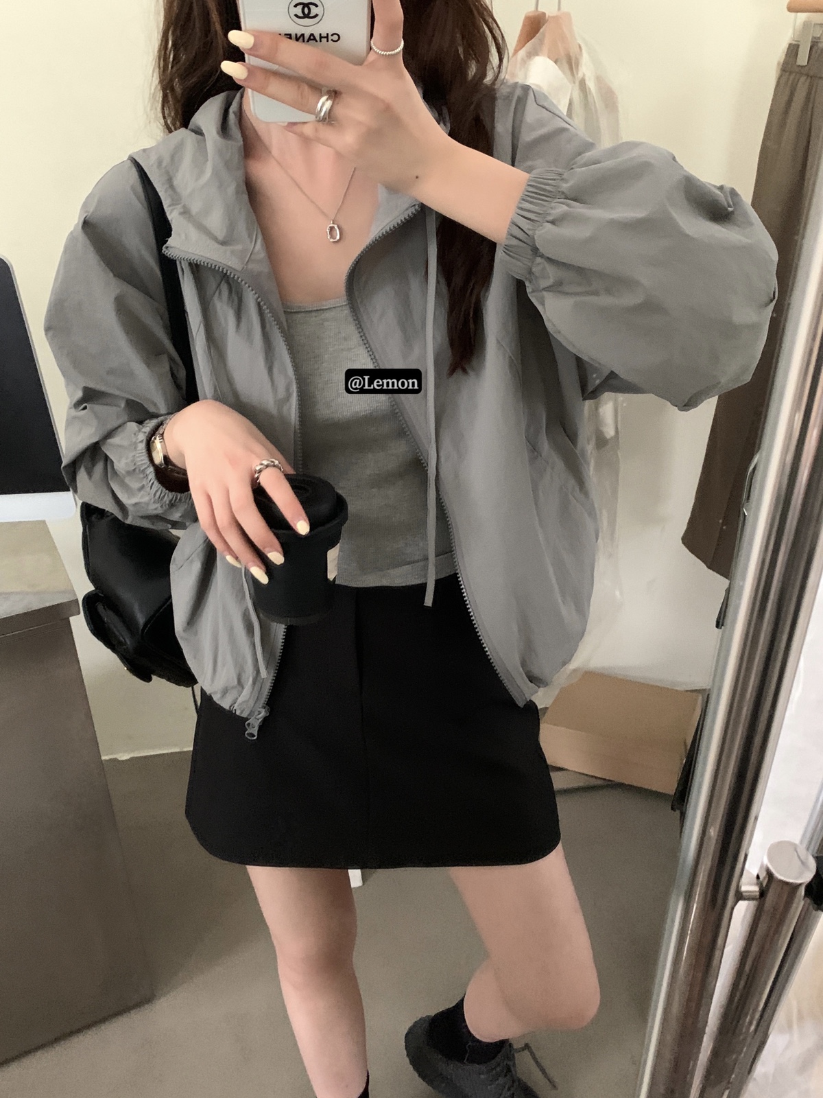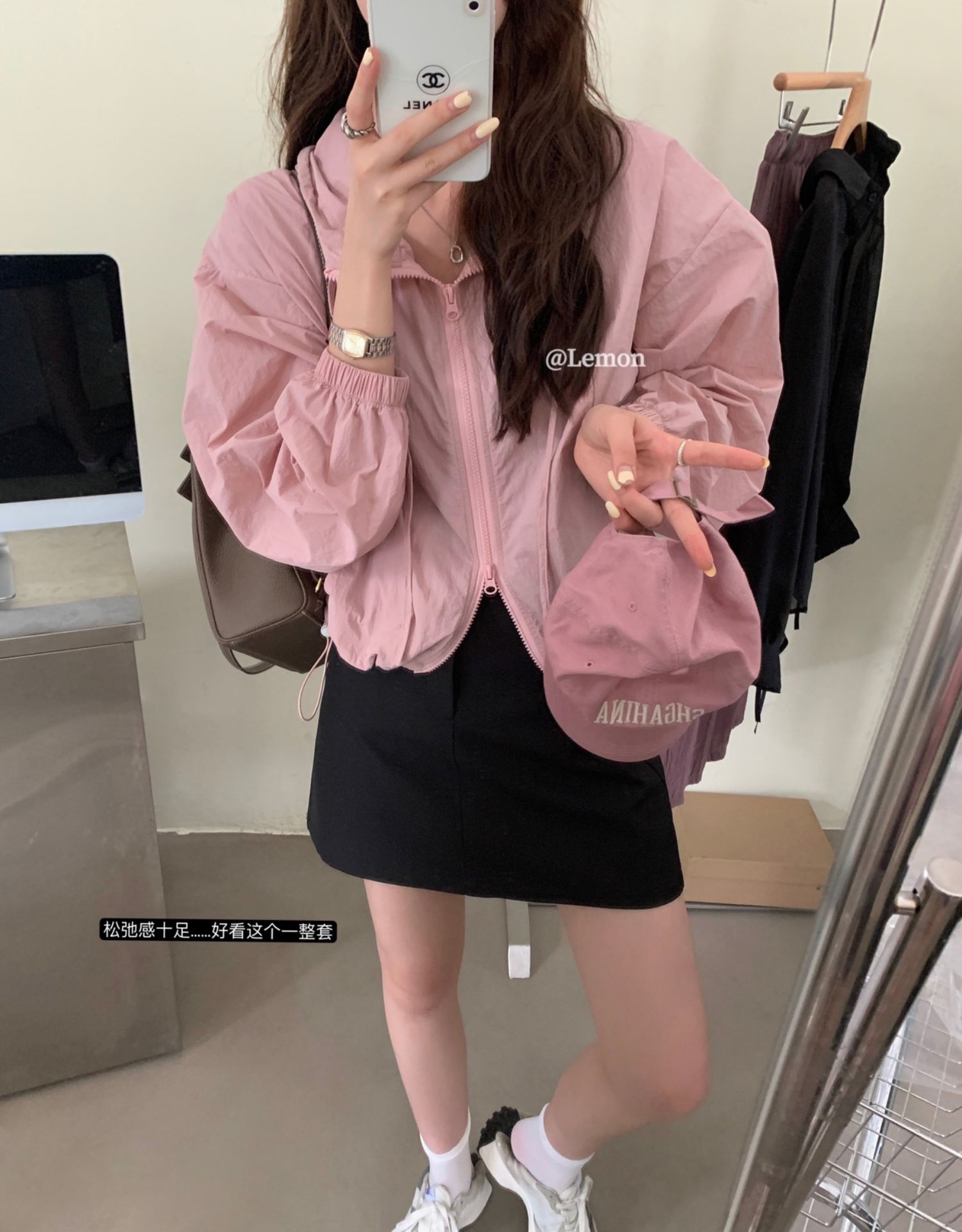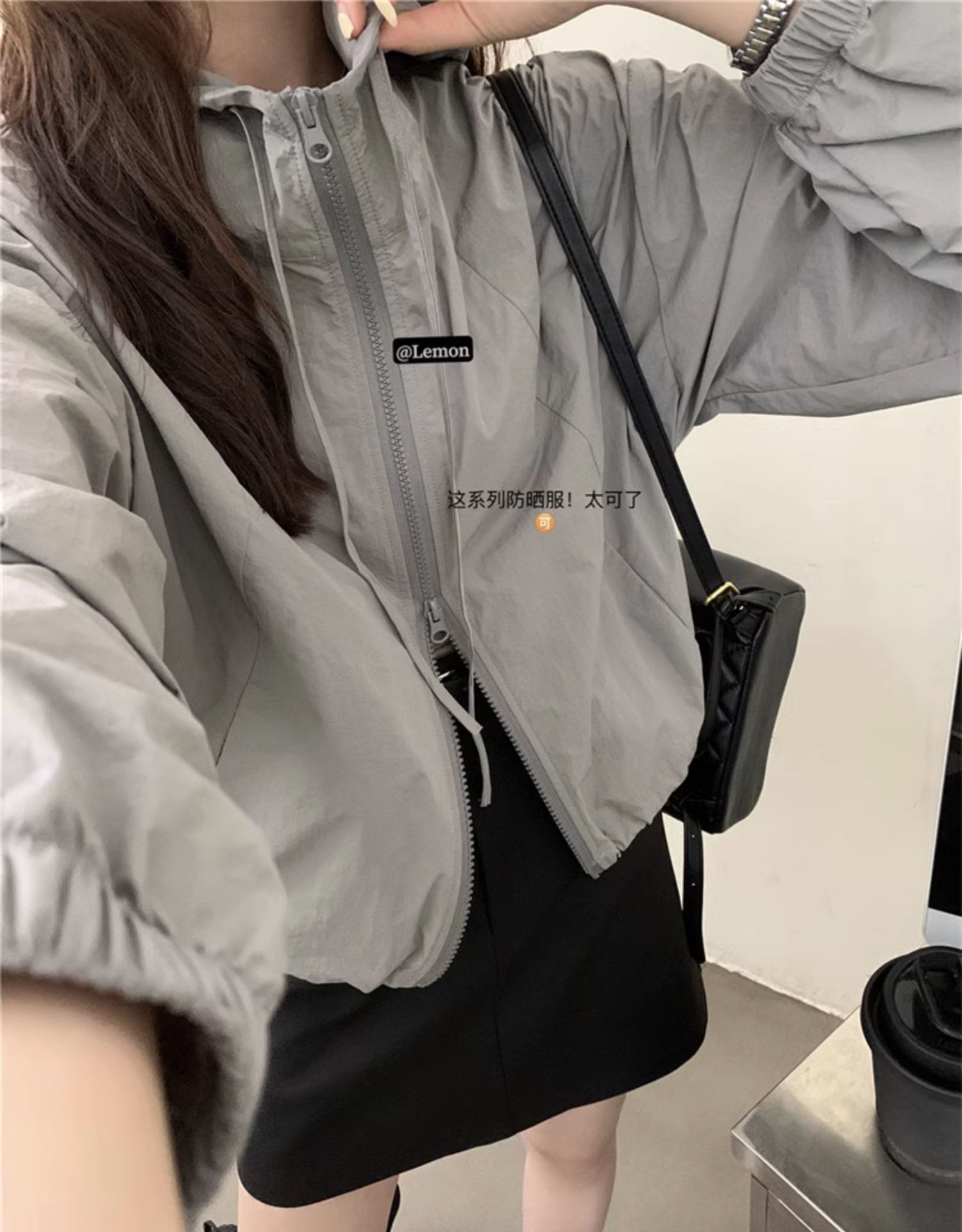 THE LEMON韓國夏季薄款立領抽繩運動防曬外套女短款休閒寬鬆上衣