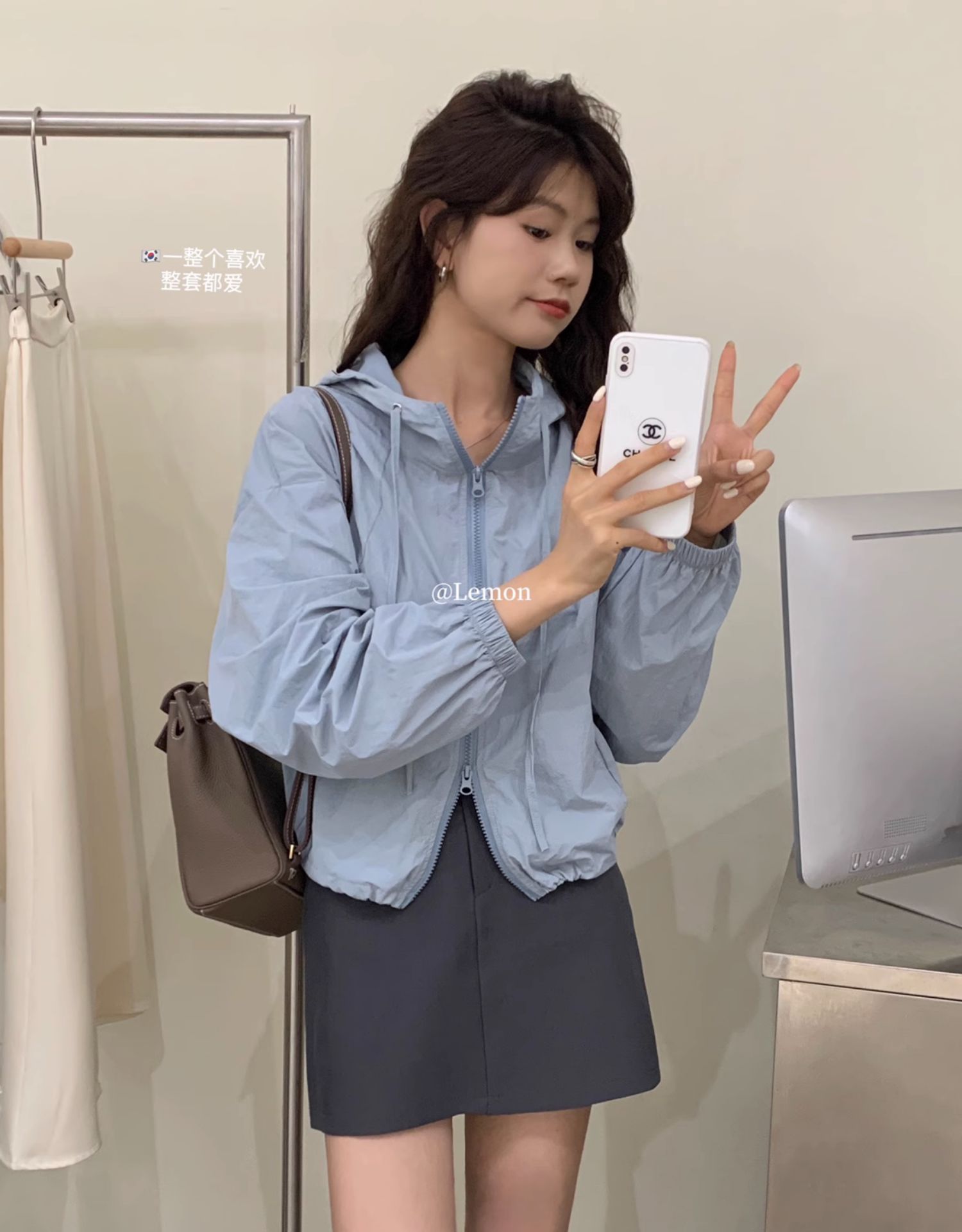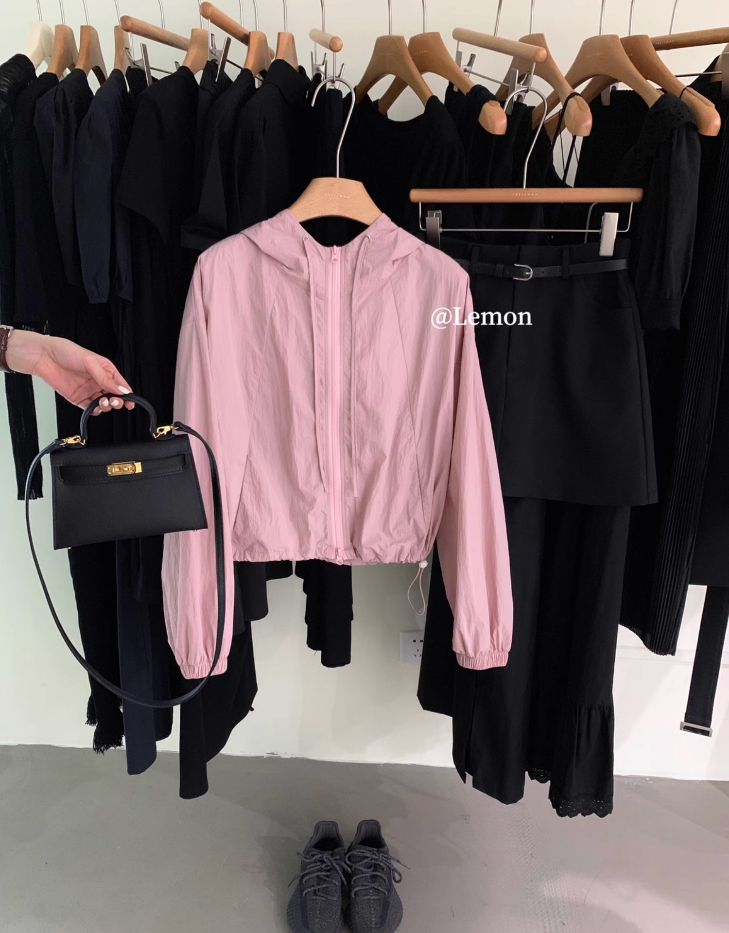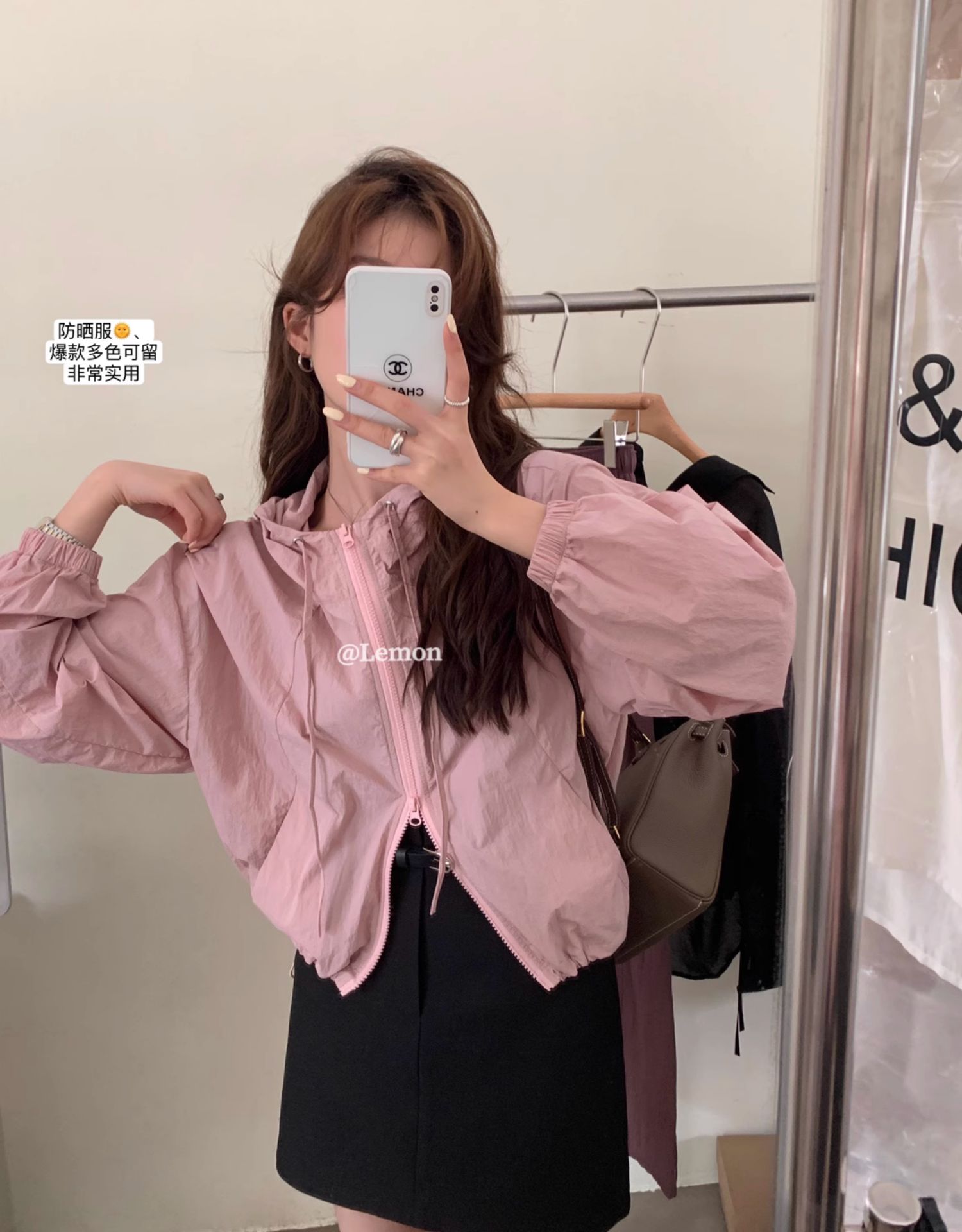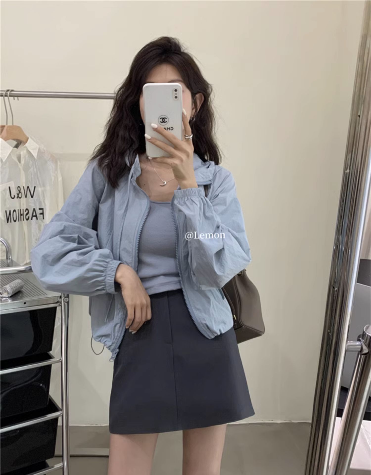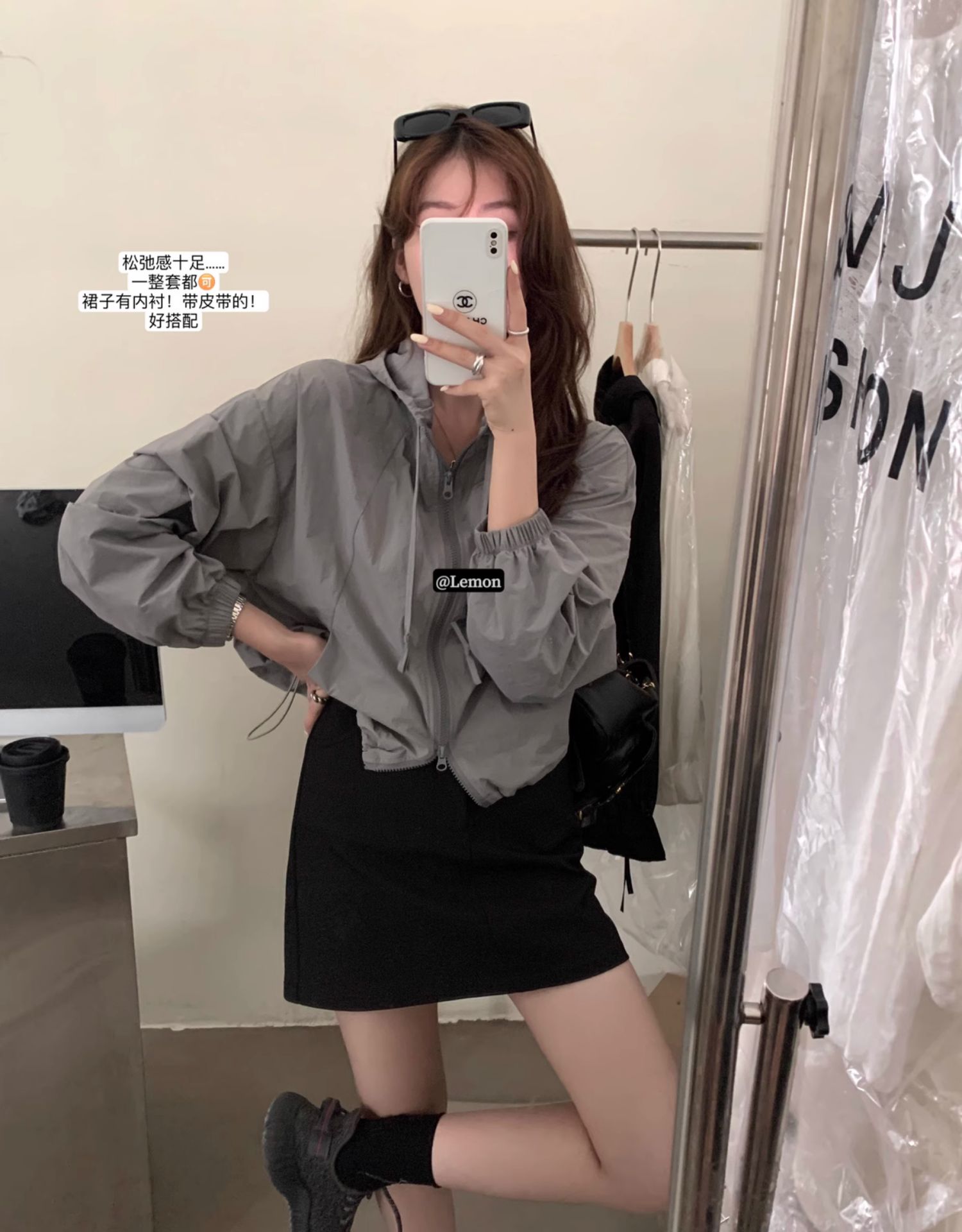 THE LEMON韓國夏季薄款立領抽繩運動防曬外套女短款休閒寬鬆上衣