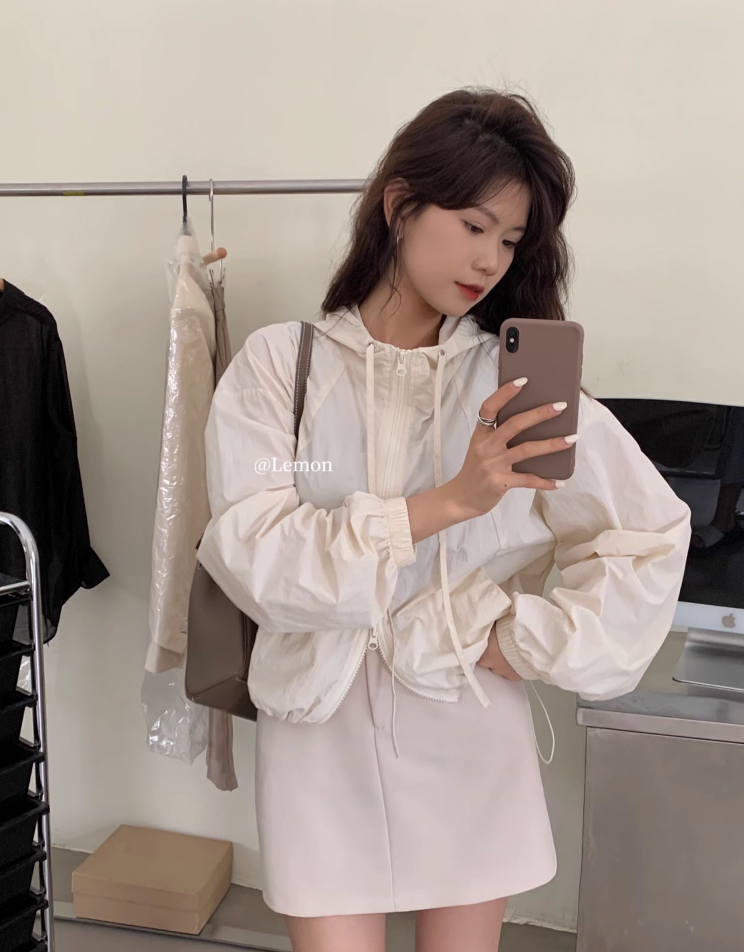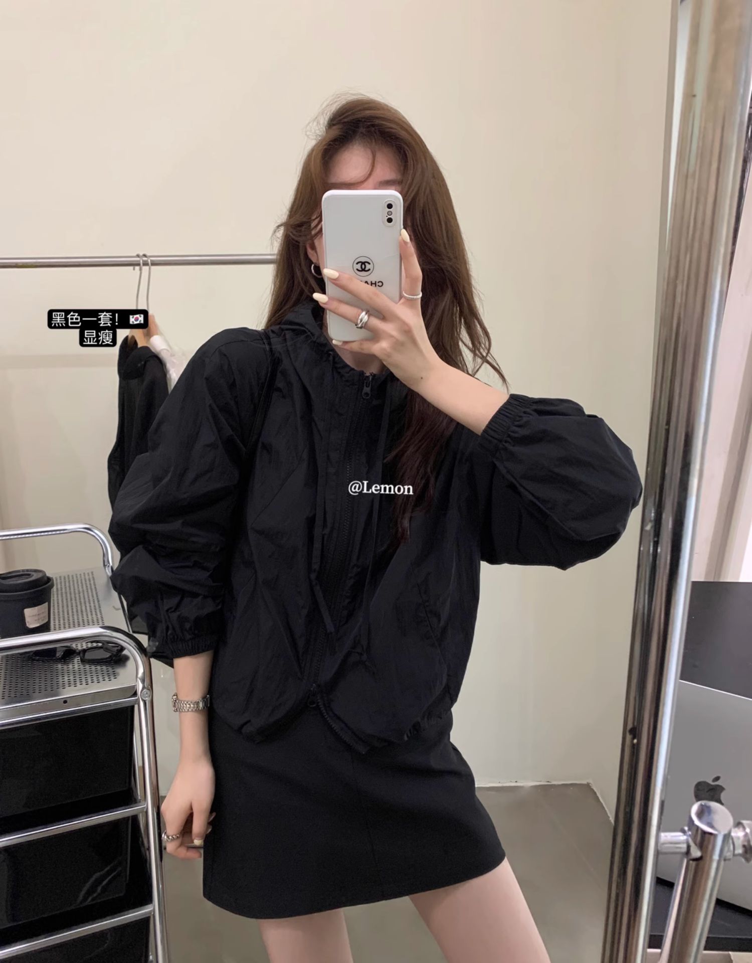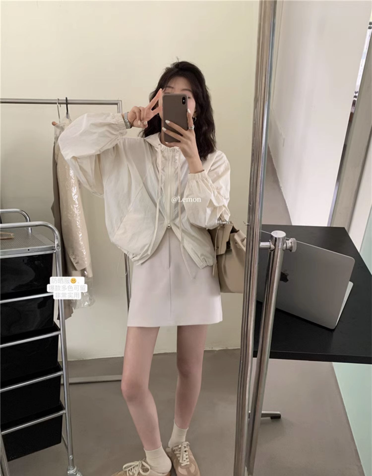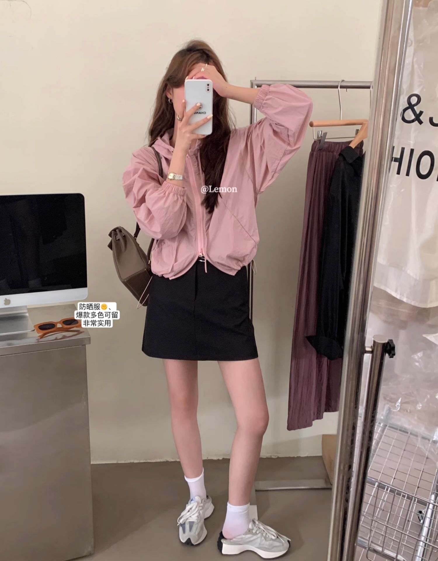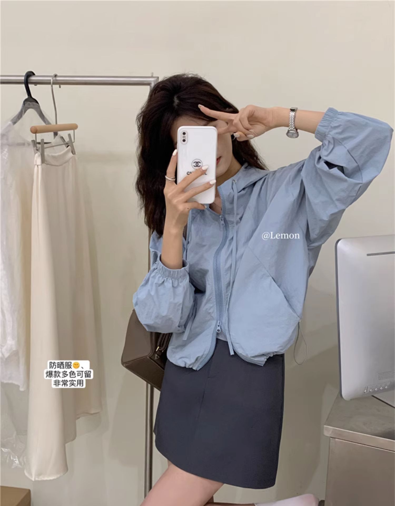 THE LEMON韓國夏季薄款立領抽繩運動防曬外套女短款休閒寬鬆上衣