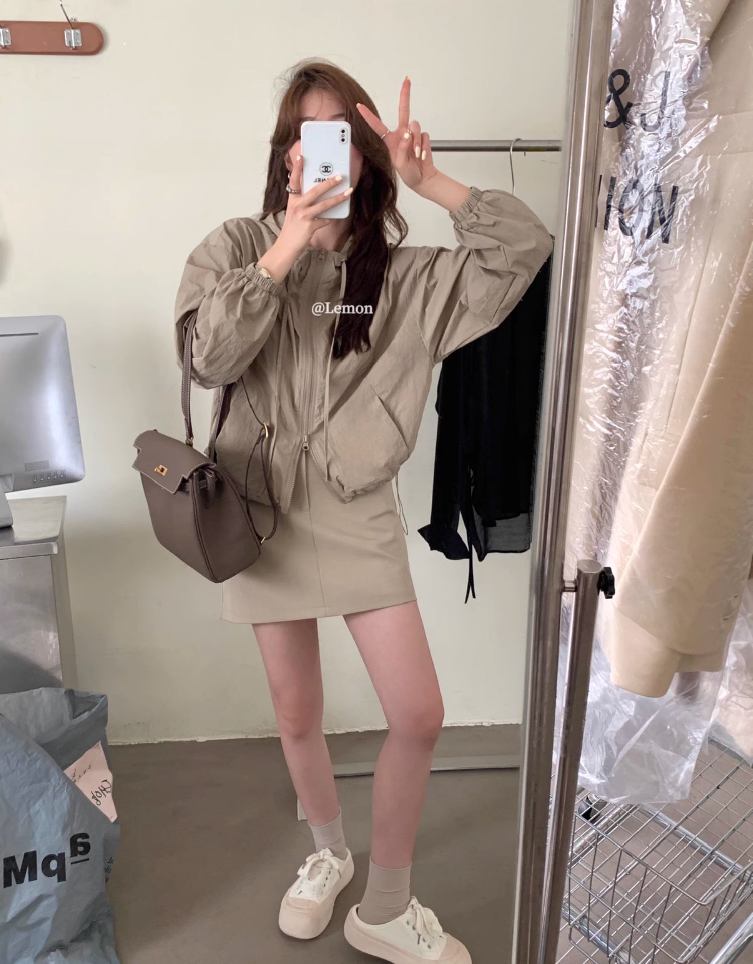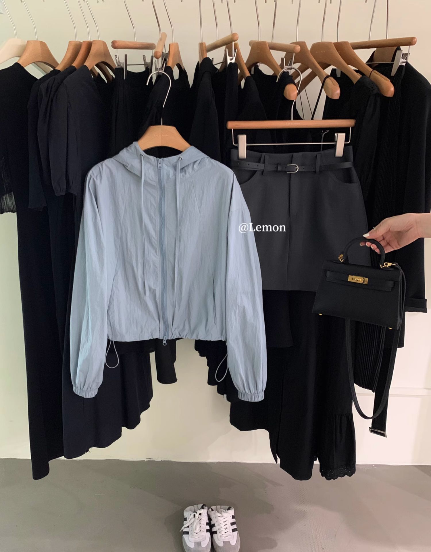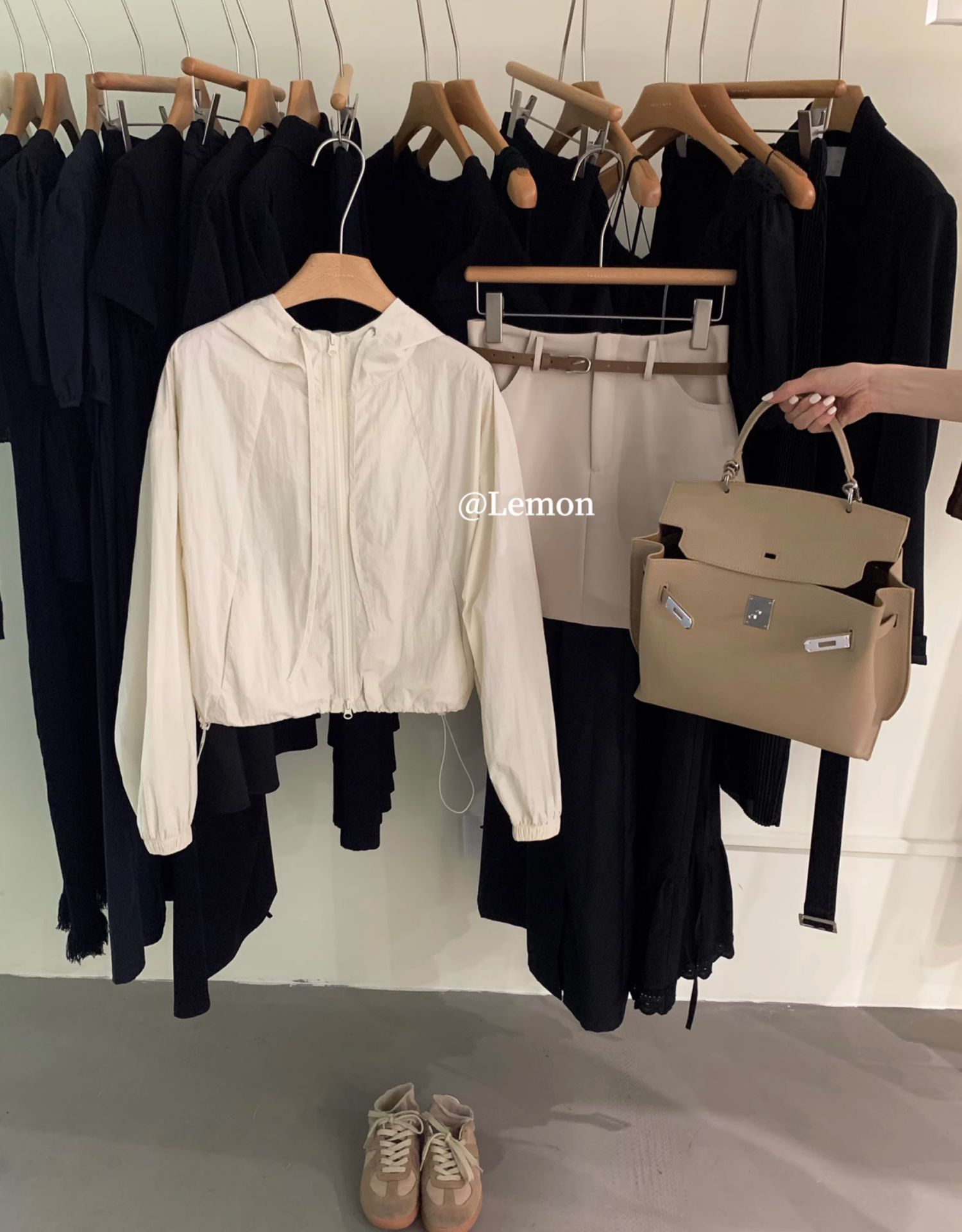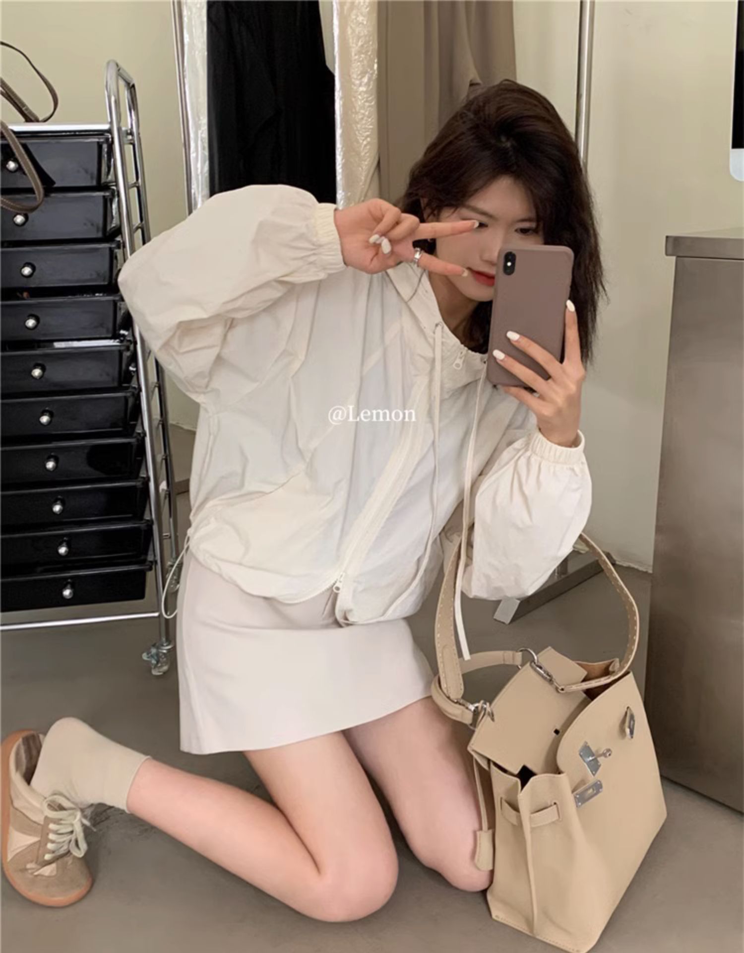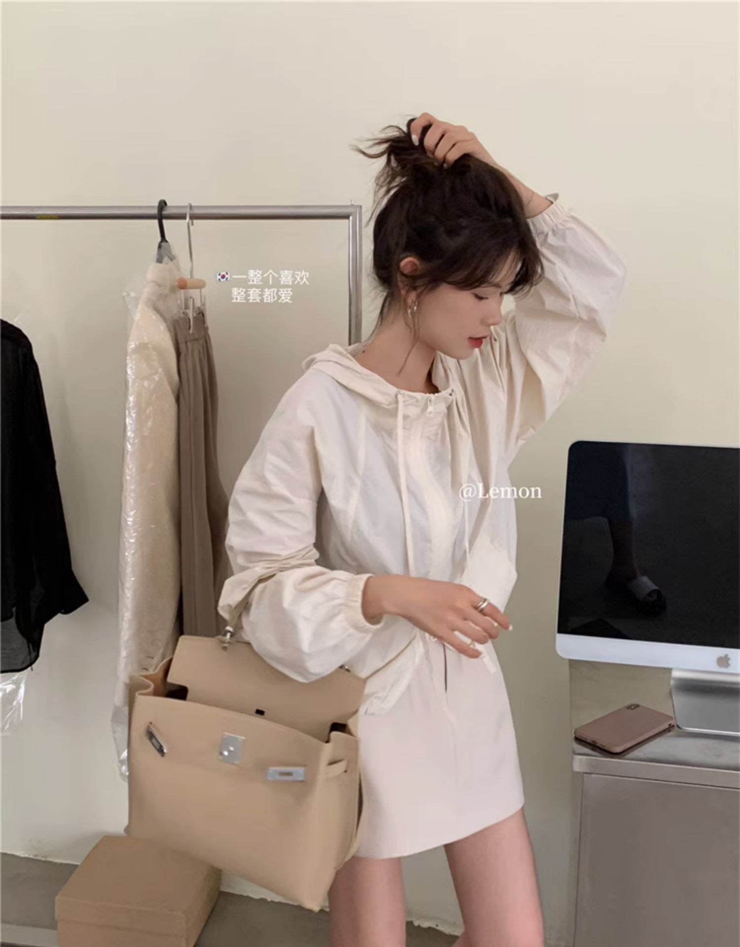 THE LEMON韓國夏季薄款立領抽繩運動防曬外套女短款休閒寬鬆上衣