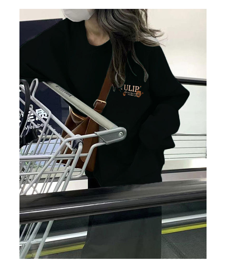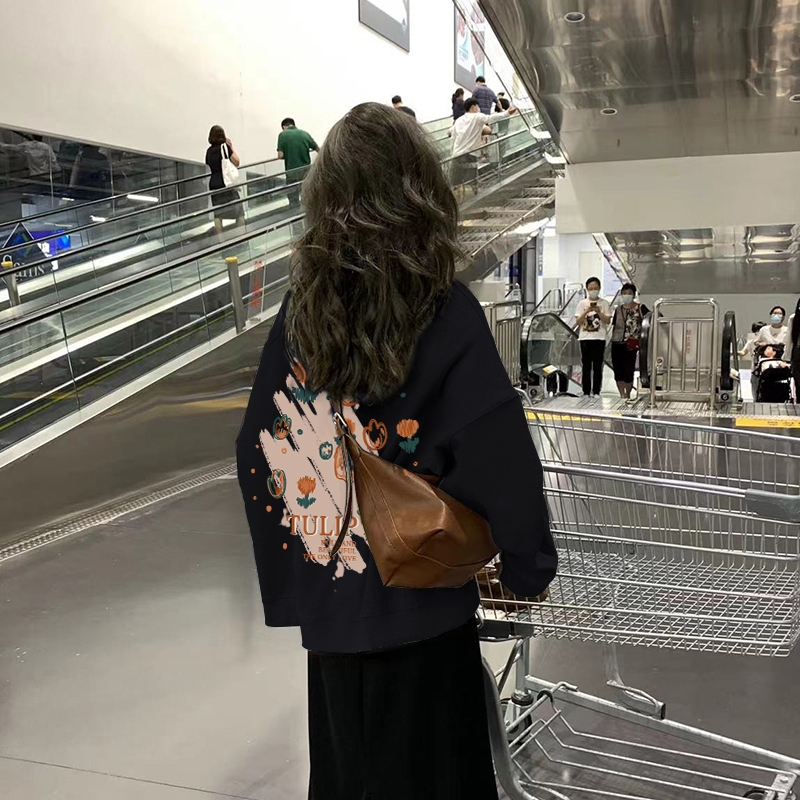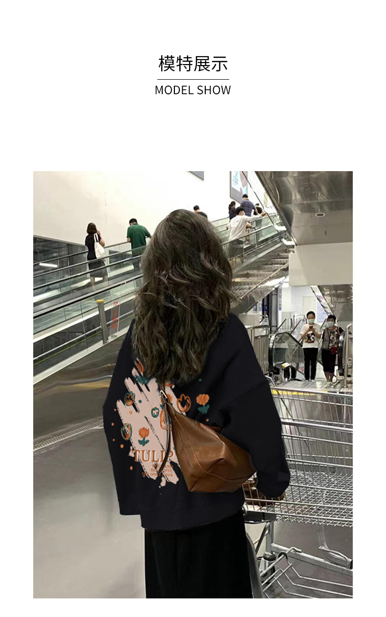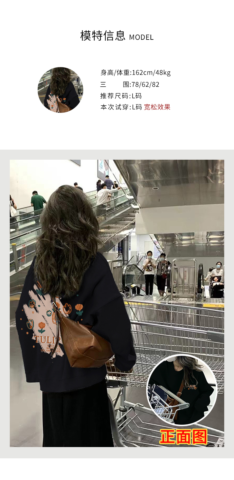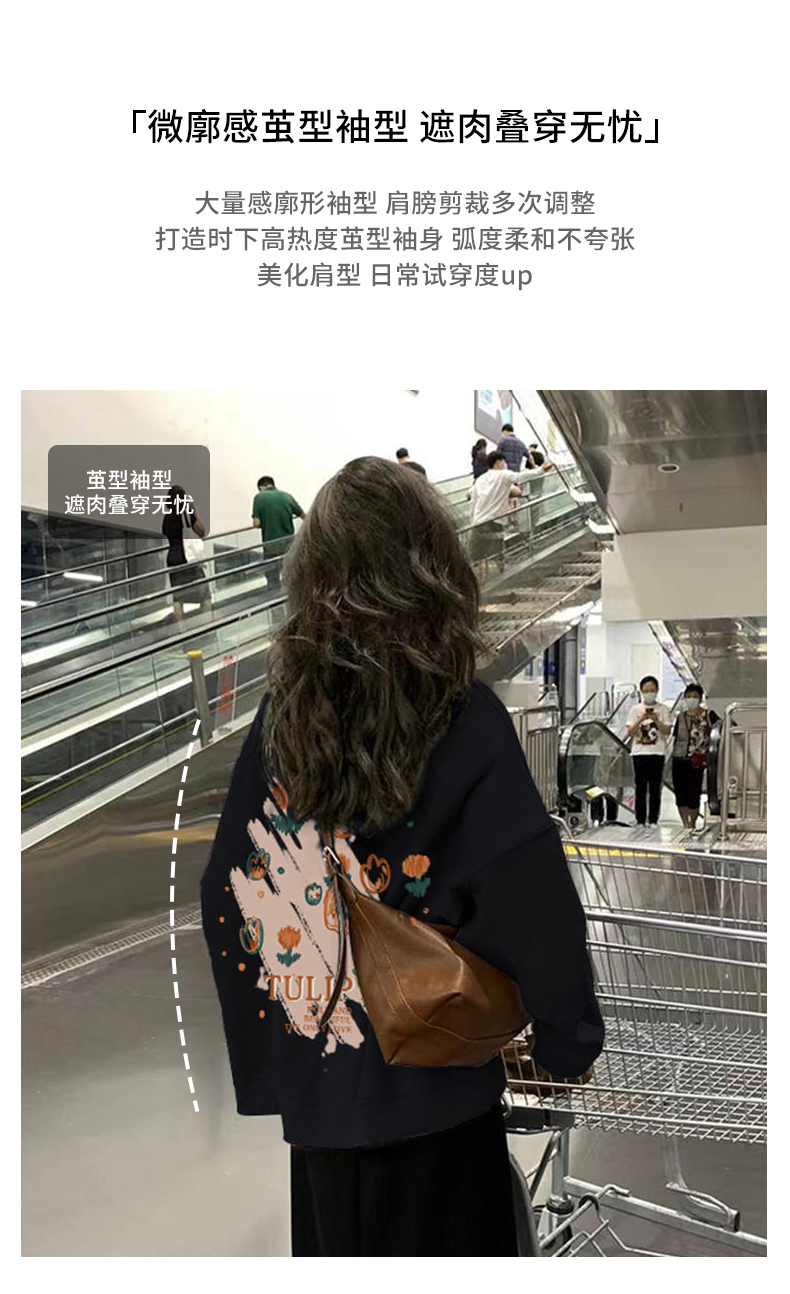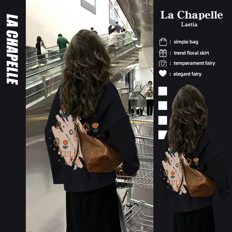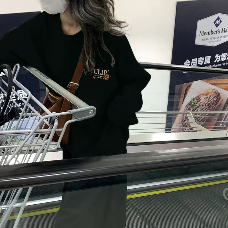 拉夏貝爾高級感超好看衛衣女2023新款爆款圓領上衣秋冬加絨外套厚