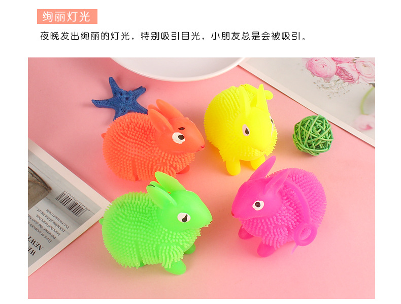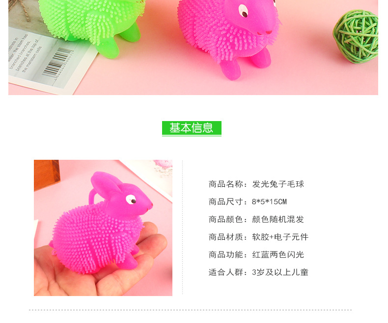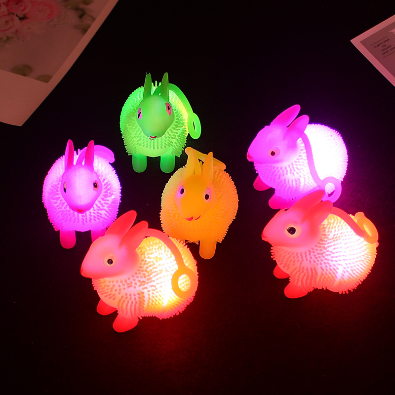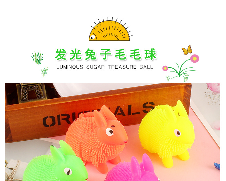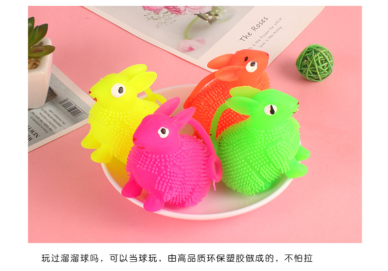 闪光毛毛球七彩发光小兔子毛毛球发泄弹力球儿童玩具地摊货源批发