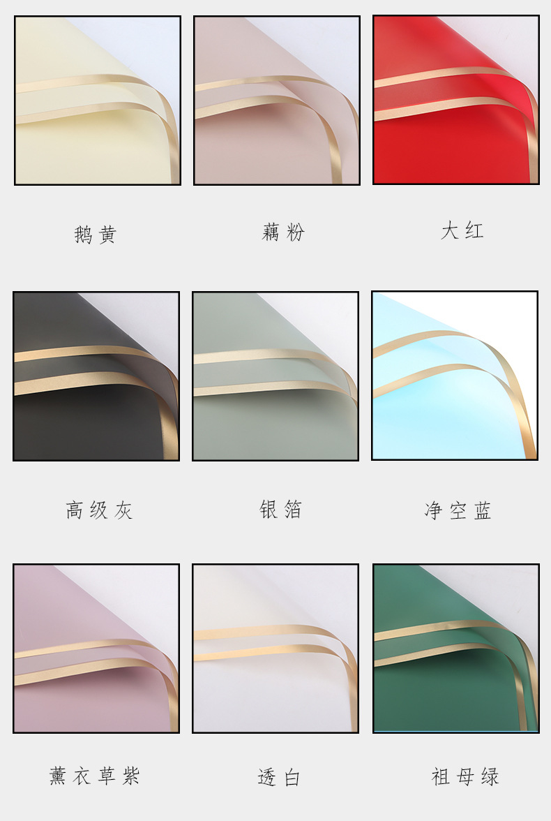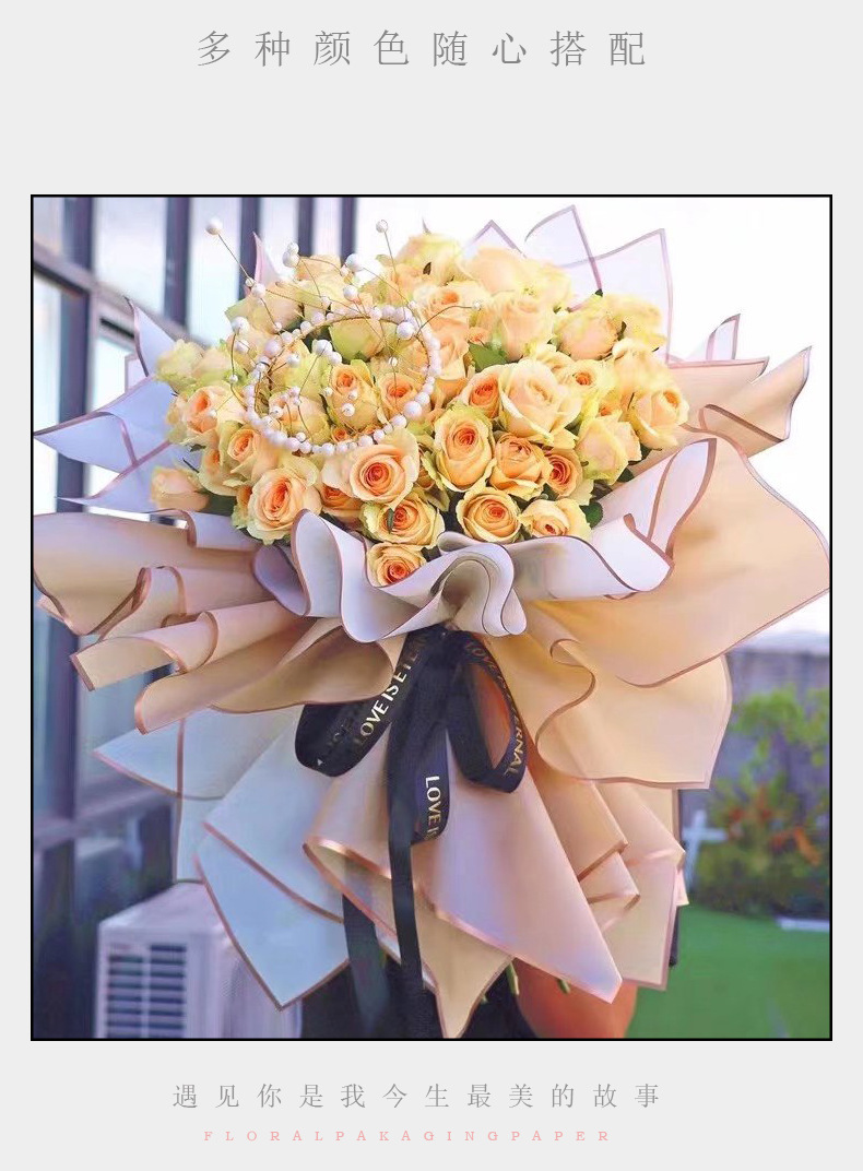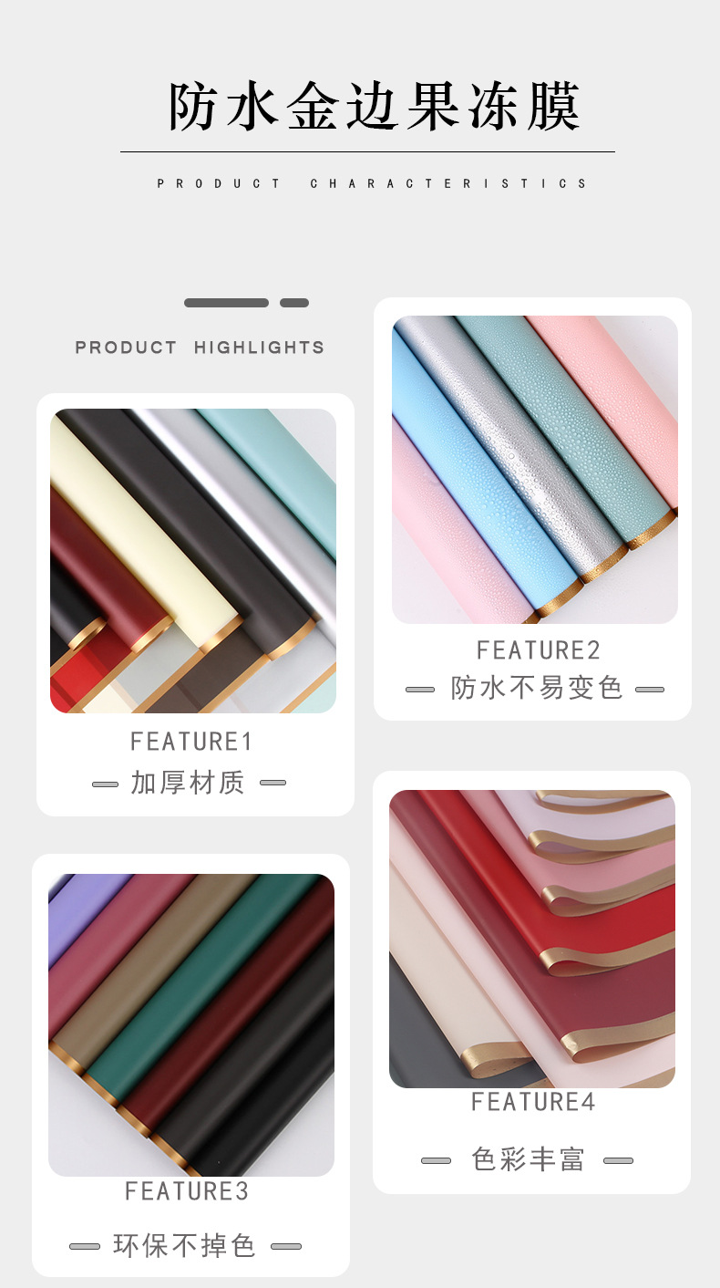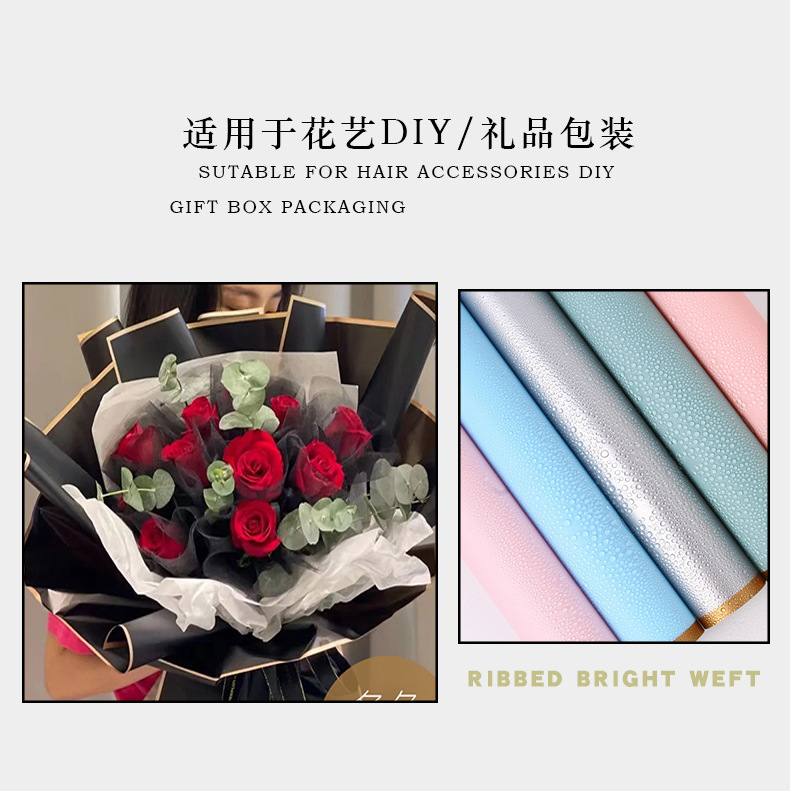 厂家批发爆款鲜花包装纸 花艺花束包装材料 韩式防水金边果冻膜