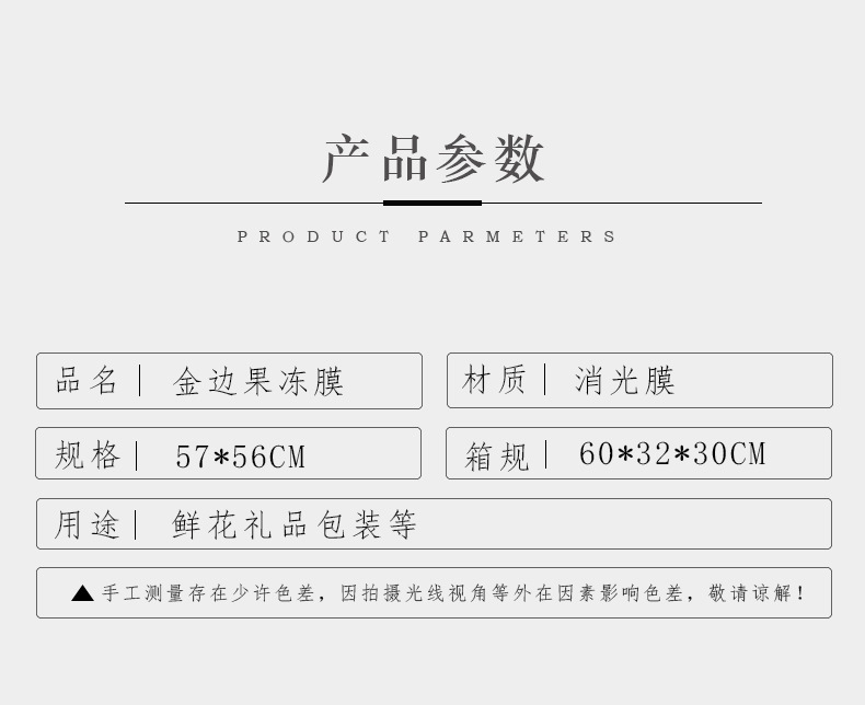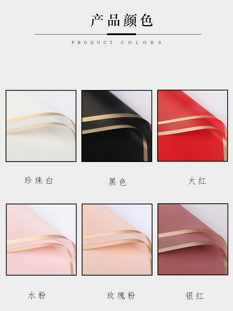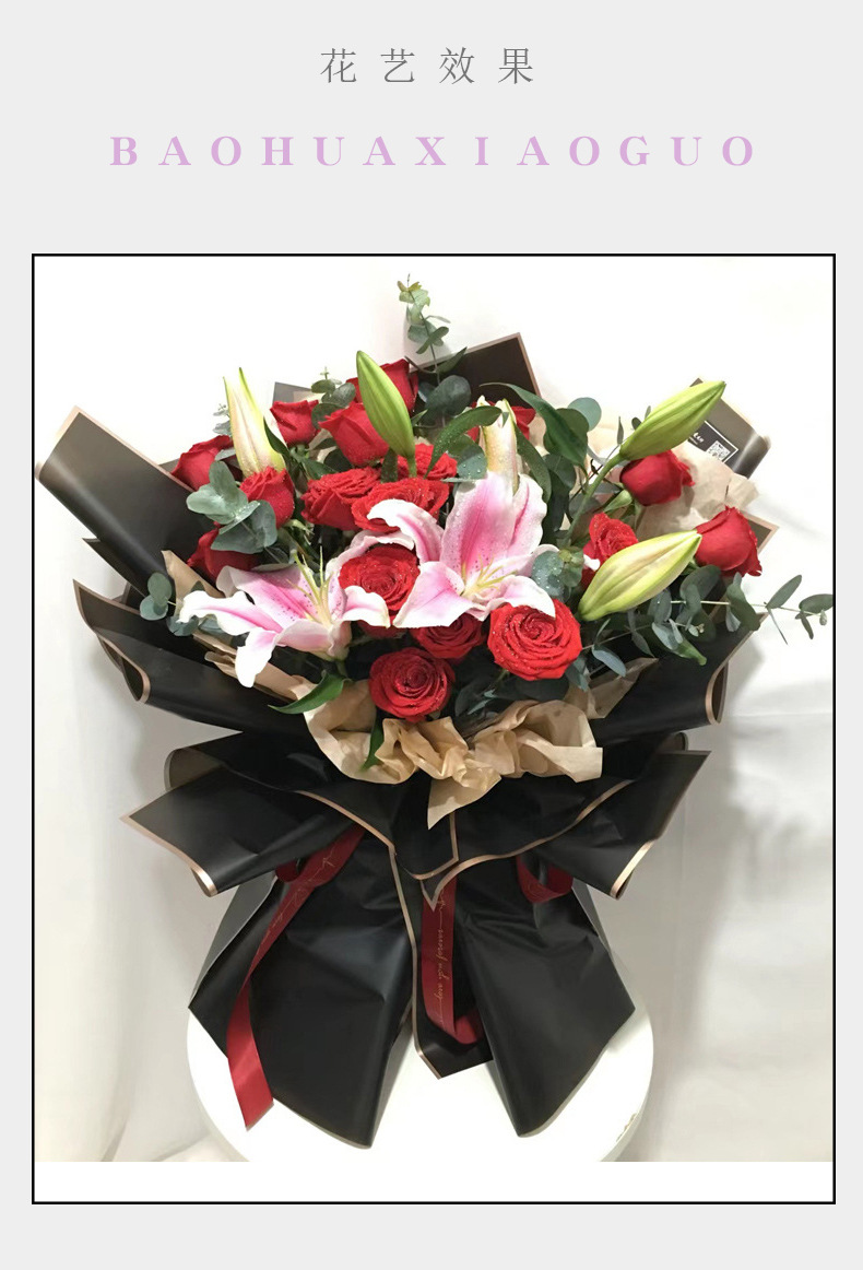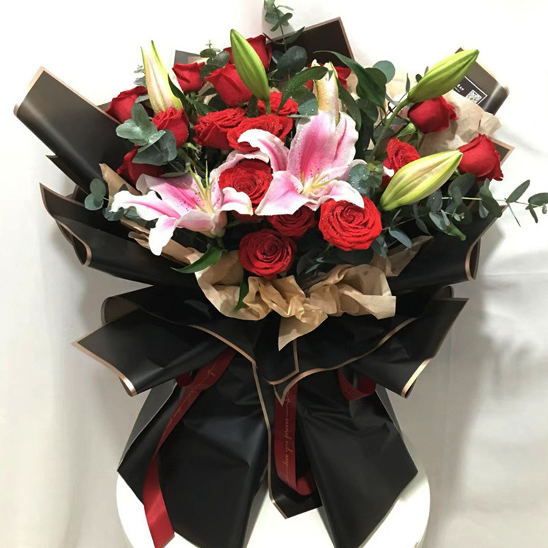 厂家批发爆款鲜花包装纸 花艺花束包装材料 韩式防水金边果冻膜