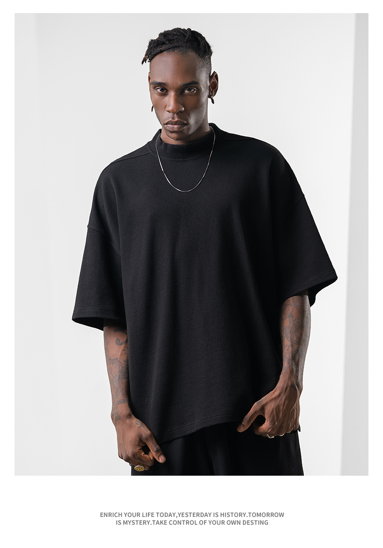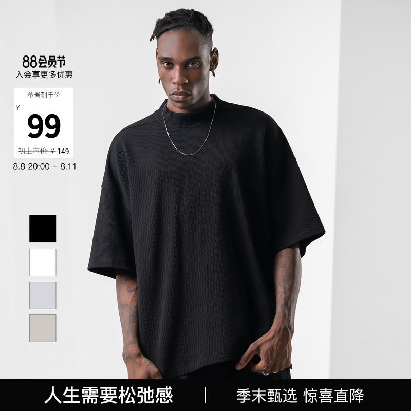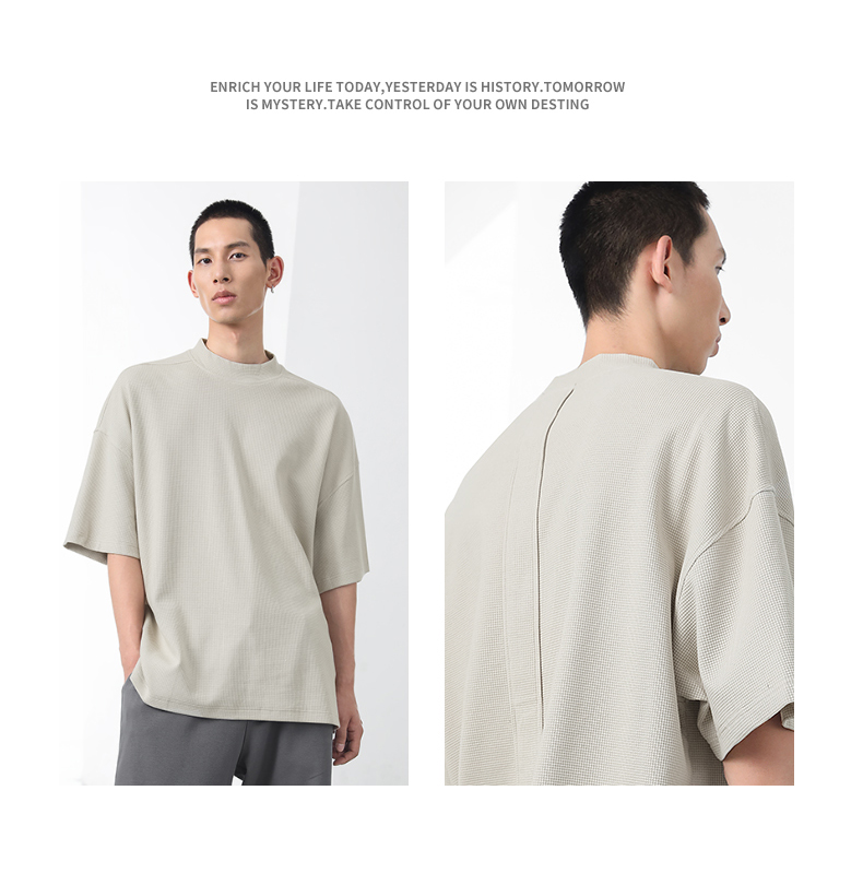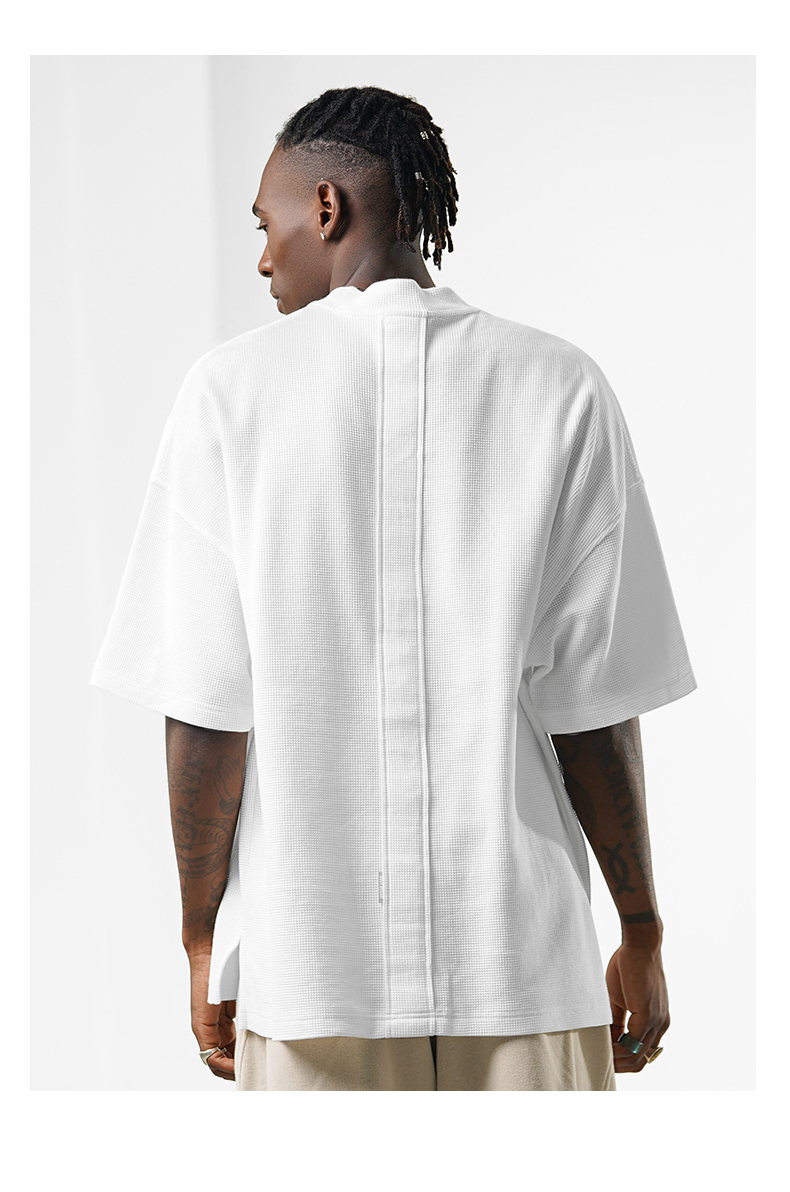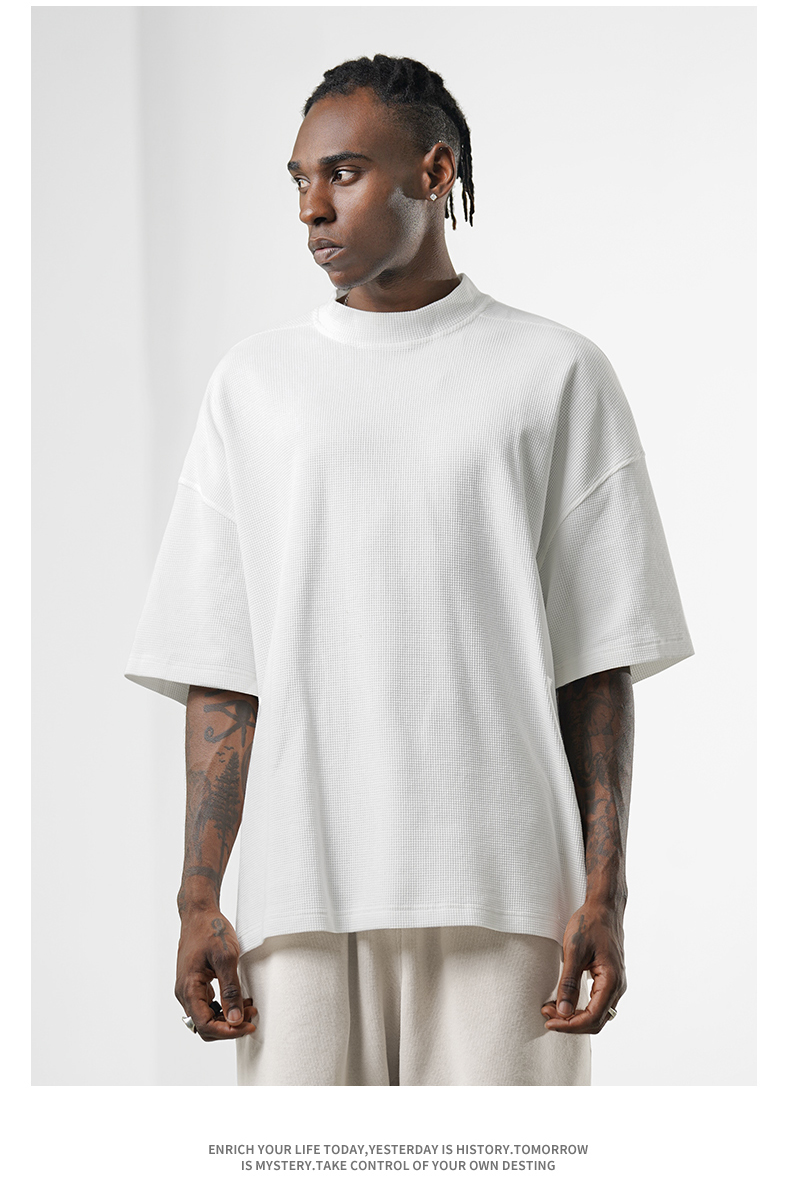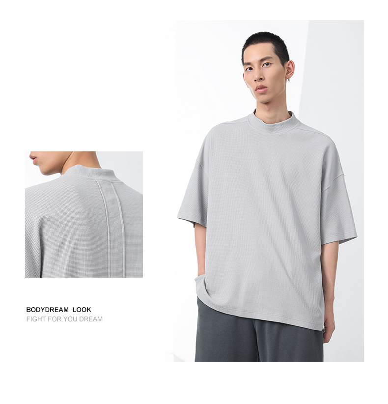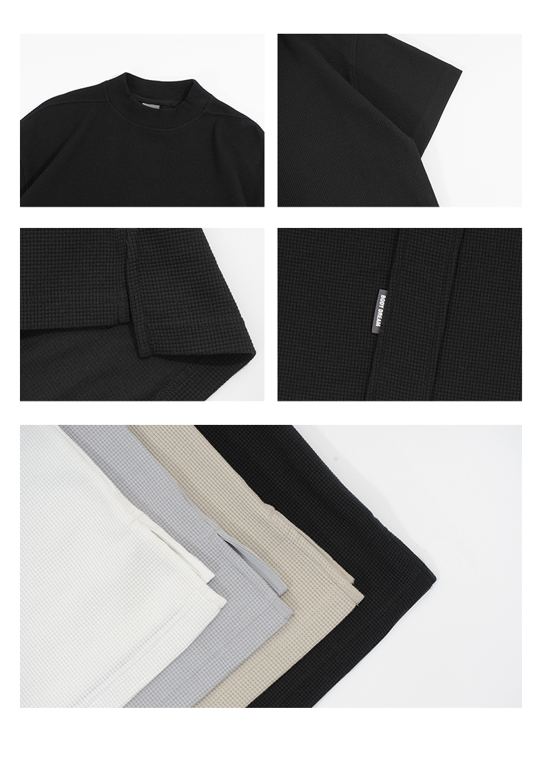 bodydream國潮重磅肌理感華夫格小高領短袖T恤男情侶美式休閒上衣