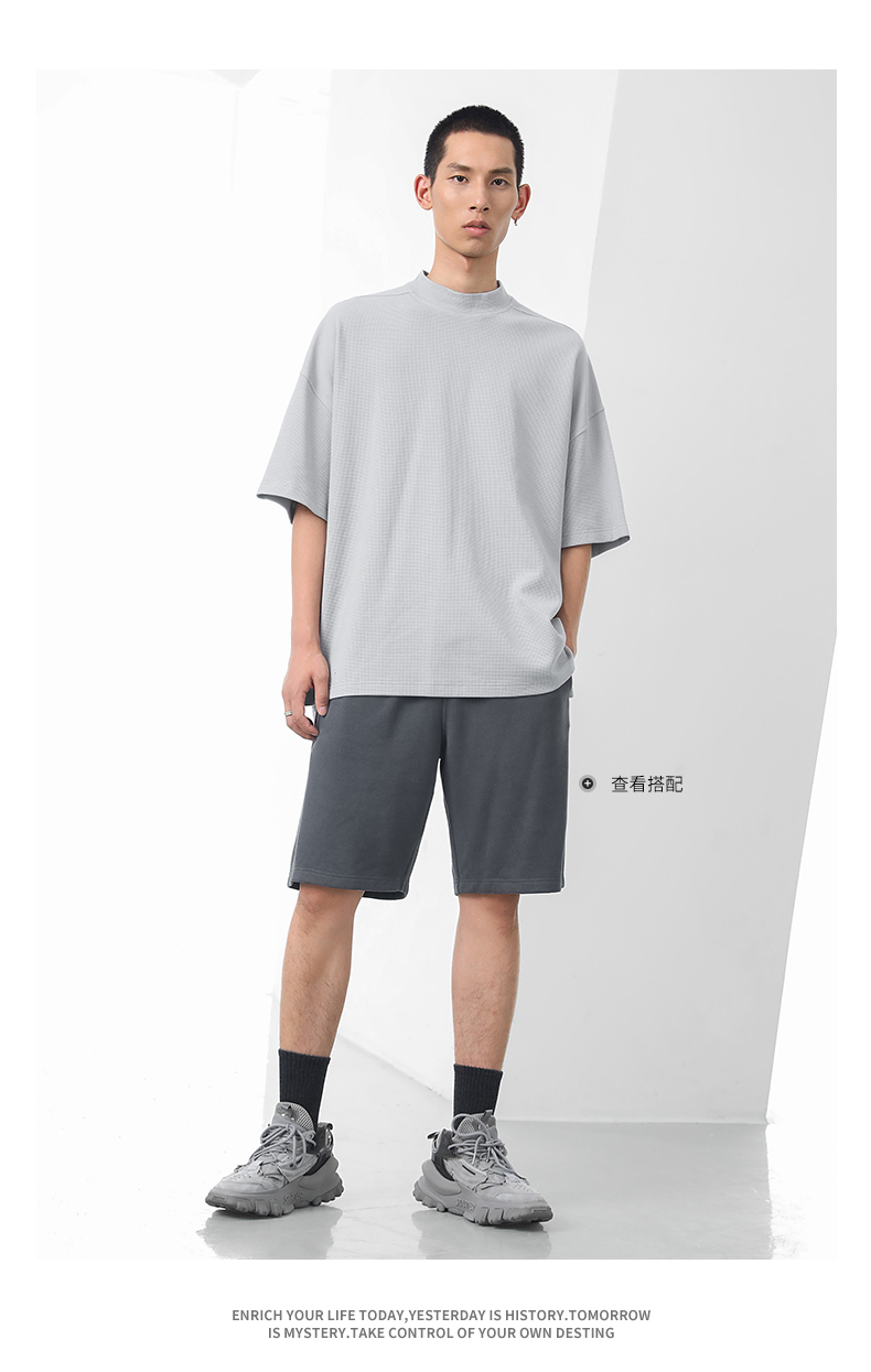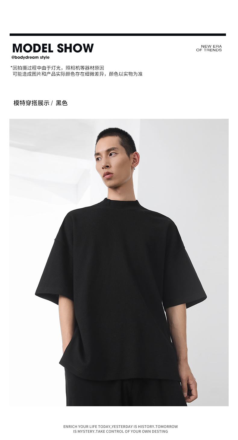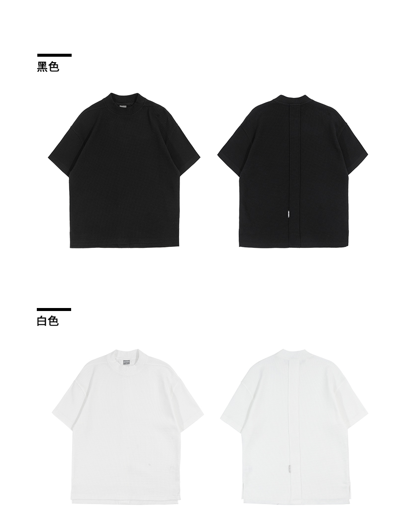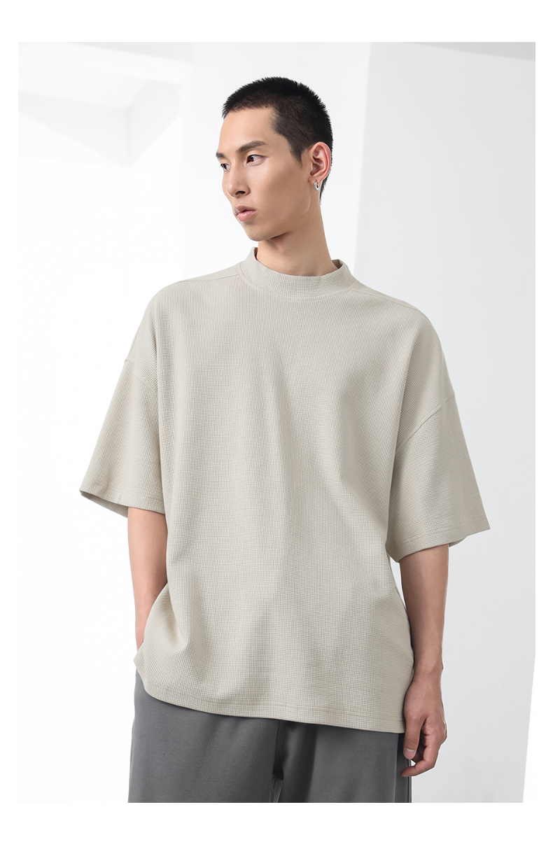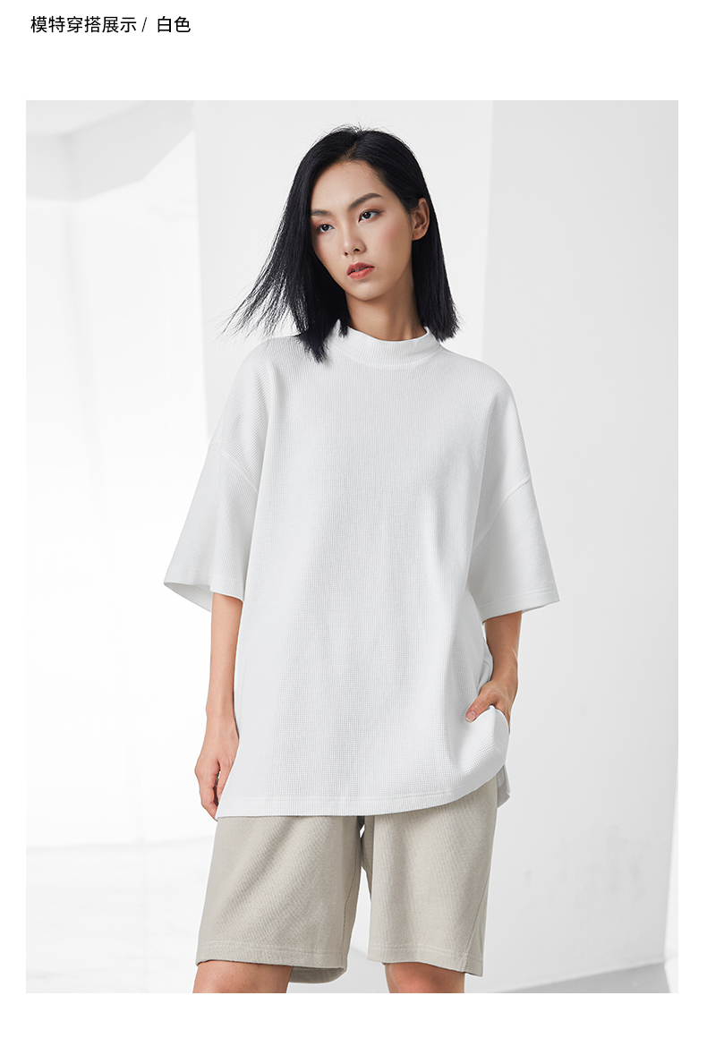 bodydream國潮重磅肌理感華夫格小高領短袖T恤男情侶美式休閒上衣
