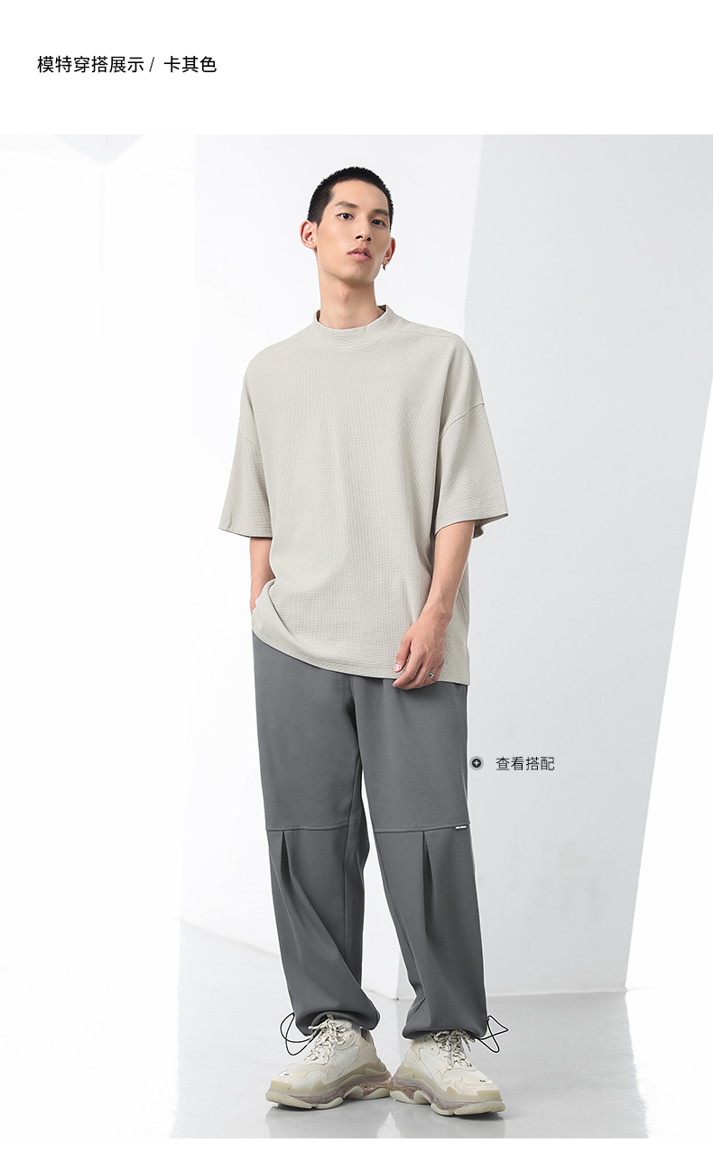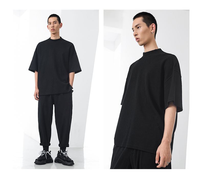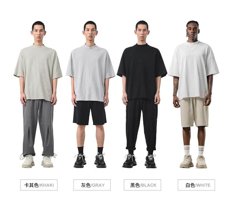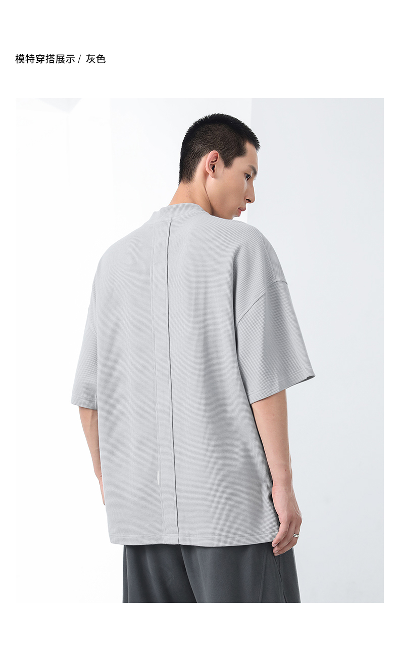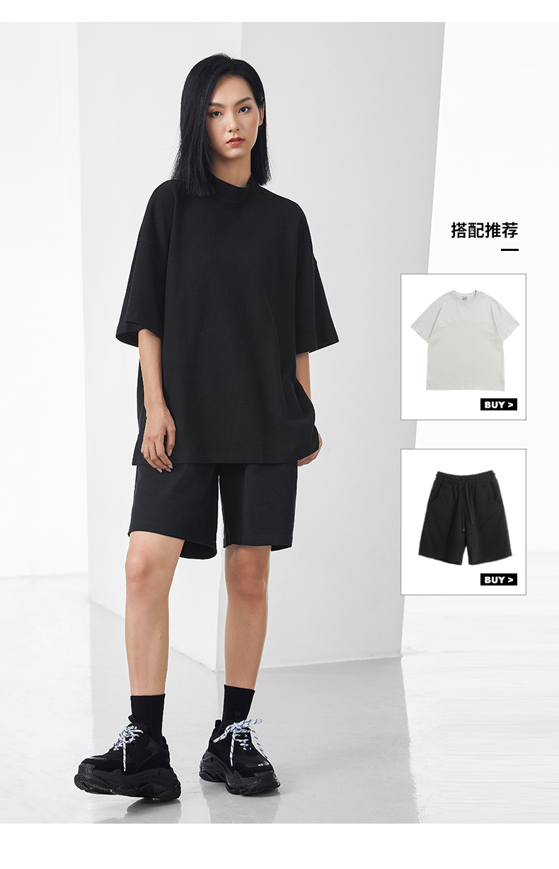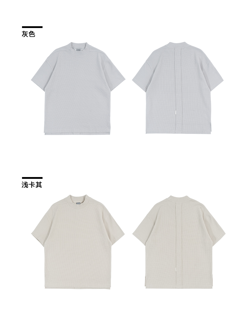 bodydream國潮重磅肌理感華夫格小高領短袖T恤男情侶美式休閒上衣