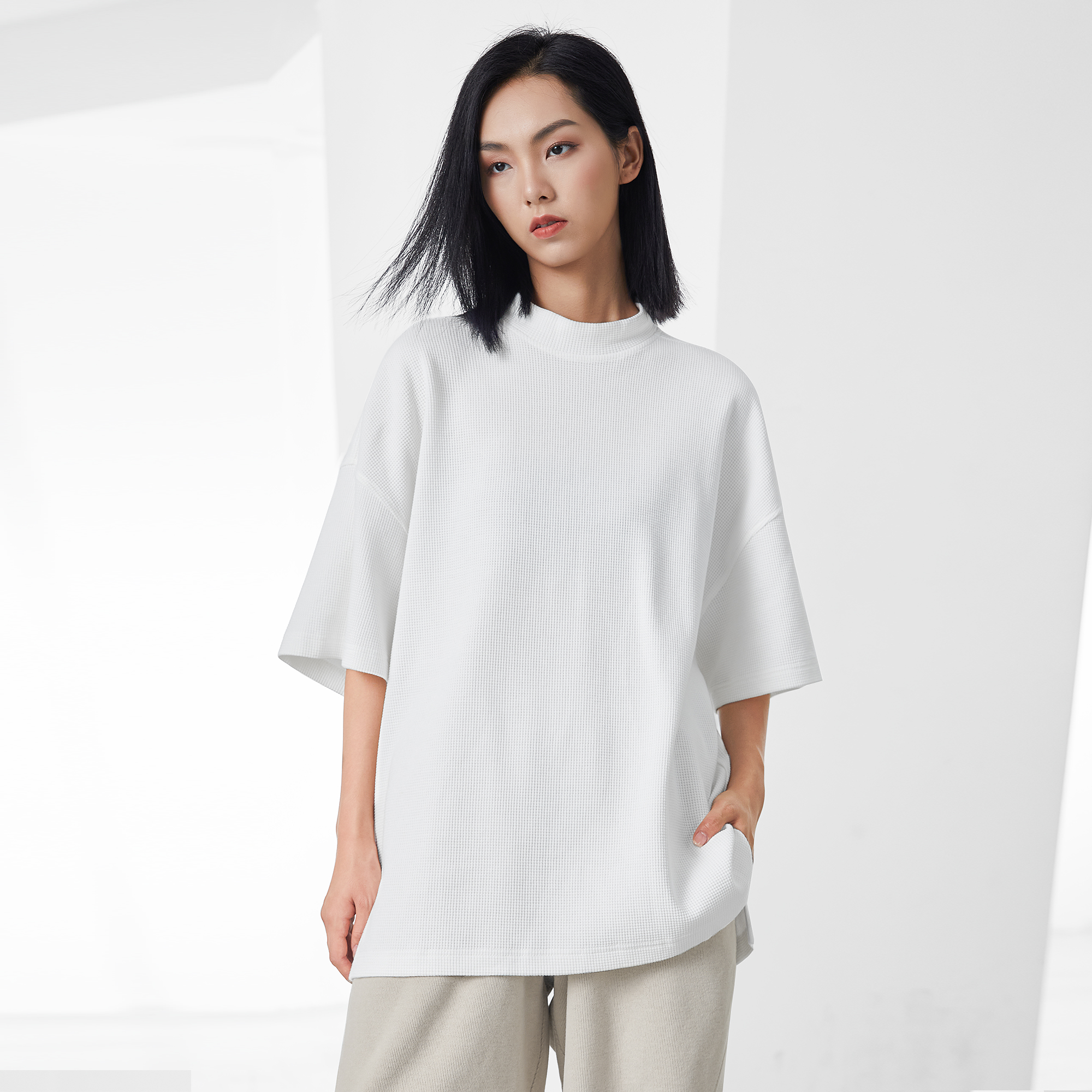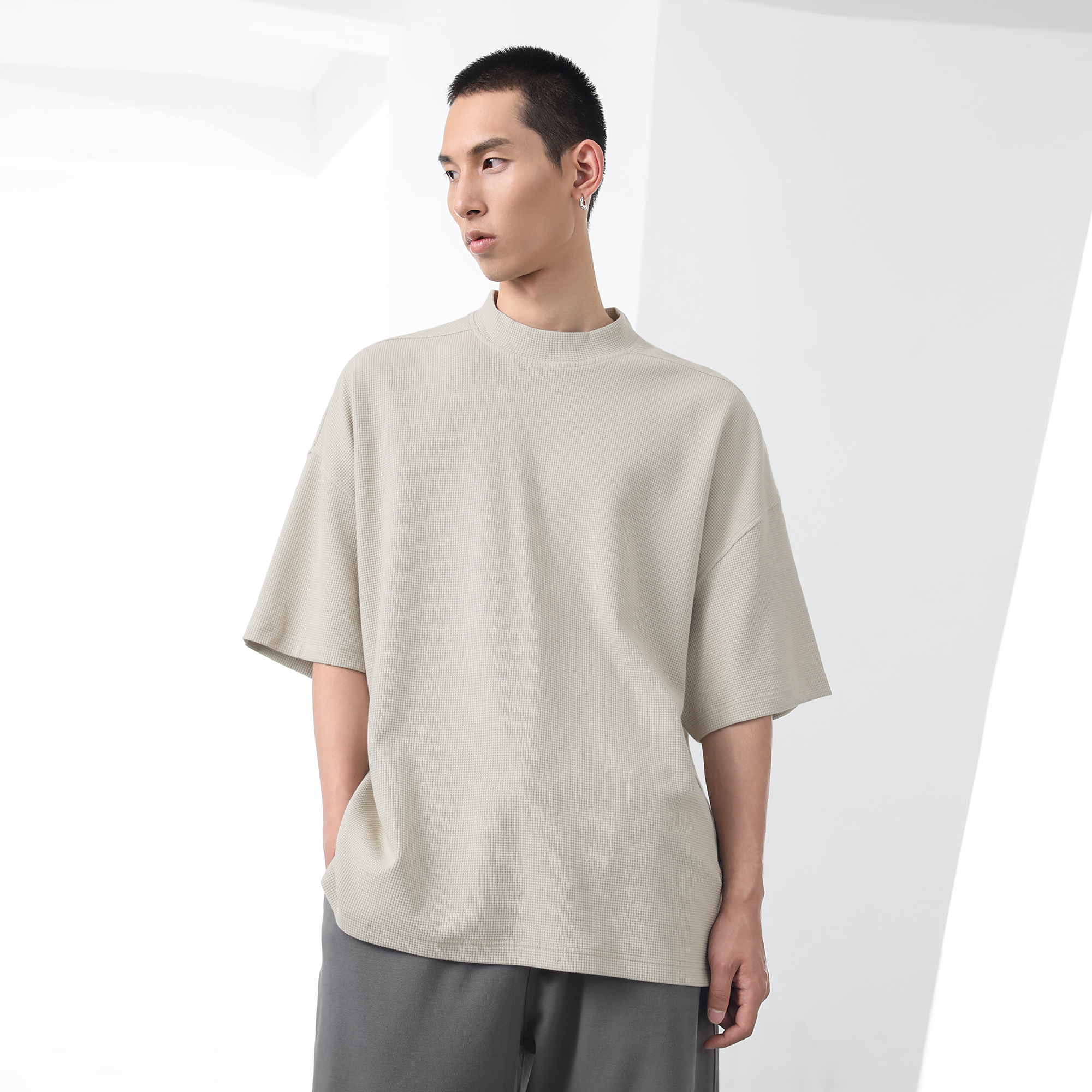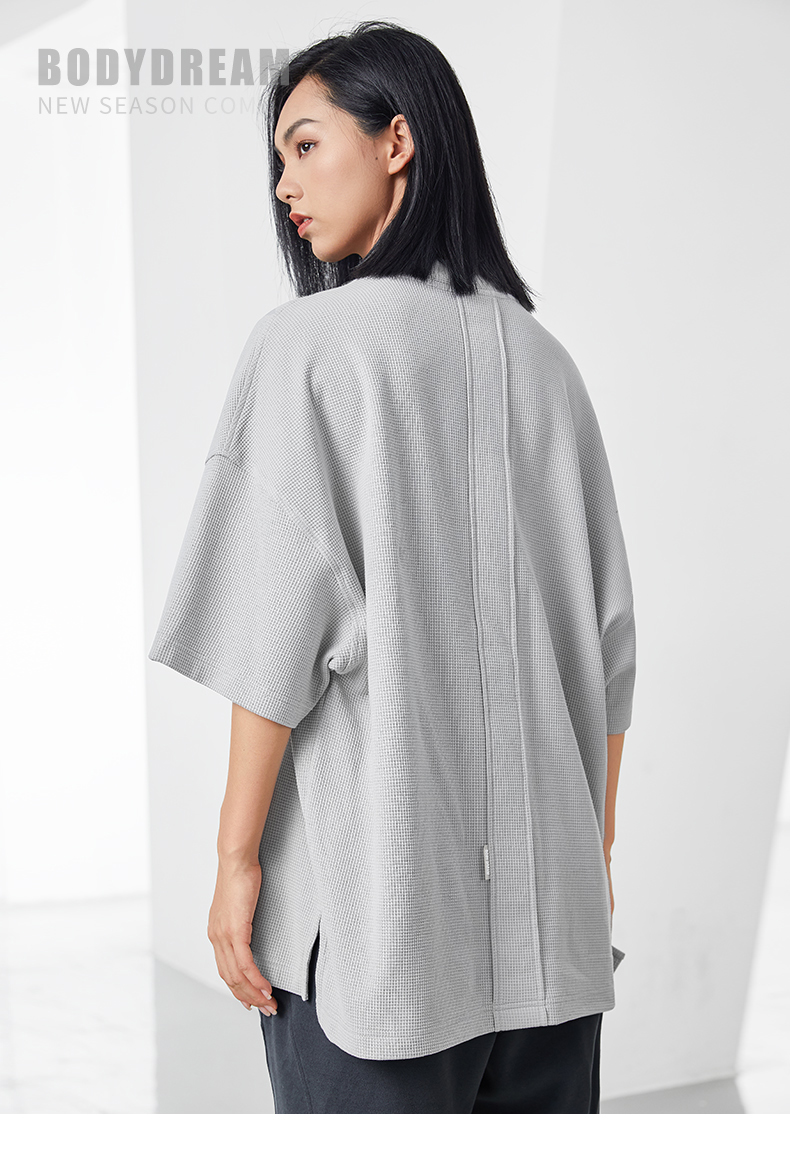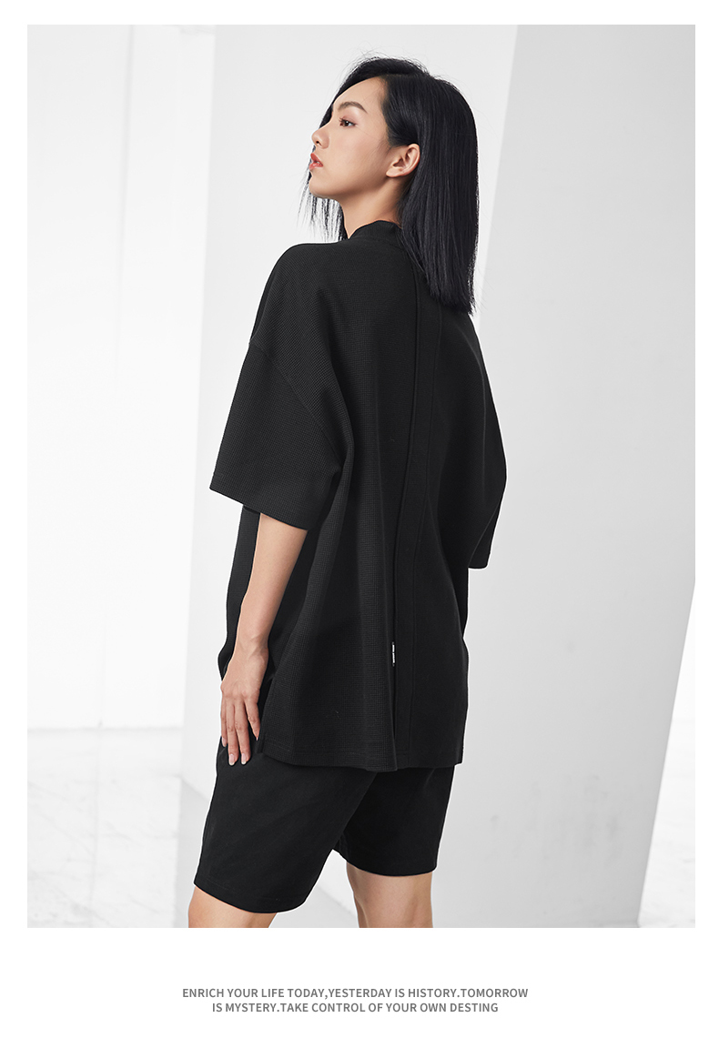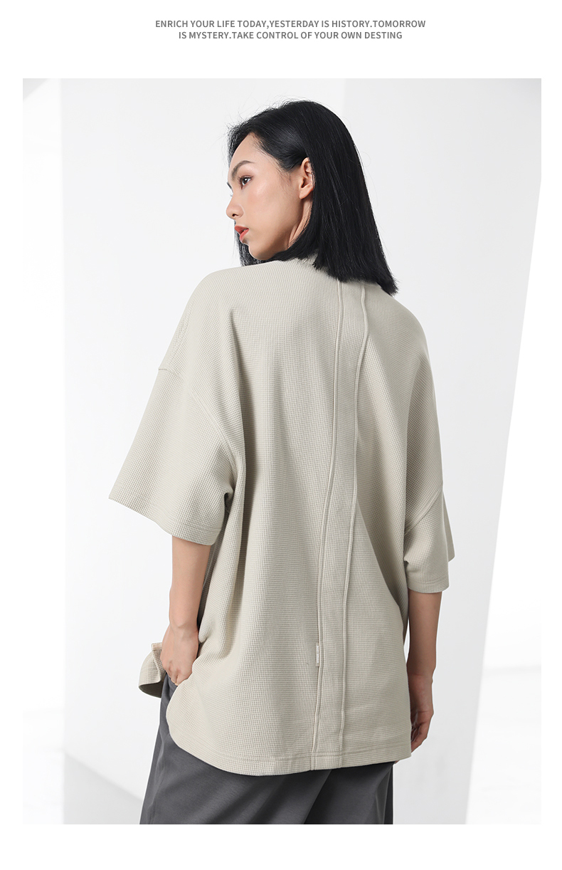 bodydream國潮重磅肌理感華夫格小高領短袖T恤男情侶美式休閒上衣