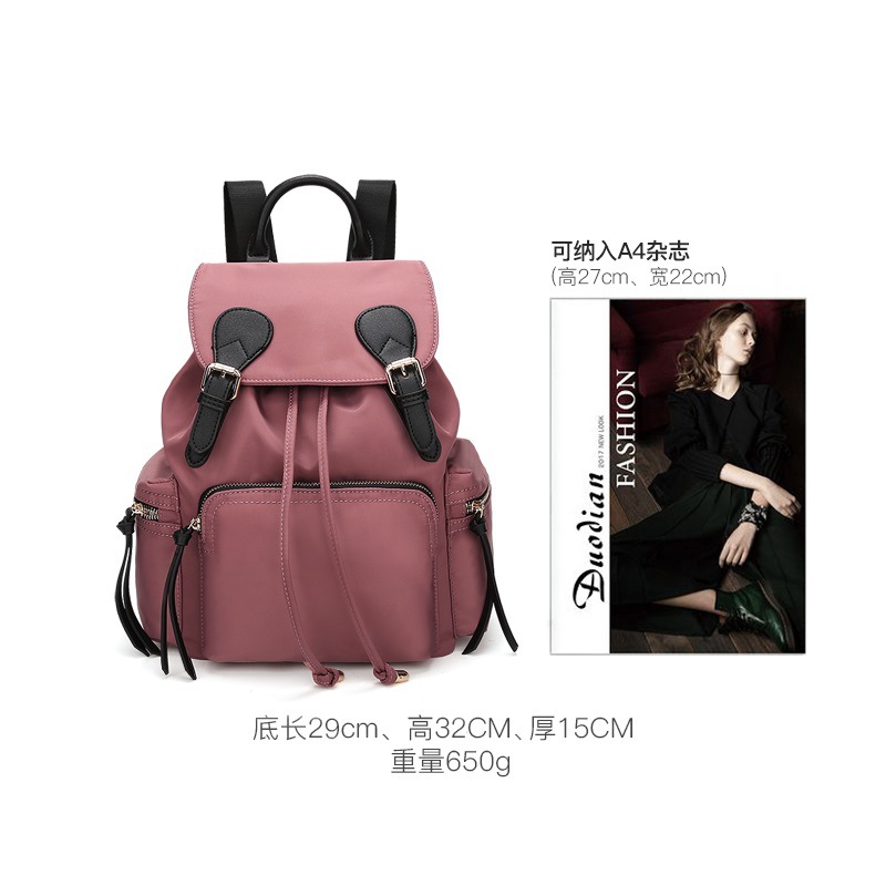 包包女2024新款双肩包女士牛津布抽绳旅行翻盖背包大容量学生书包