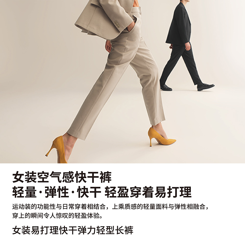 面料具有伸缩性,质地轻盈,有助于展现利落腿型,带来舒适的穿着感受。商务休闲两相宜。