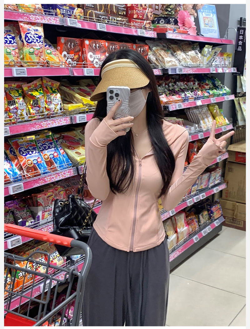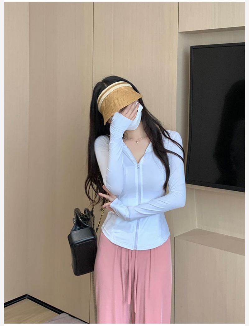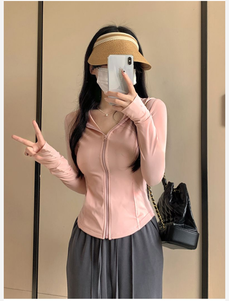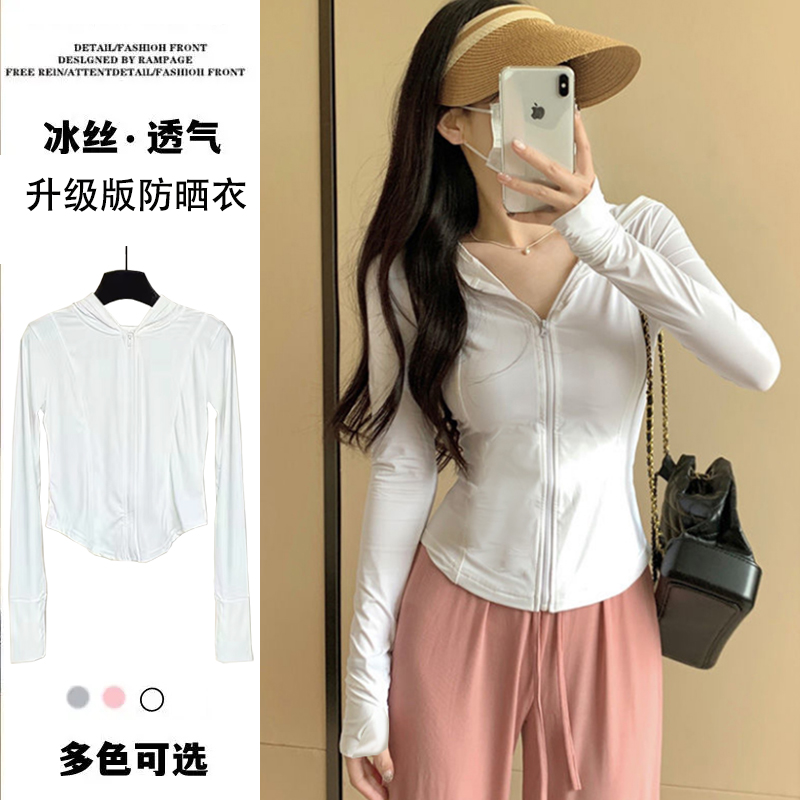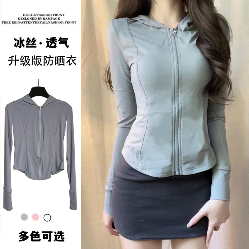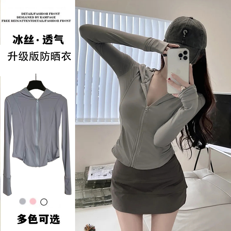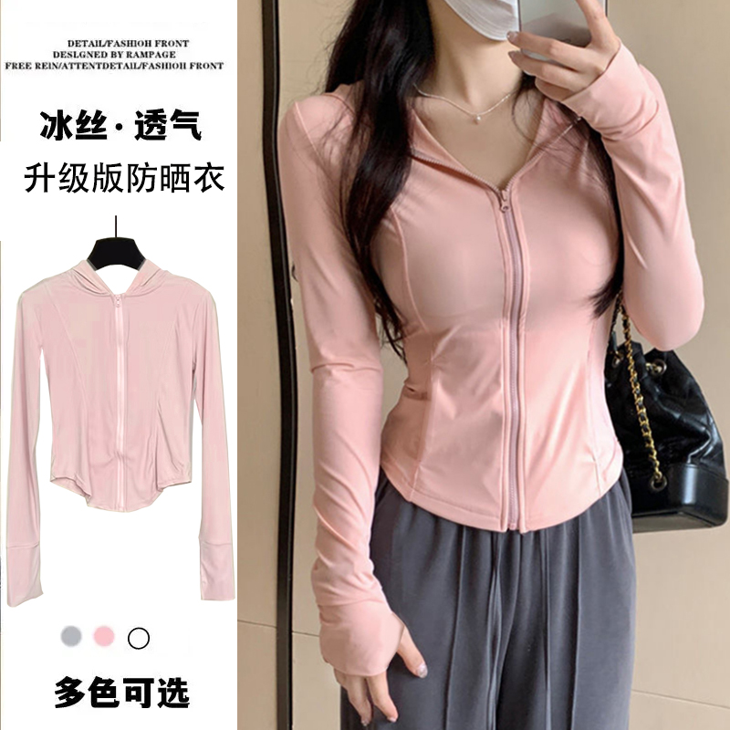 粉色冰絲防曬衣女款夏季修身運動瑜伽服外套緊身上衣女夏新款同款