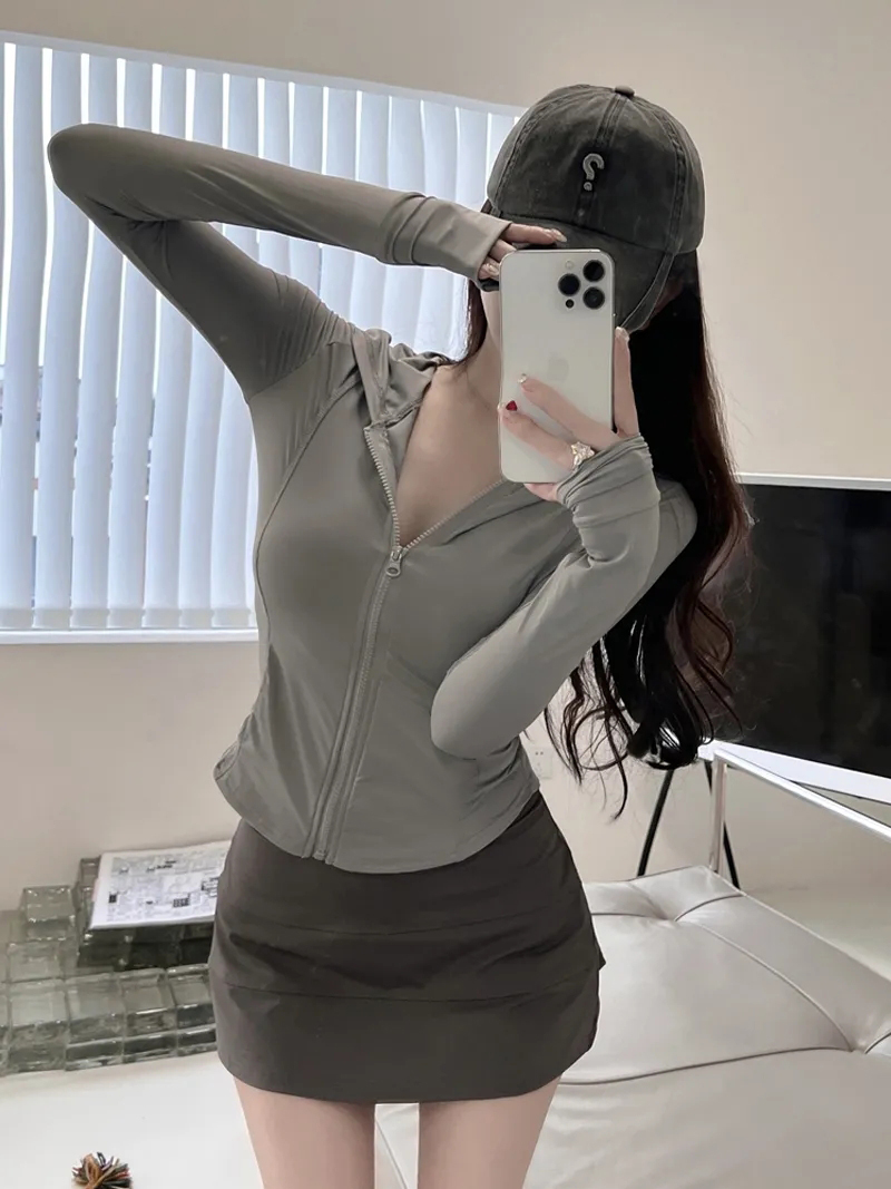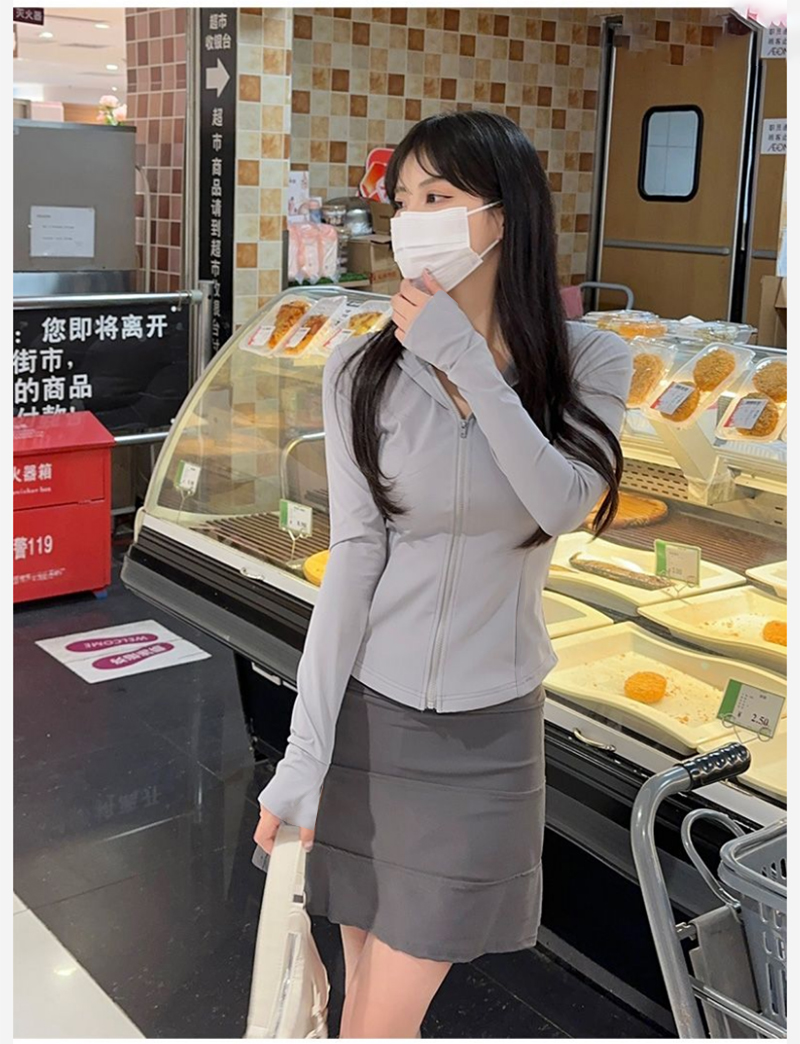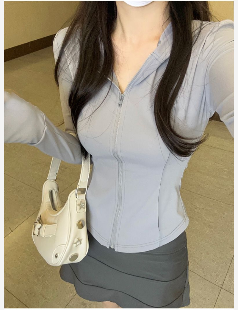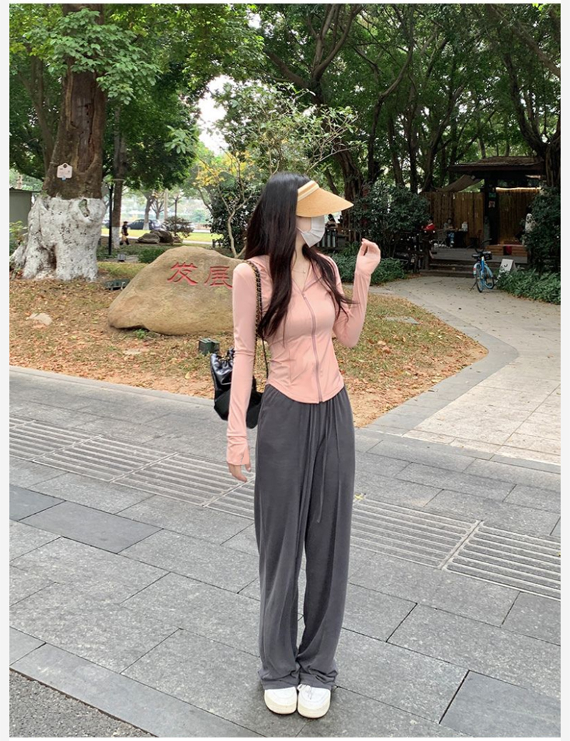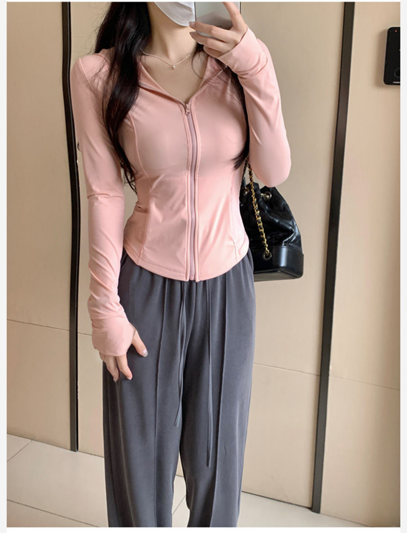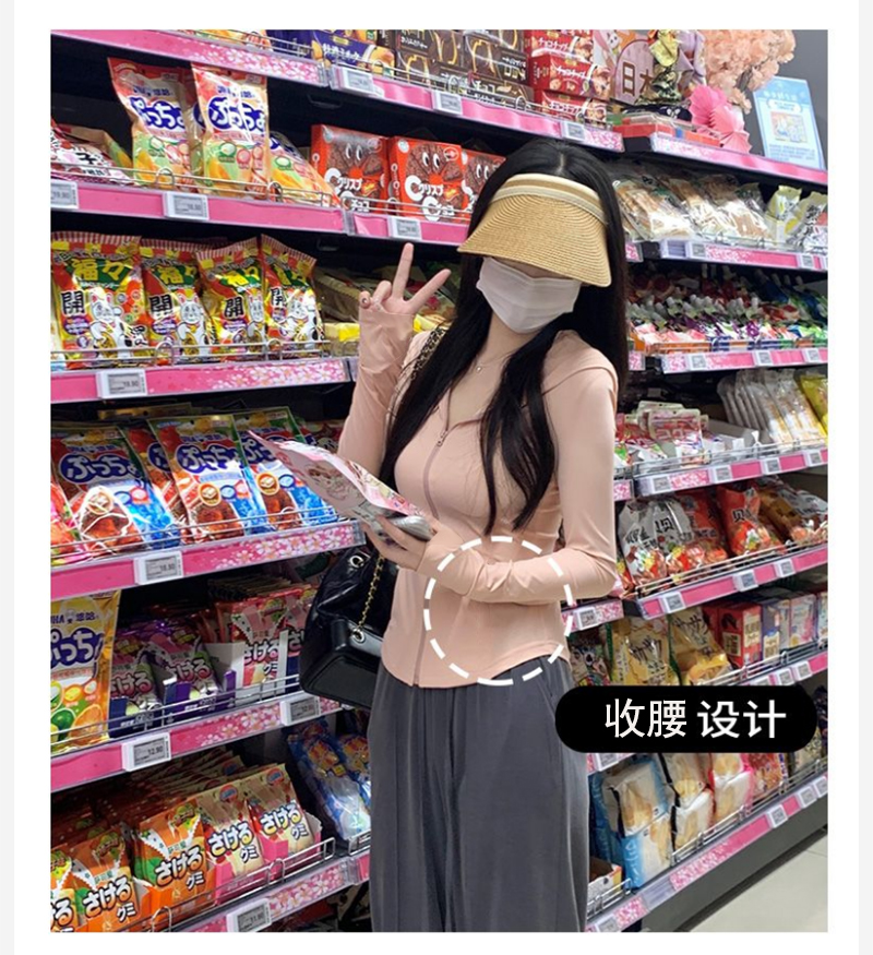 粉色冰絲防曬衣女款夏季修身運動瑜伽服外套緊身上衣女夏新款同款