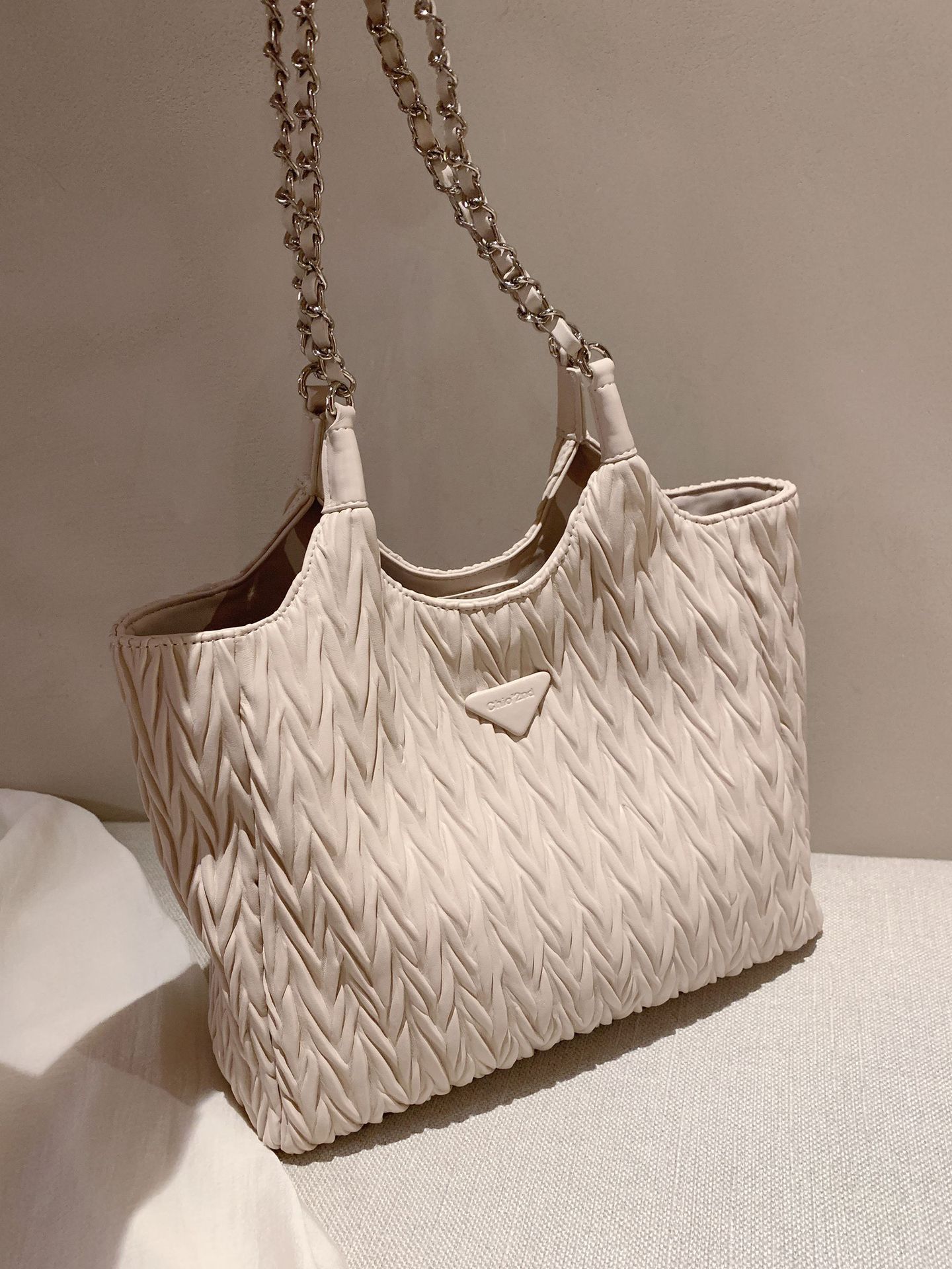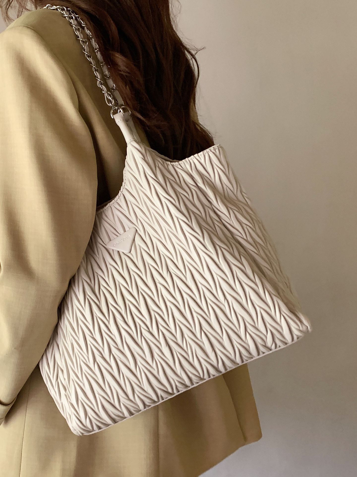 南风Chio2nd 月下山泉柳叶褶托特包女2023新款通勤大包包女单肩包
