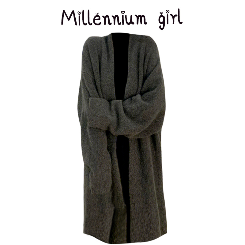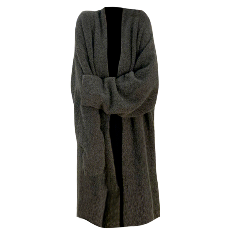 清倉秒殺~品牌折扣專櫃撤回女溫柔慵懶風中長版灰色毛衣加厚外套