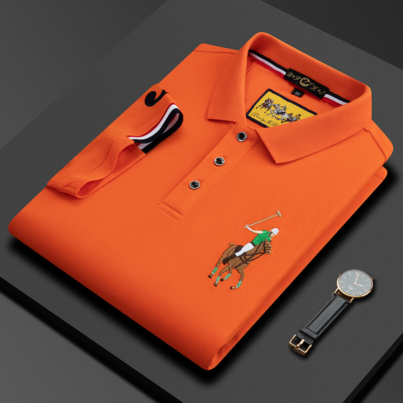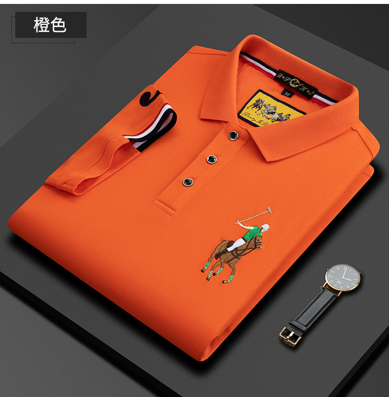 City 拉夫·勞倫馬球2023夏季短袖T恤男翻領高端刺繡橙色POLO衫旗艦店正品牌