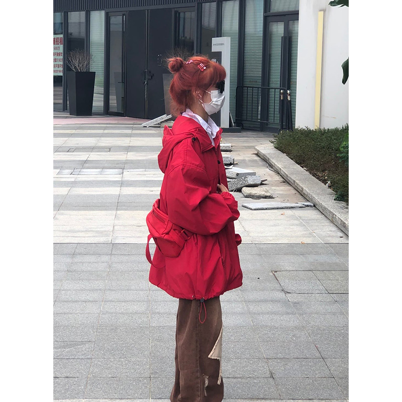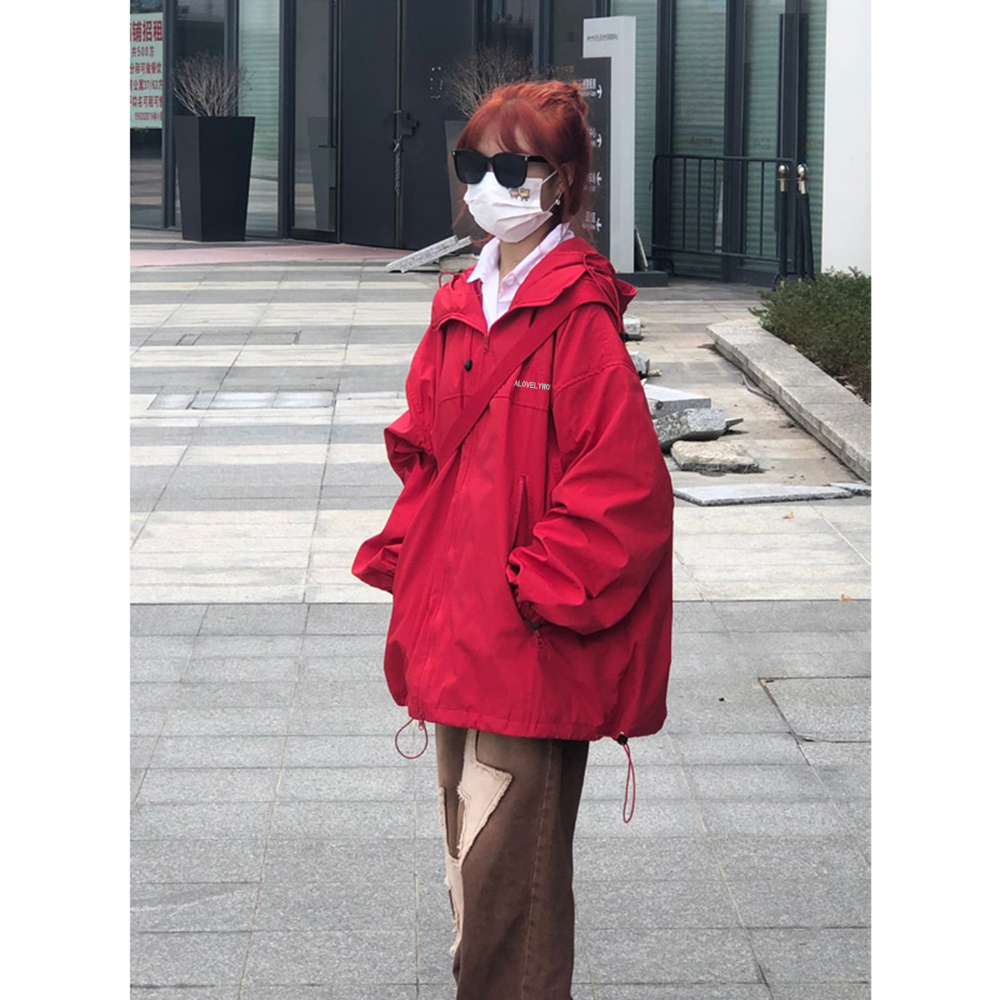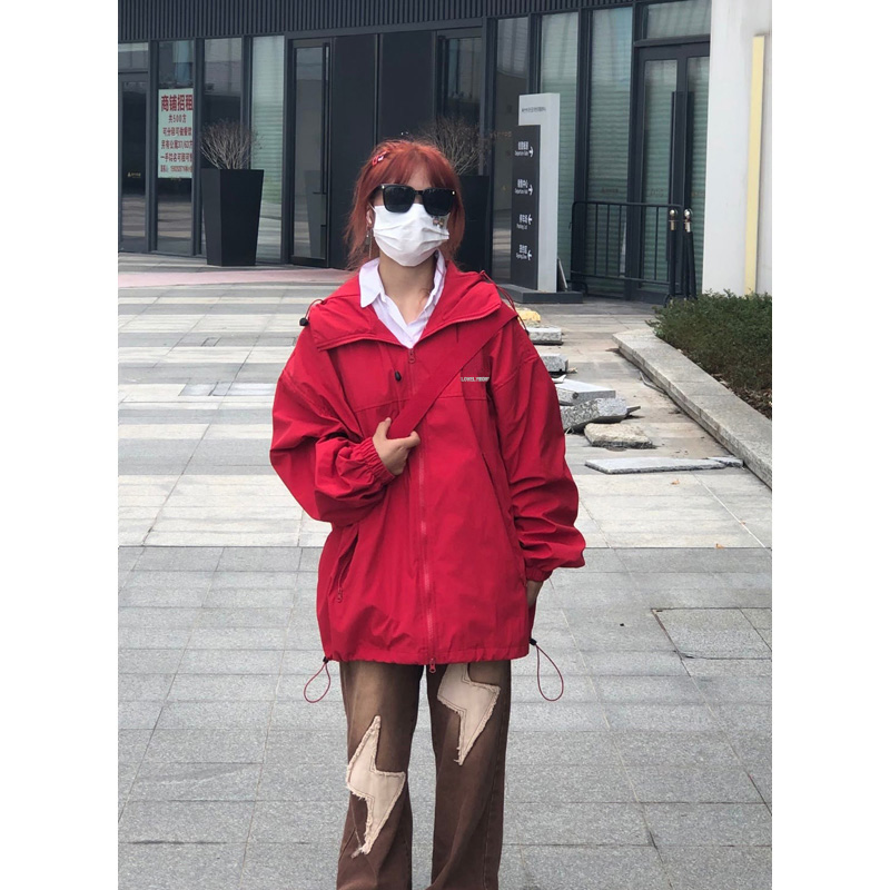 美式vintage衝鋒衣外套女春秋季小眾機能風衣高街ins潮牌工裝夾克