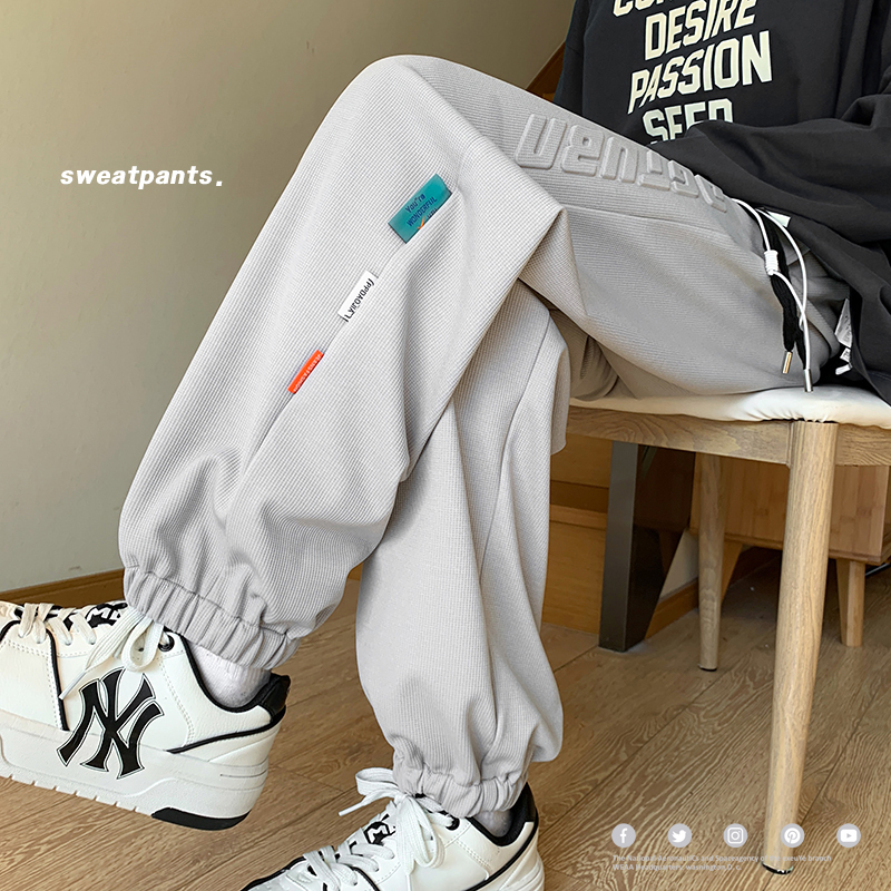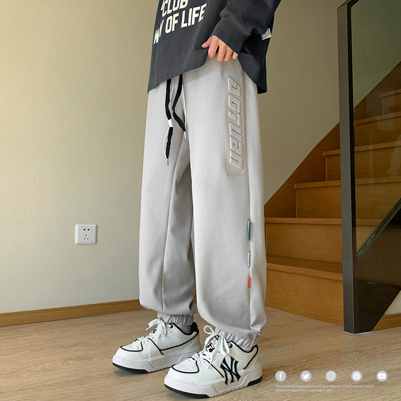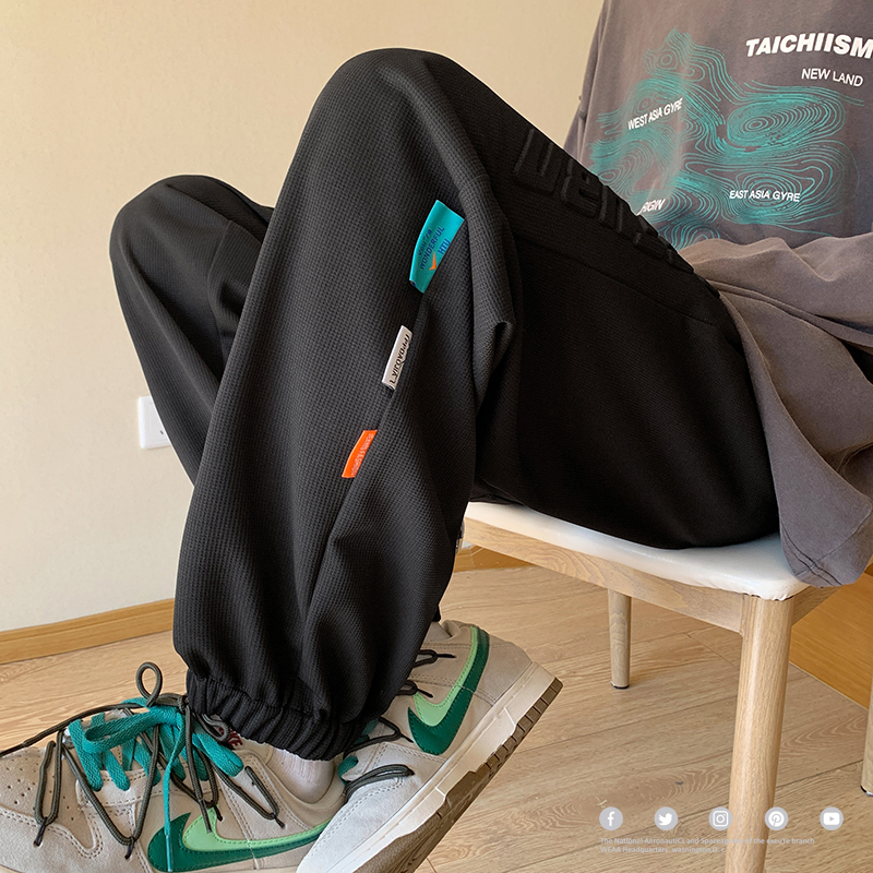 NASA冰絲褲男款夏季薄款潮流青少年學生衛褲寬鬆大尺碼休閒運動褲子