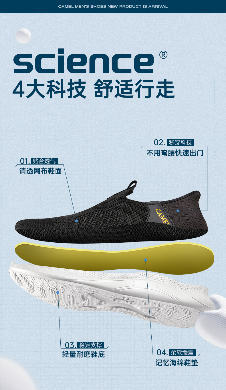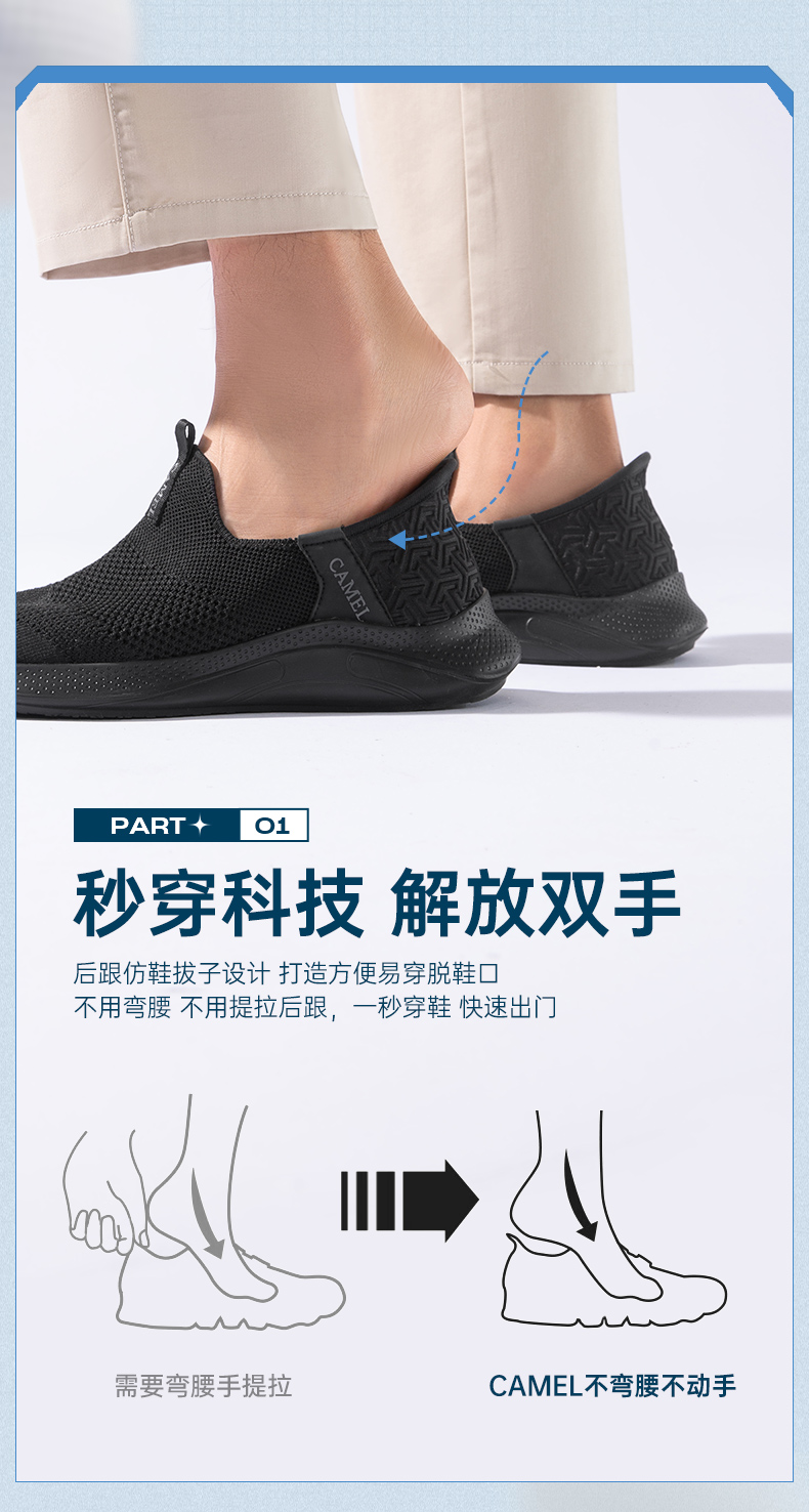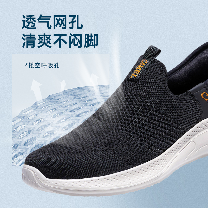 駱駝一腳蹬男鞋夏季透氣薄款休閒懶人運動鞋情侶健步鞋爸爸網鞋男