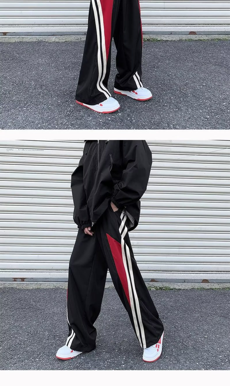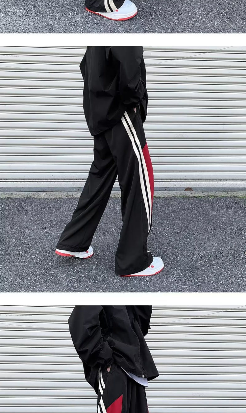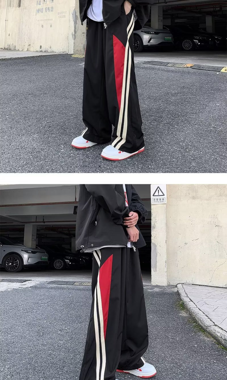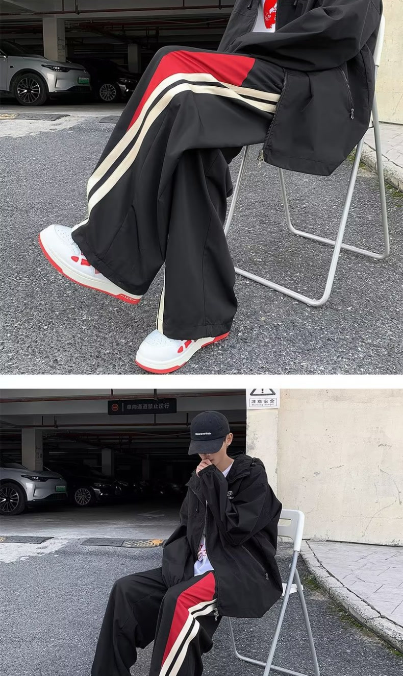 黑紅拼色設計感褲子男款春秋潮牌痞帥炸街闊腿褲高個子加長休閒褲