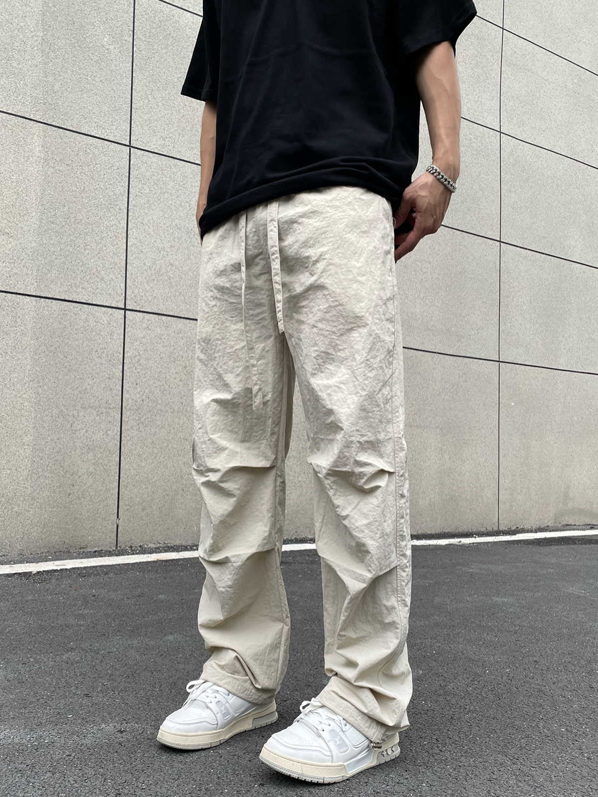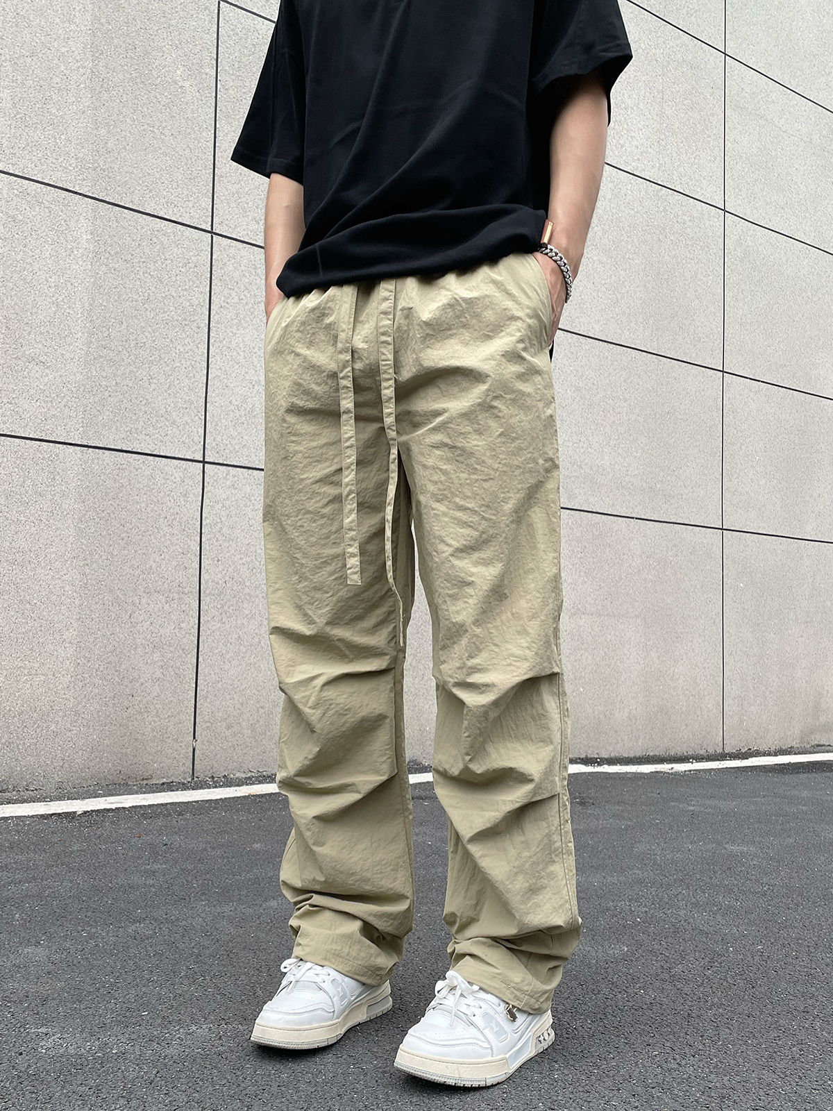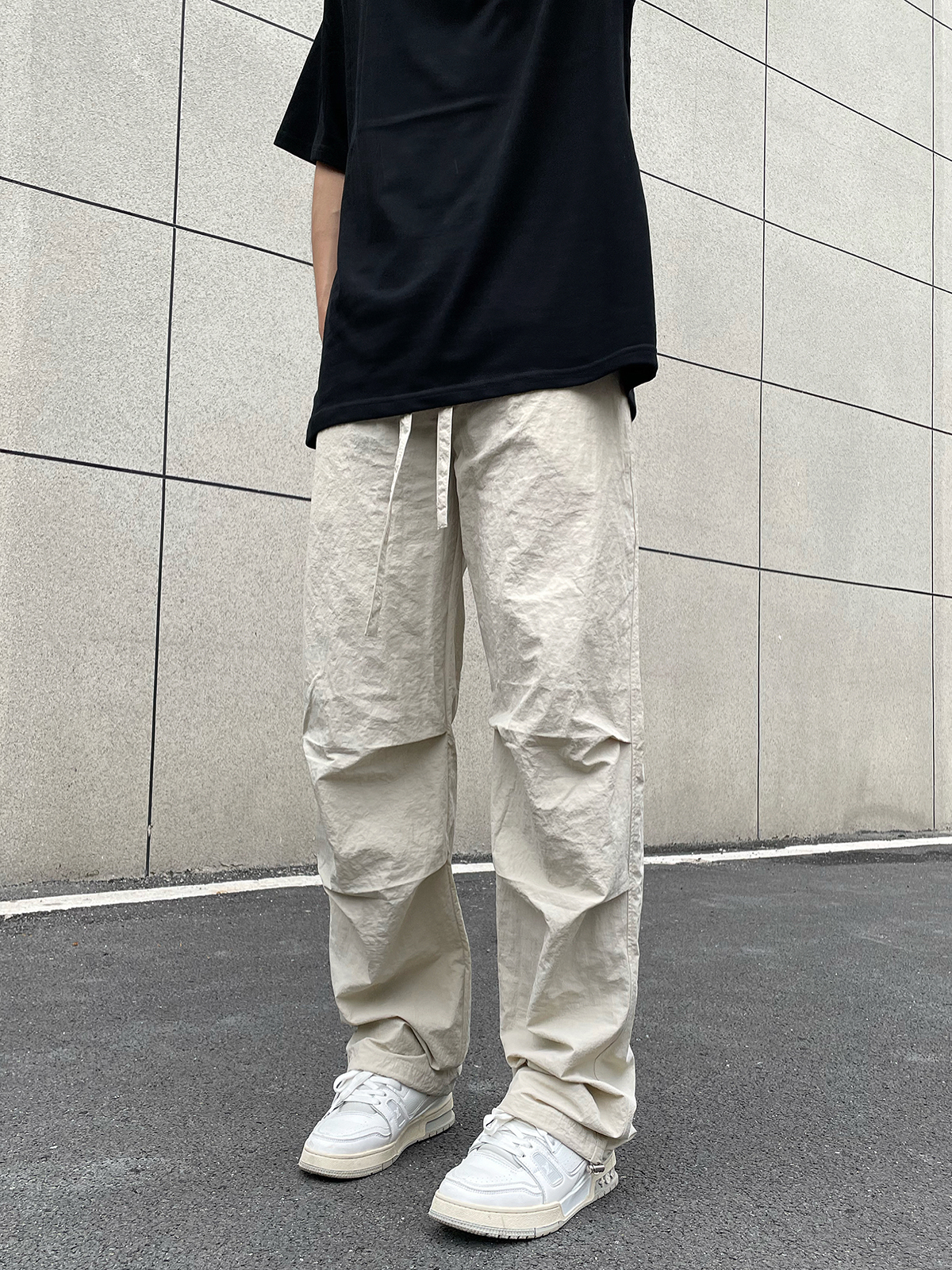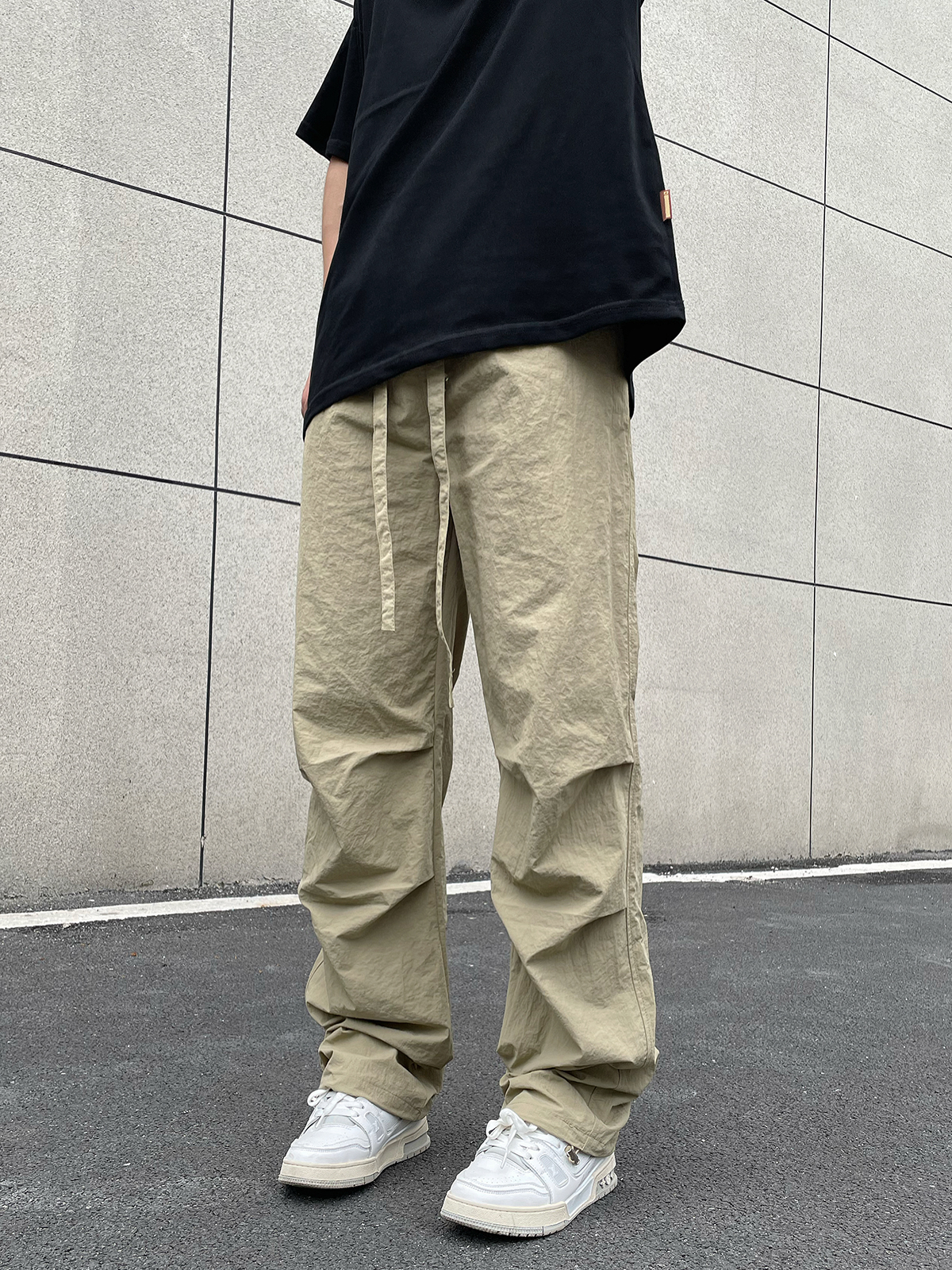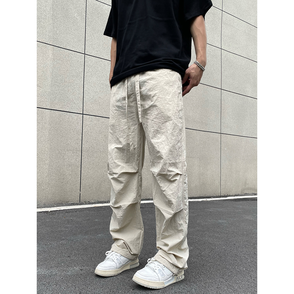 SKYTAG美式日系純色降落傘兵褲夏季速乾男女寬鬆直筒休閒工作服長褲