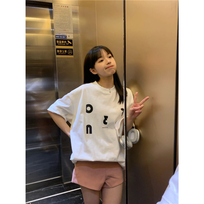 100%純棉美式復古港味chic短袖t恤女夏季慵懶風設計感小個子上衣