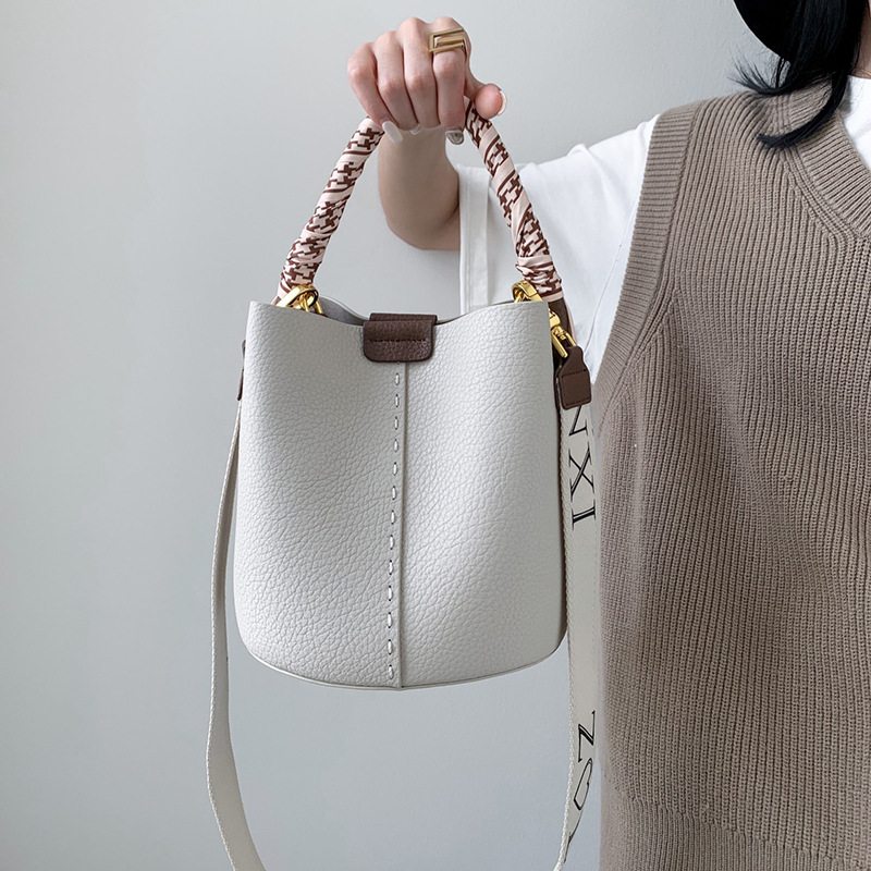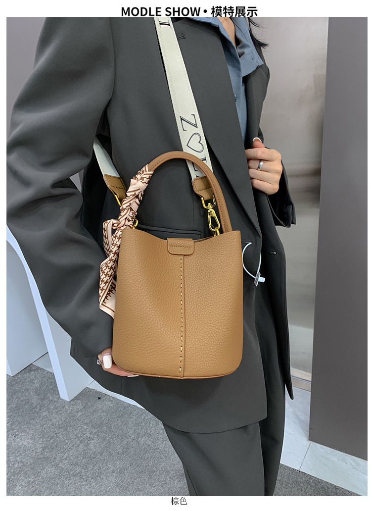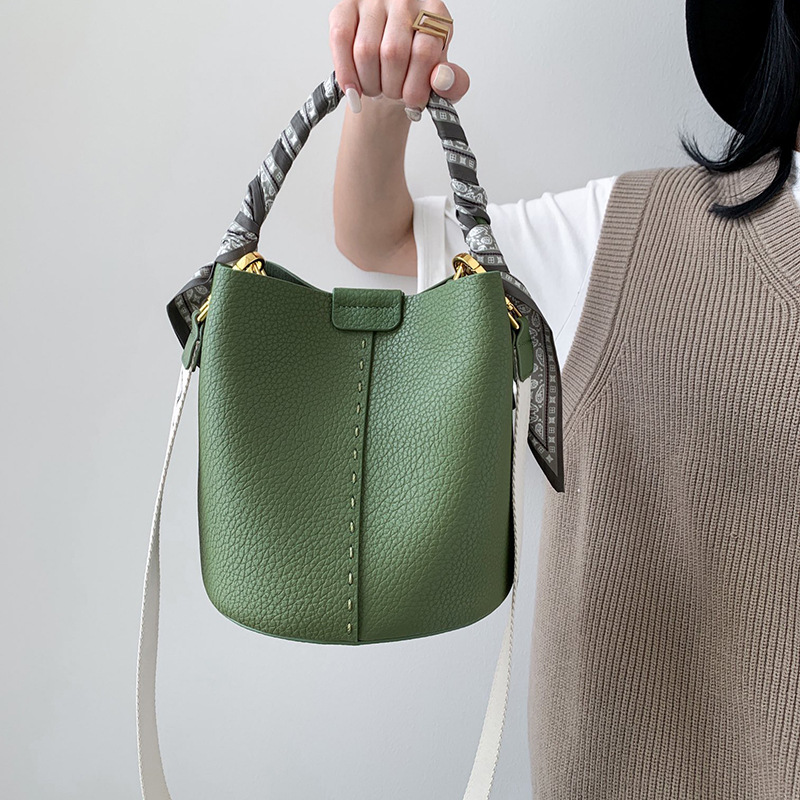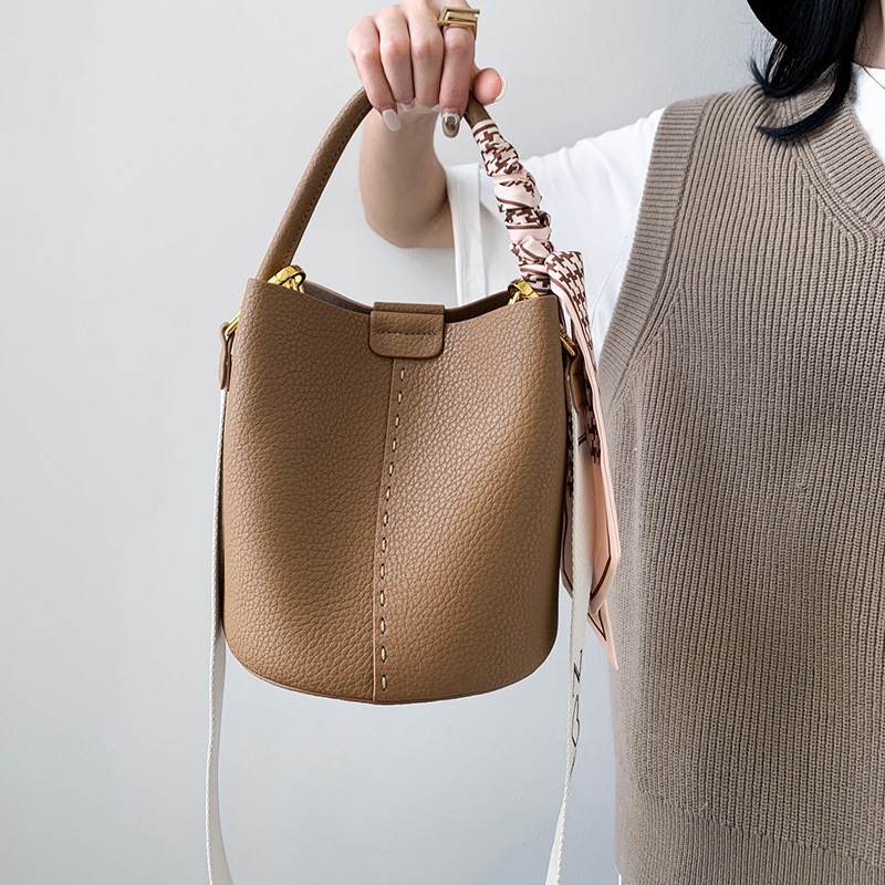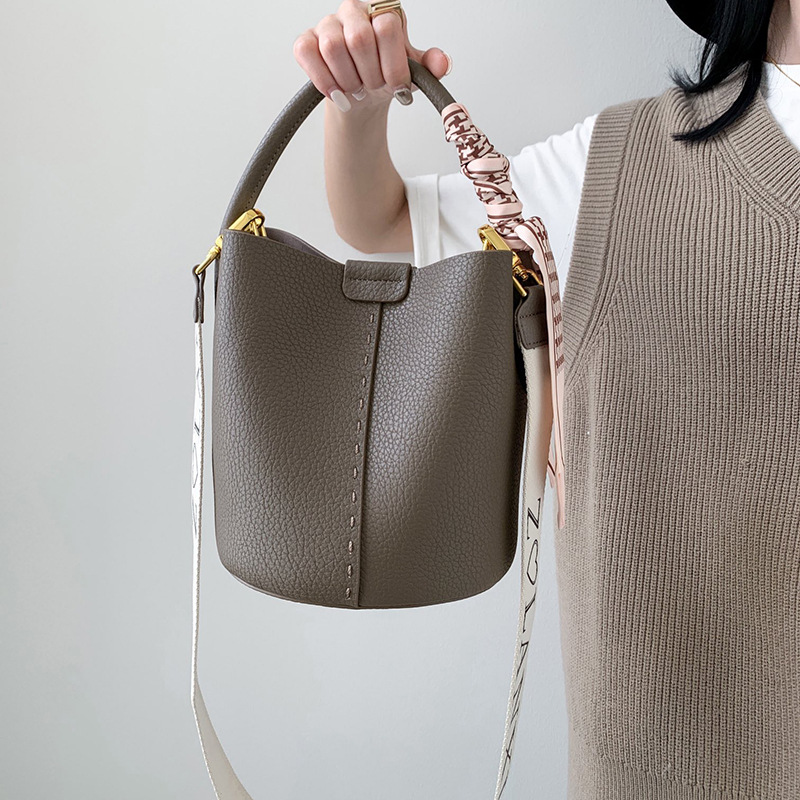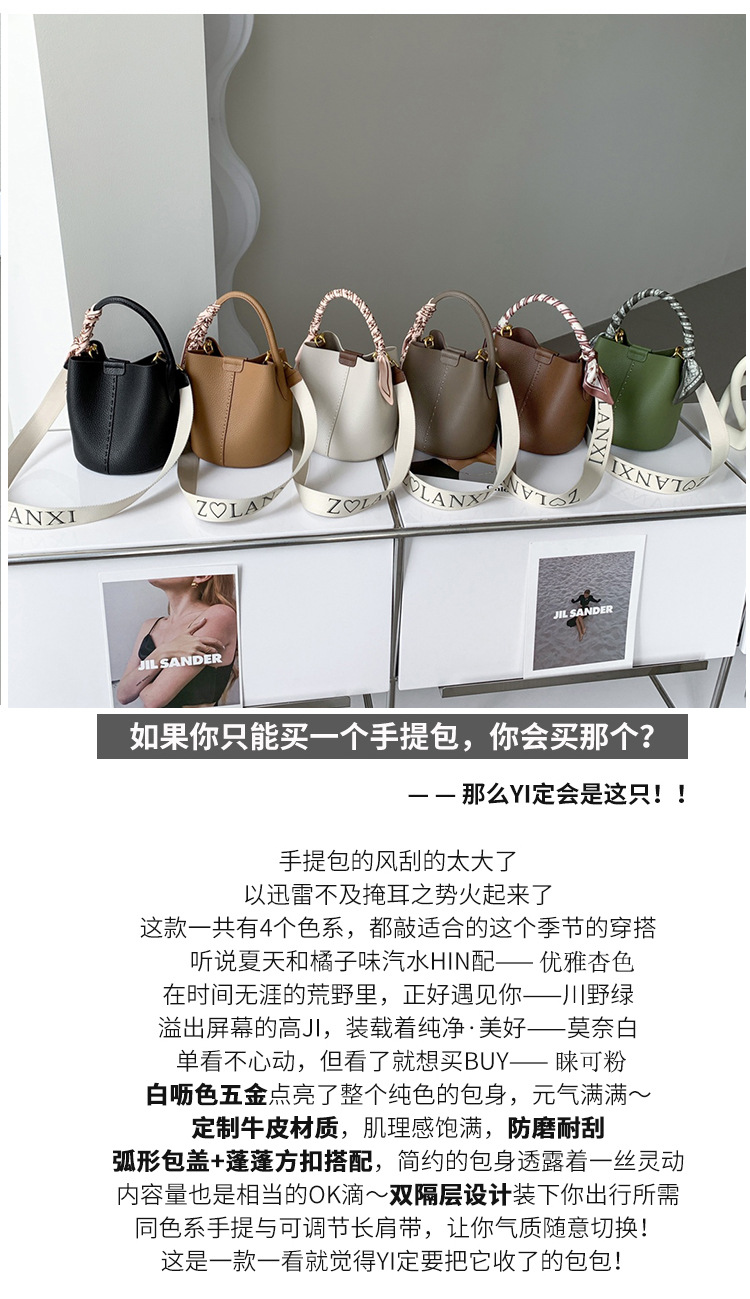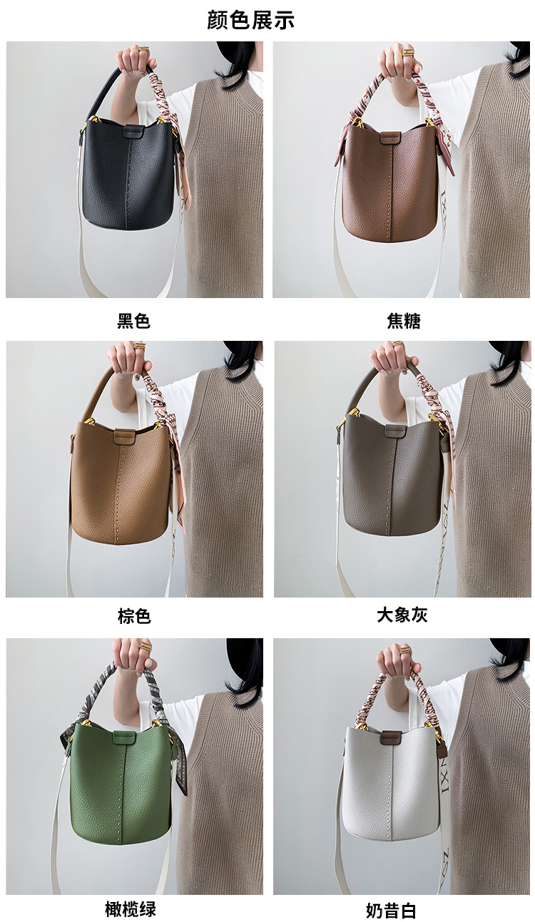 宽肩带牛皮手提水桶包真皮女包大容量斜挎包女休闲通勤腋下单肩包