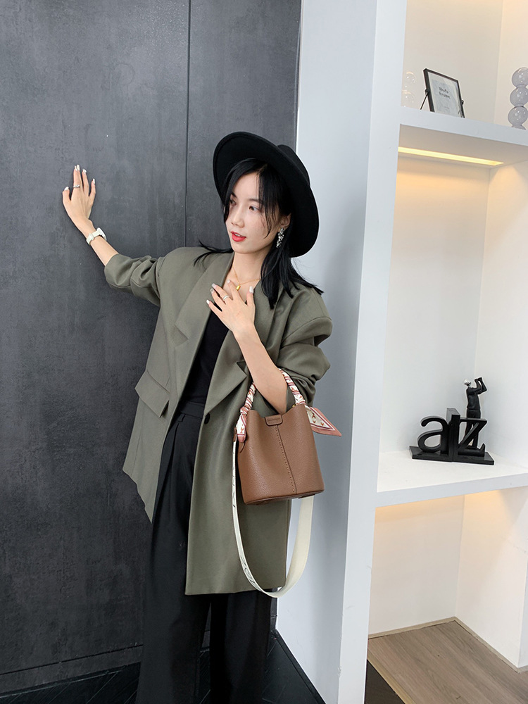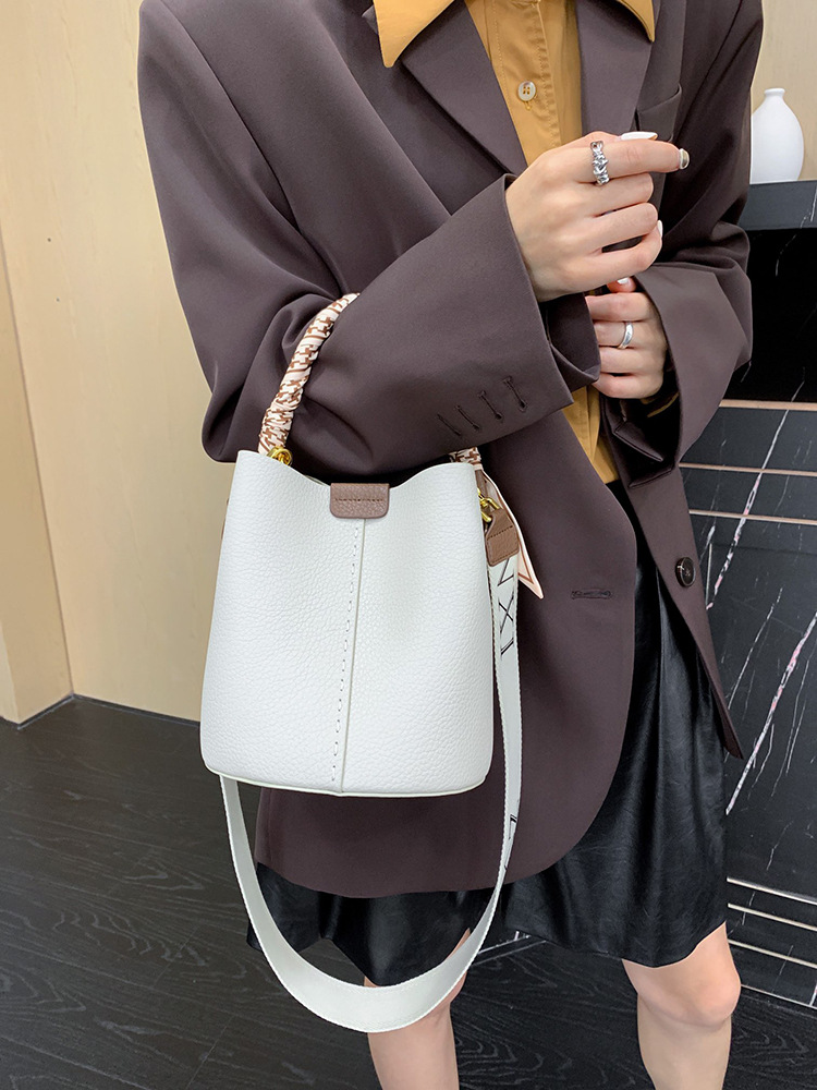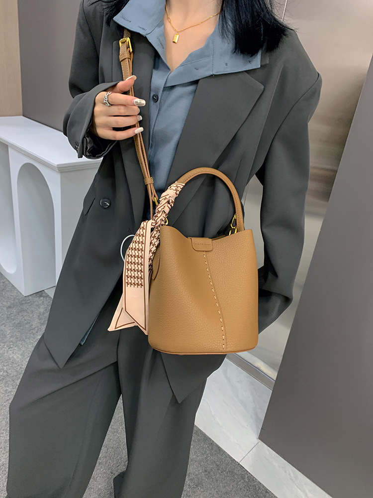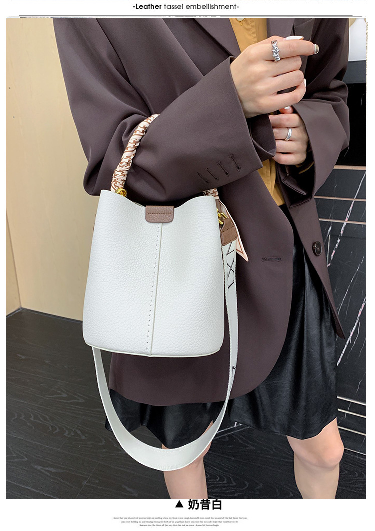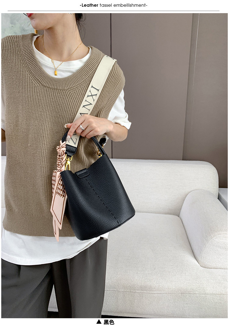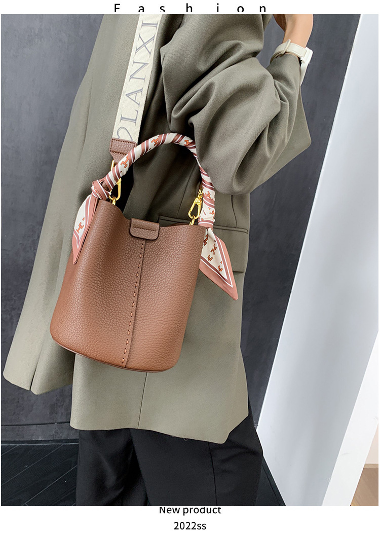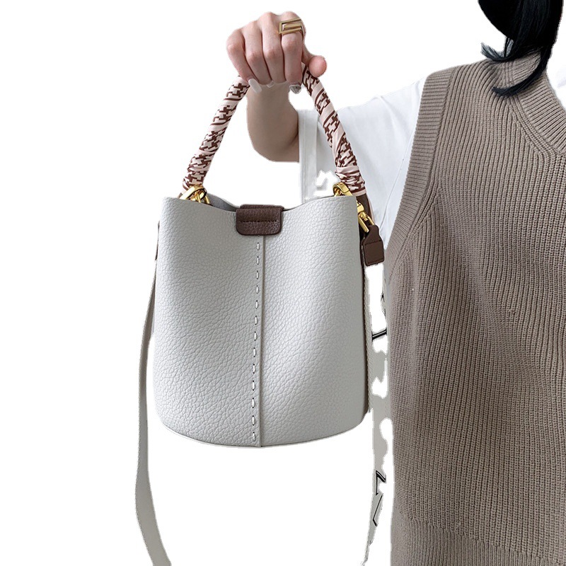 宽肩带牛皮手提水桶包真皮女包大容量斜挎包女休闲通勤腋下单肩包