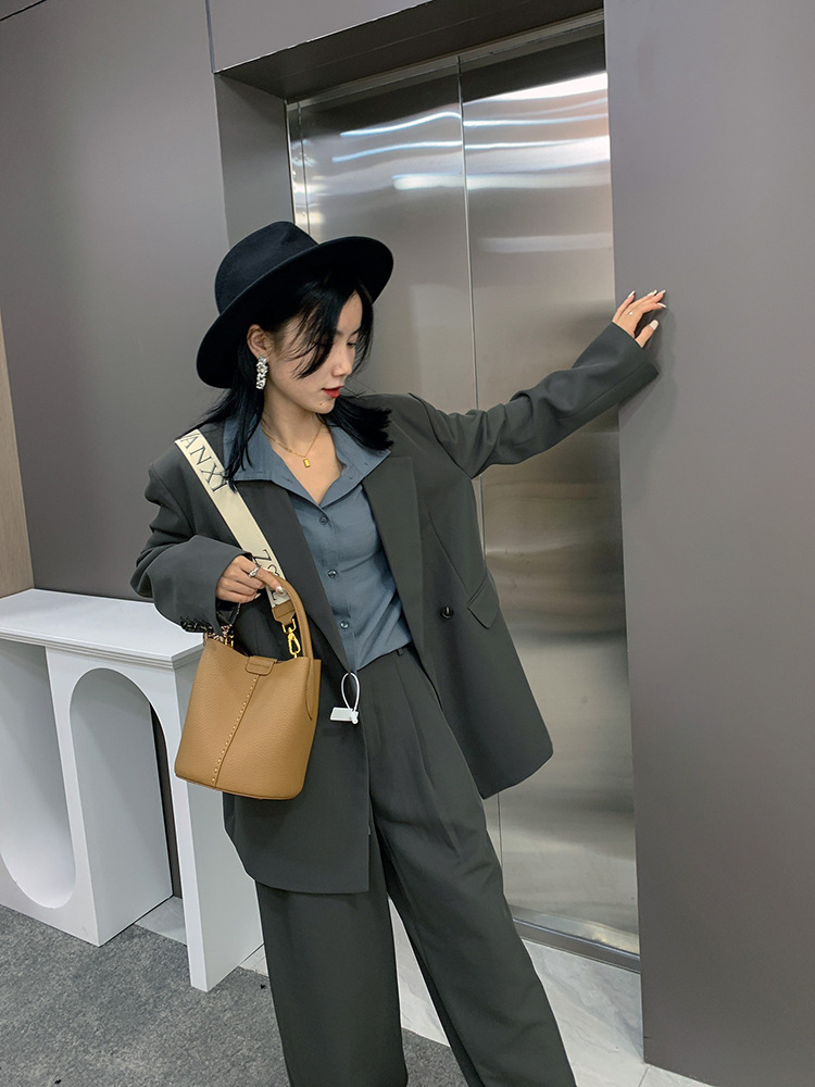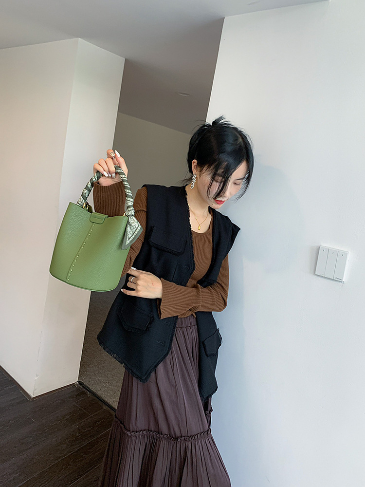 2022新款真皮女包水桶包通勤手提包小众设计感托特包单肩斜挎包女超值价:¥140