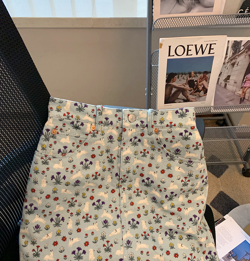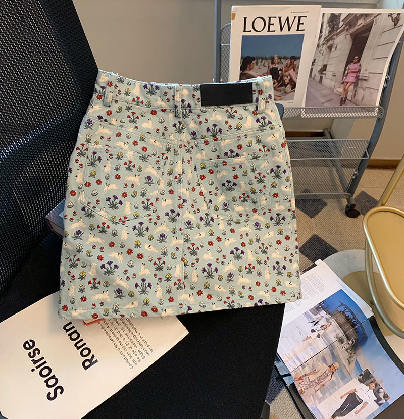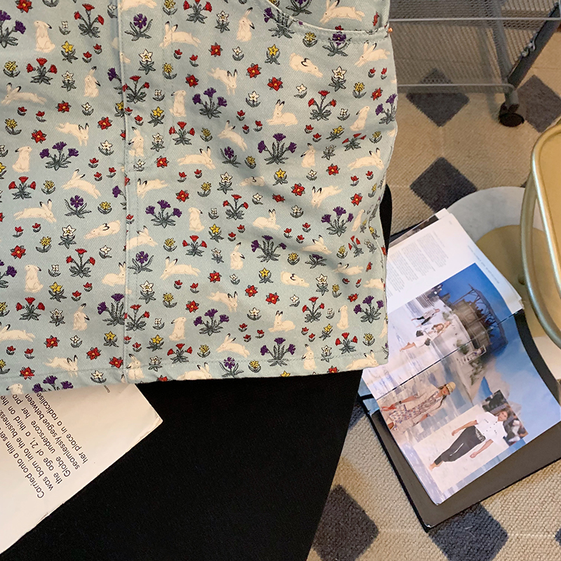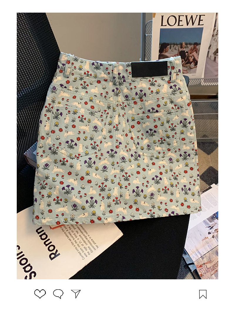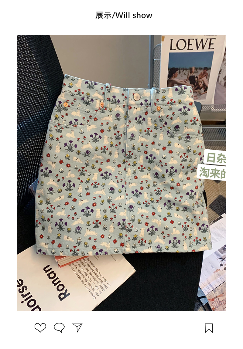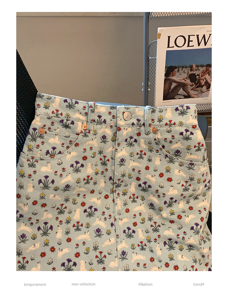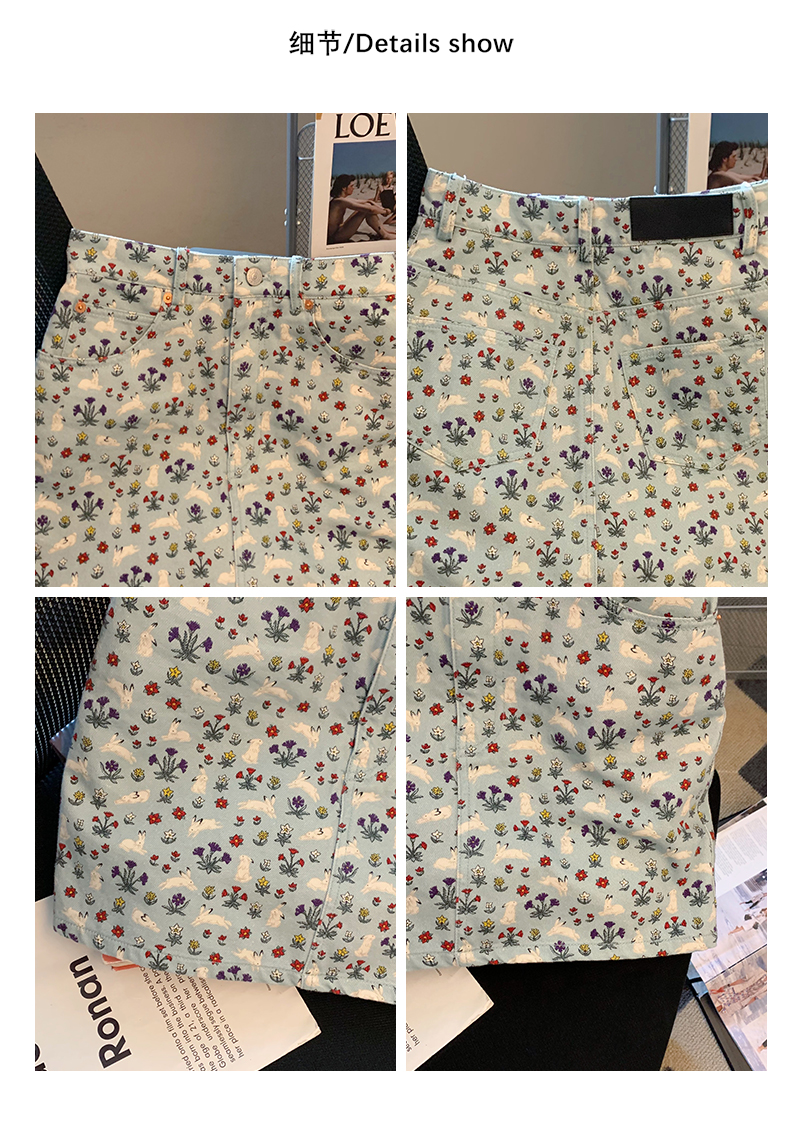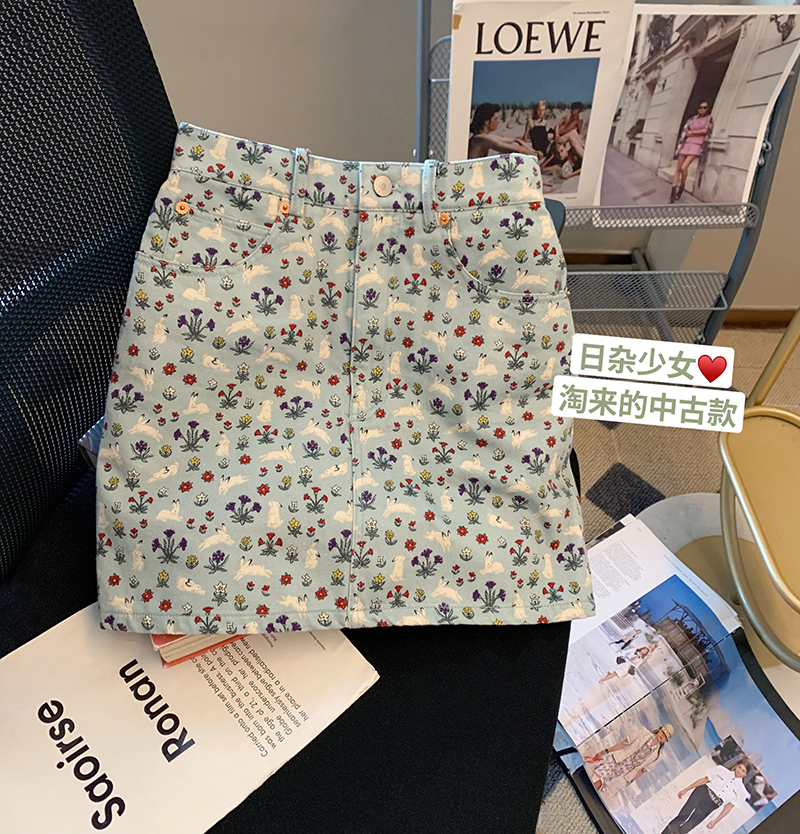 設計感碎花牛仔半身裙夏季女2023高腰直筒顯瘦辣妹a字包臀短裙子