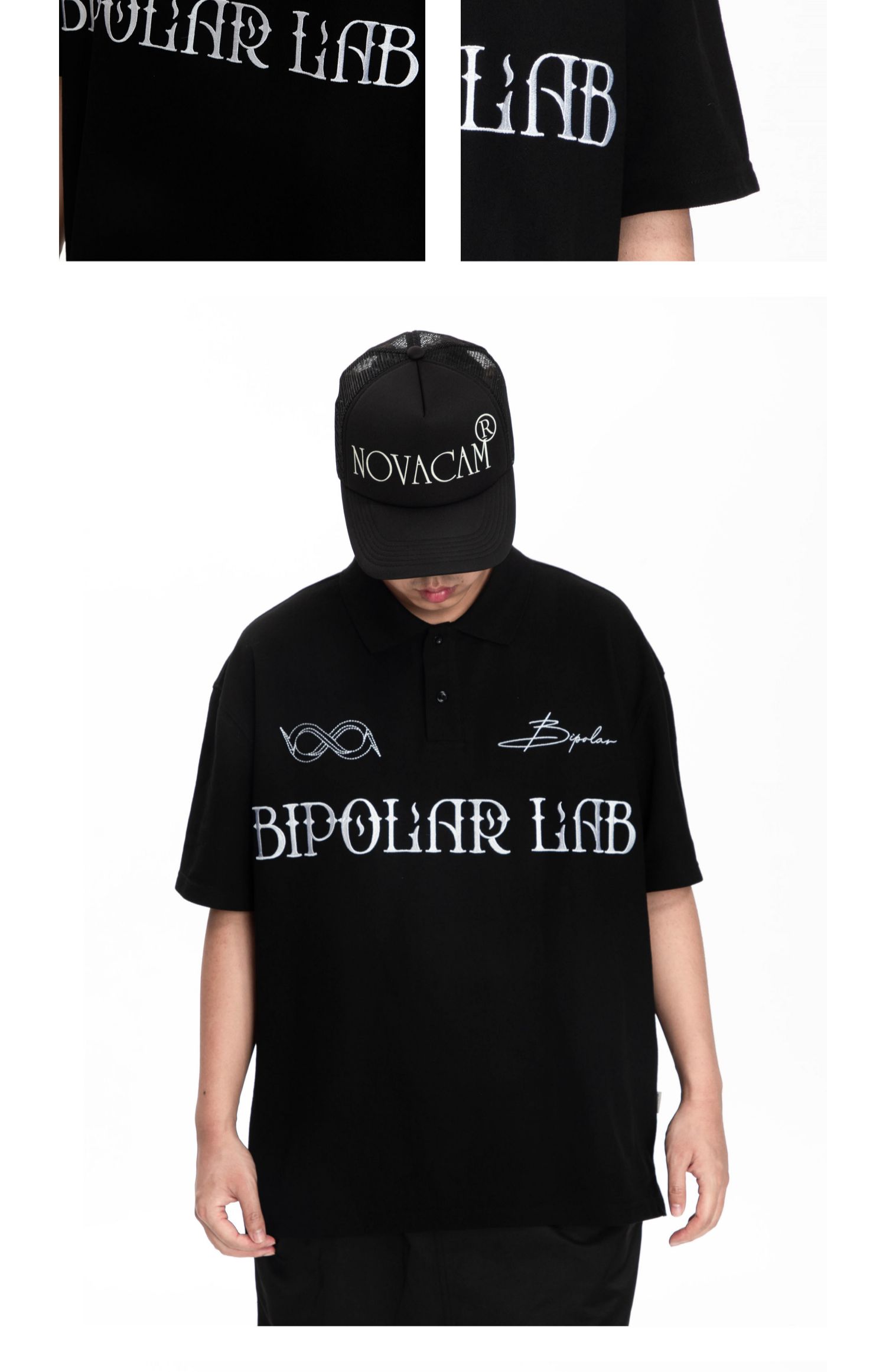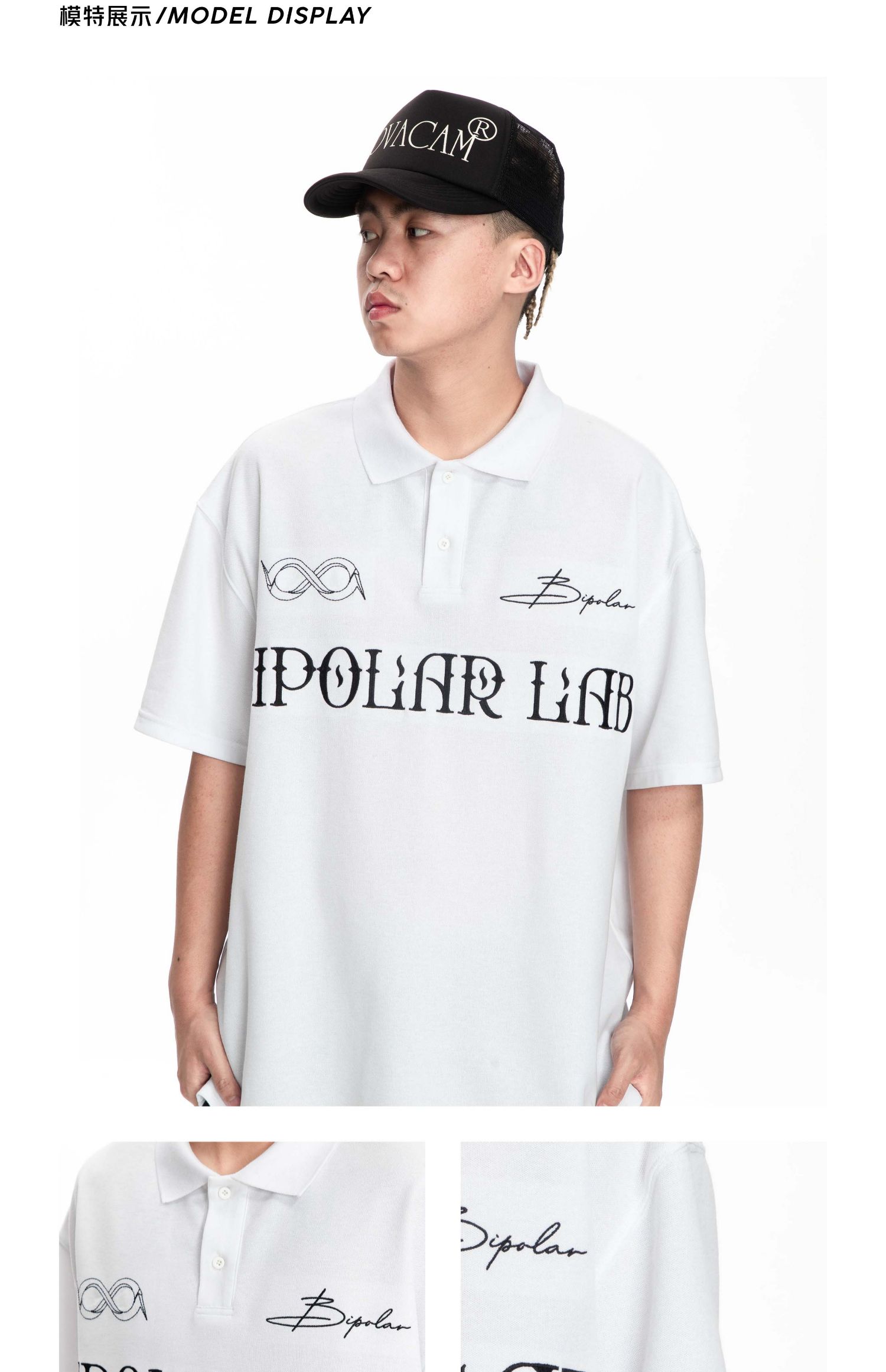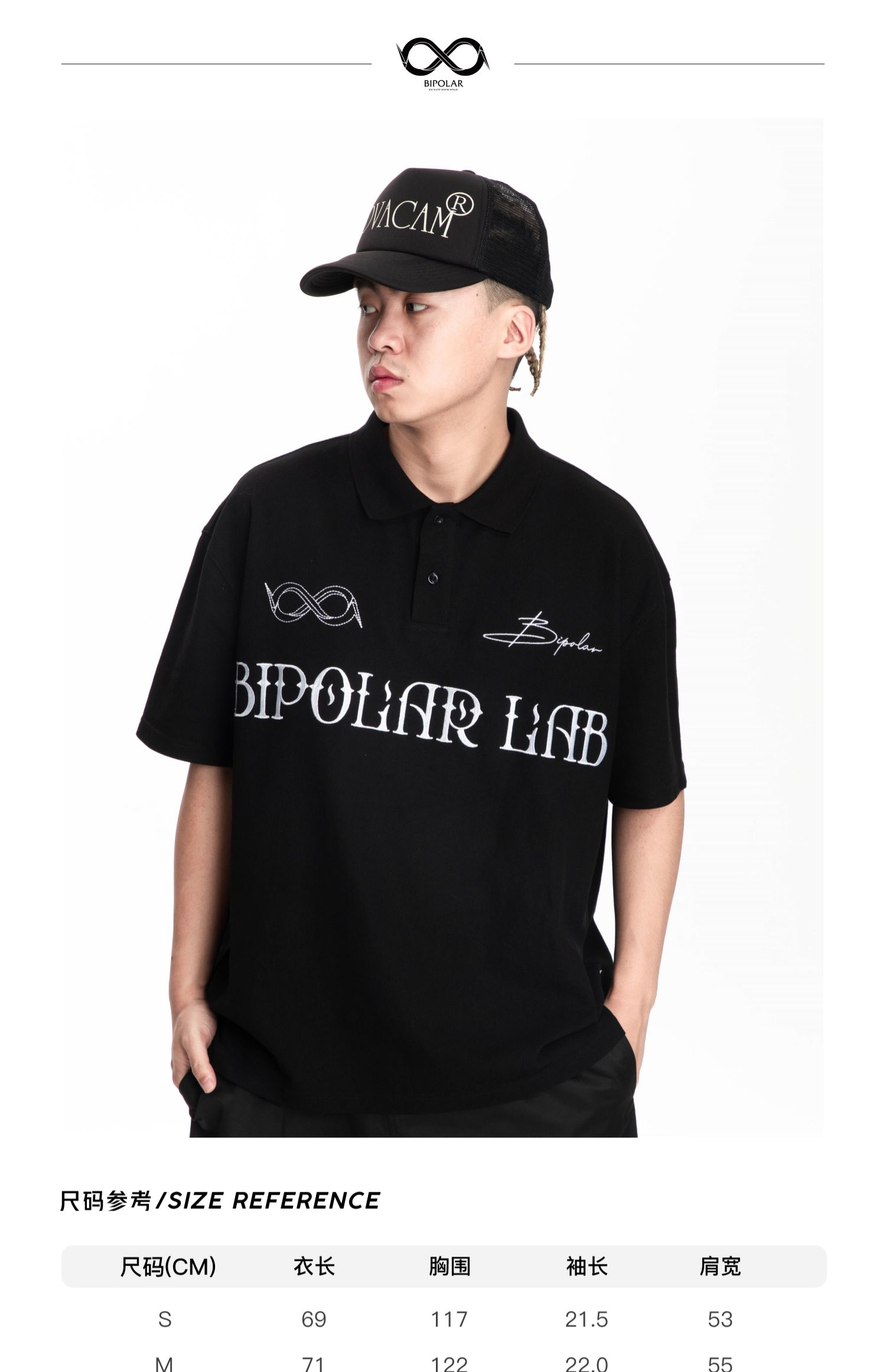 BIPOLAR哥特字短袖polo衫國潮嘻哈街頭男士休閒翻領黑白兩色上衣