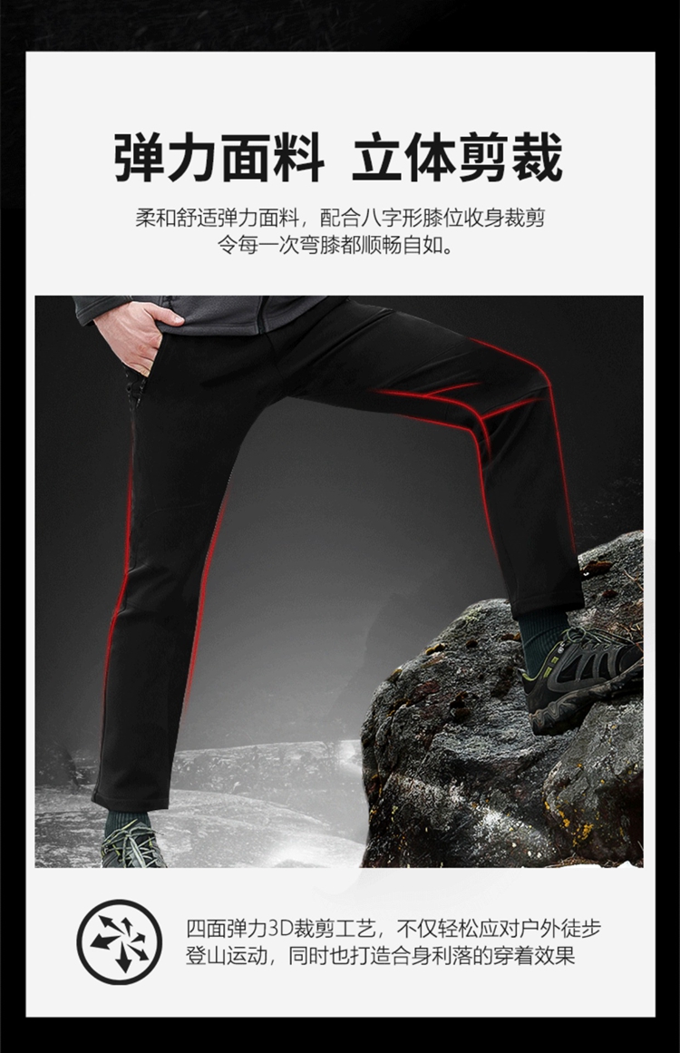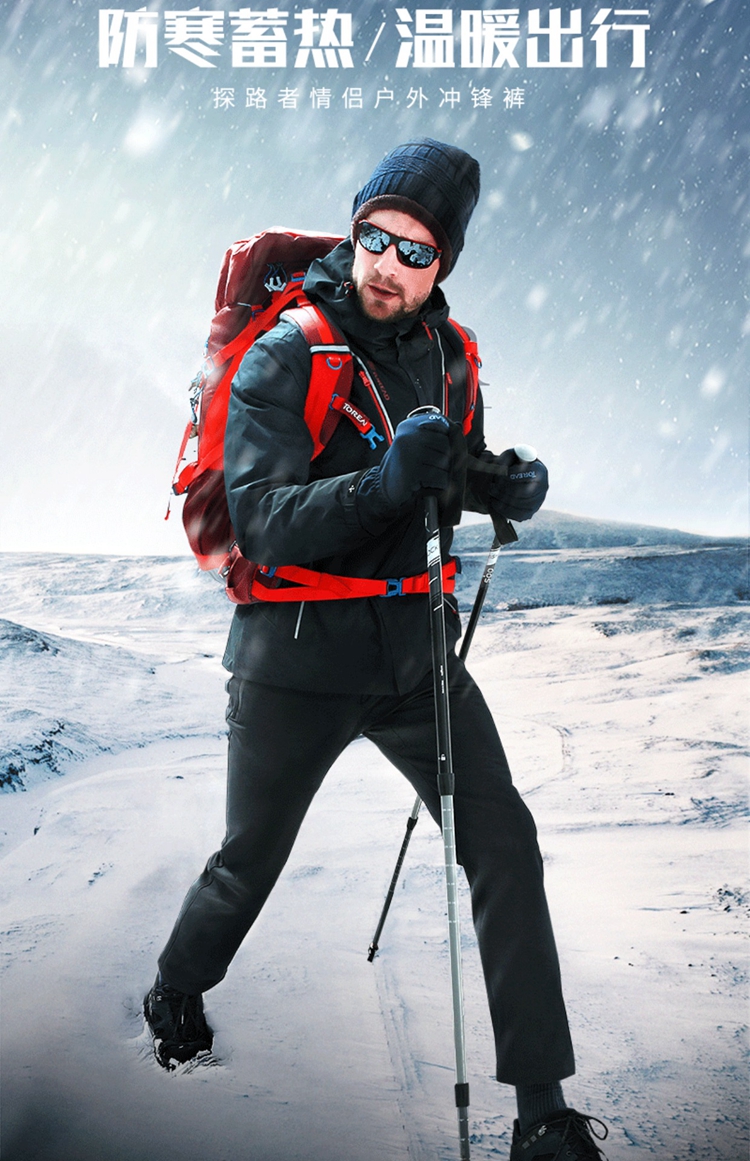 探路者衝鋒褲男女冬戶外保暖防風軟殼褲男加厚加絨褲登山褲防水褲