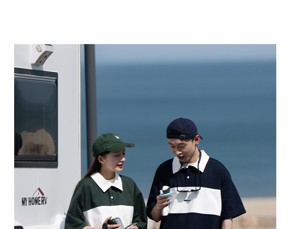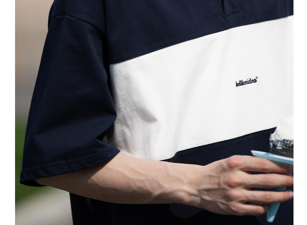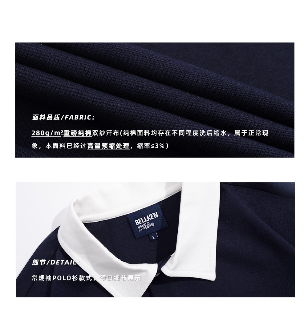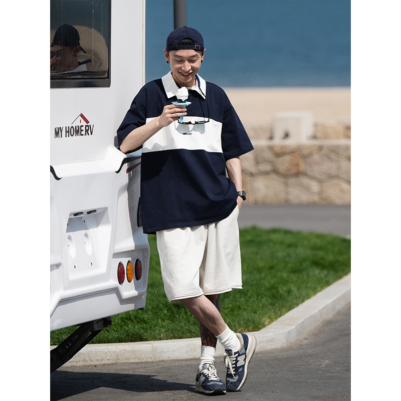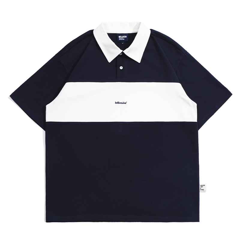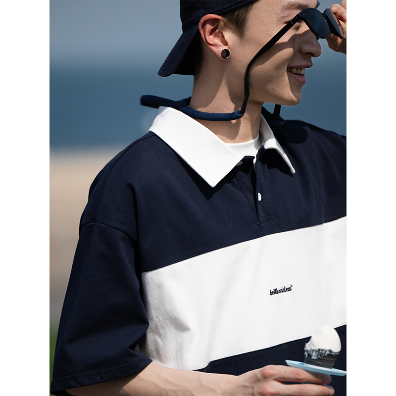 Bellken早起工作室 復古簡約撞色Polo衫短袖T恤男寬鬆日潮牌流行