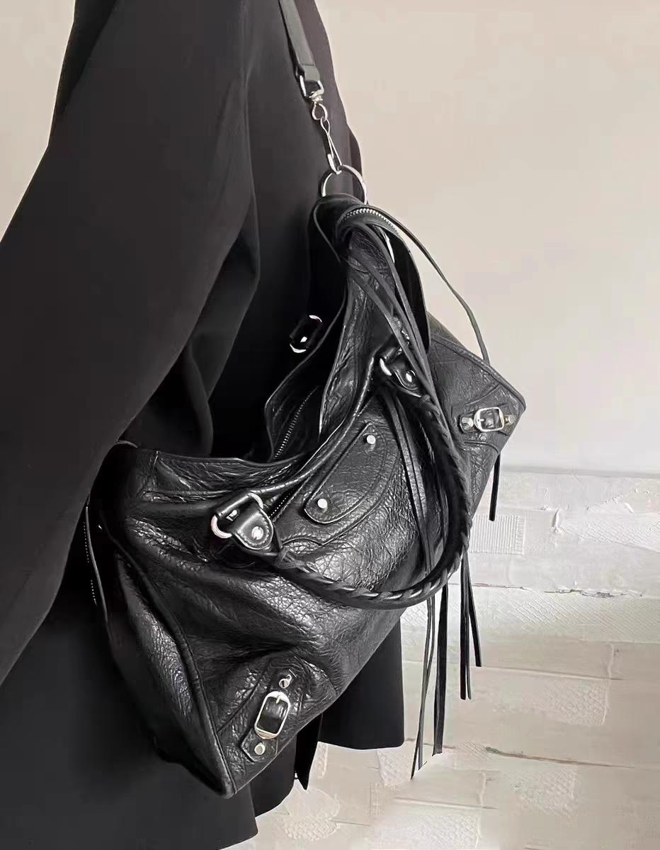 巴黎铆钉机车包ABG辣妹包 高级感大容量单肩斜挎手提包